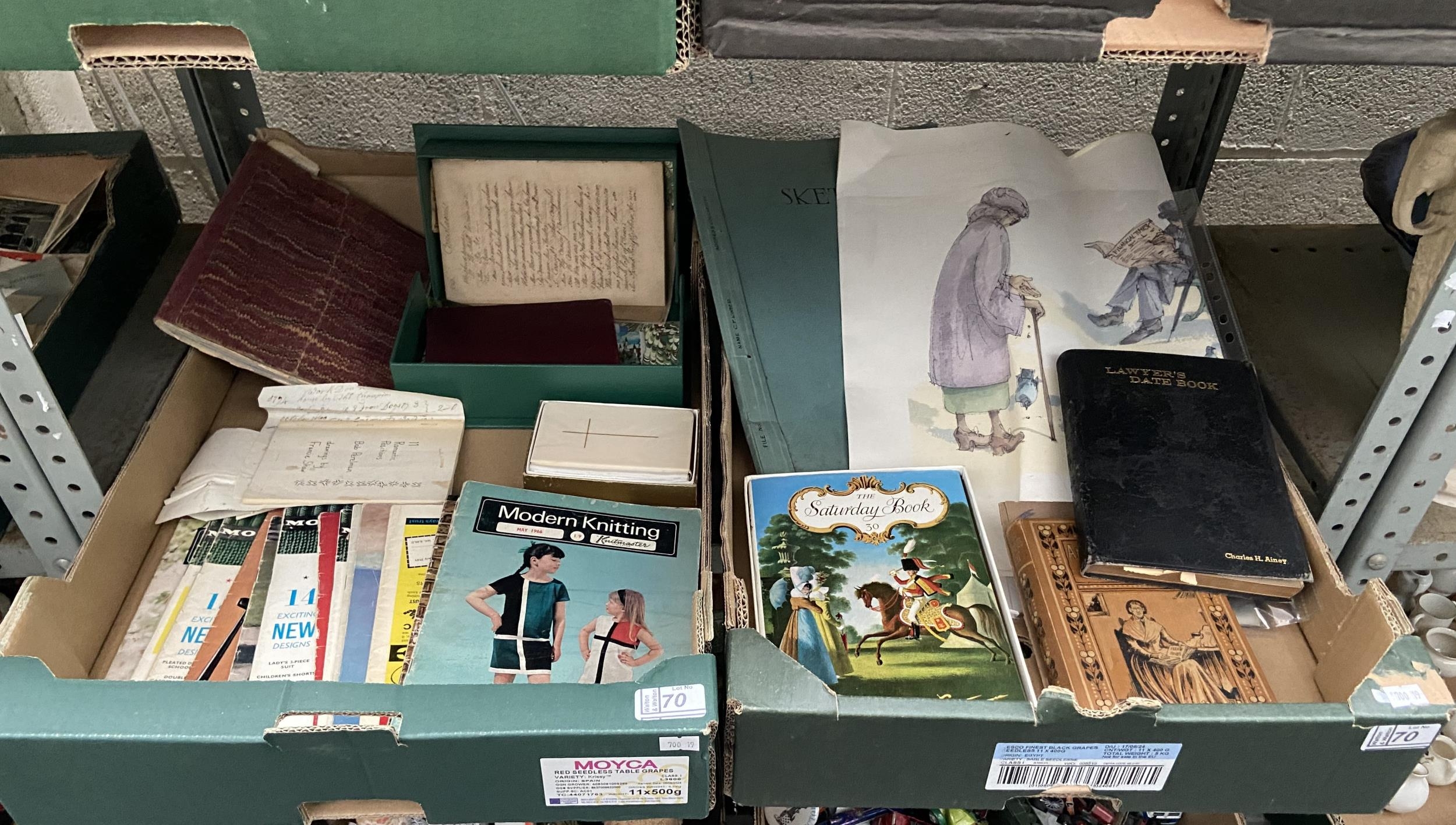 2 Boxes containing knitting patterns and vintage ephemera