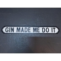 Novelty 'Gin Made Me Do It' wooden street sign