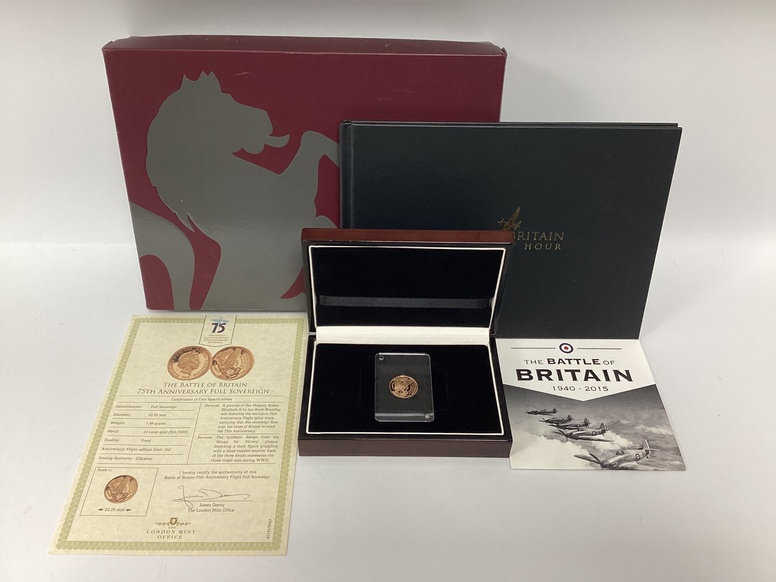 2015 QEII London Mint 'The Battle Of Britain' Gold Proof Sovereign, cased with a certificate of authenticity.