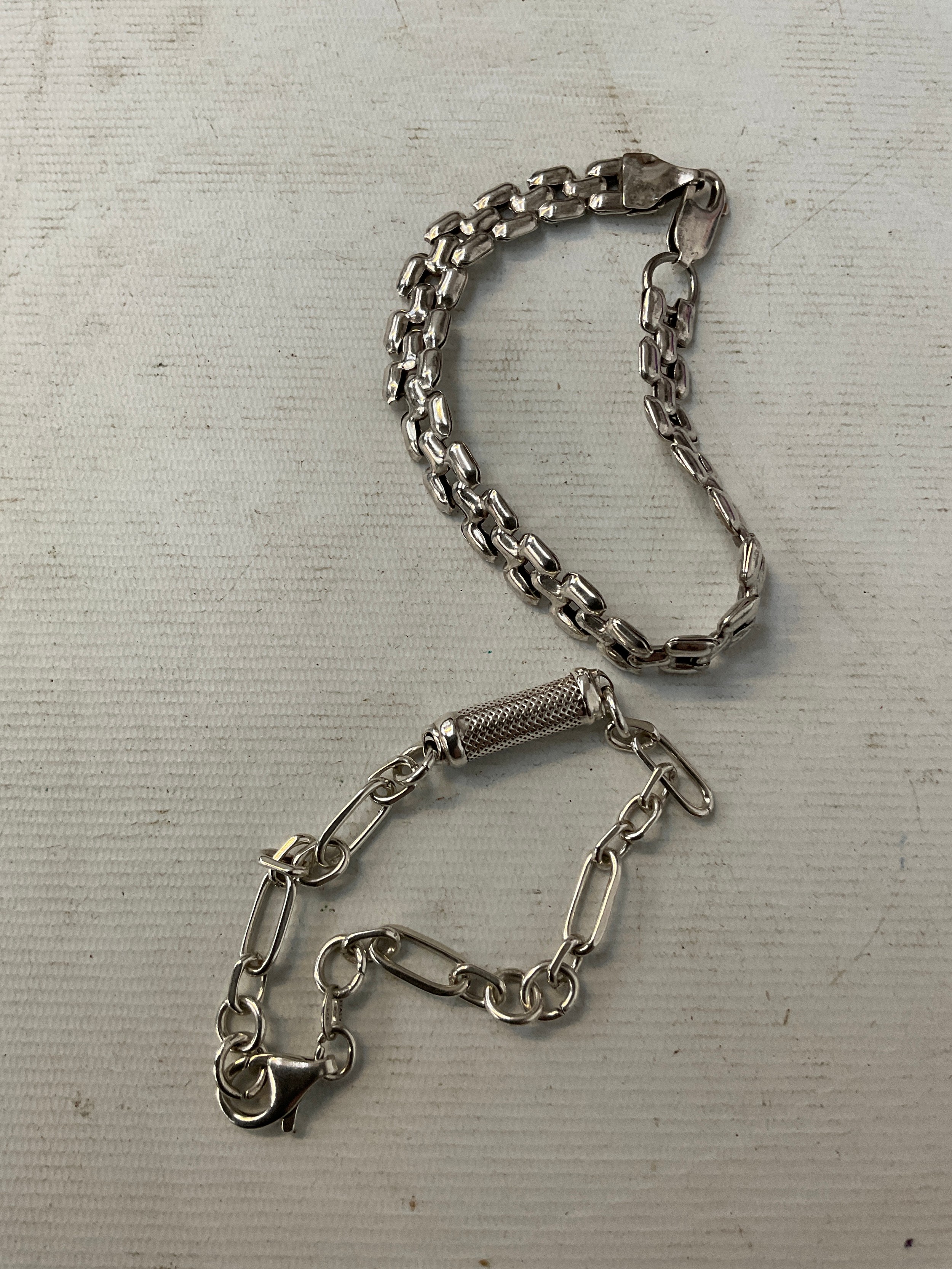 Two silver stamped bracelets, weight 12.4 grams