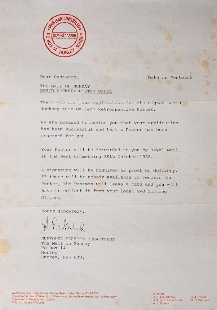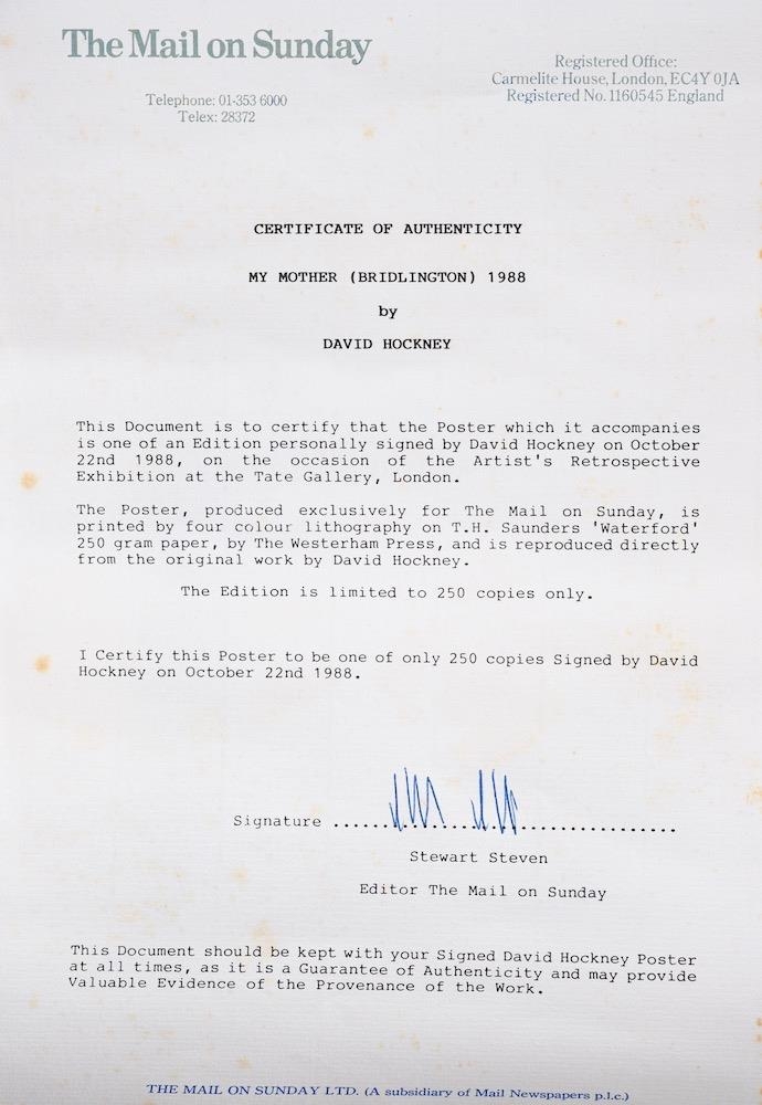 *David Hockney (British, b. 1937) My Mother (Bridlington), (1988) signed to lower margin limited edition poster (edition of 250) 77 x 51.5 cm ** To be sold with its original certificate of authenticity, issued by the Mail on Sunday, 1988.