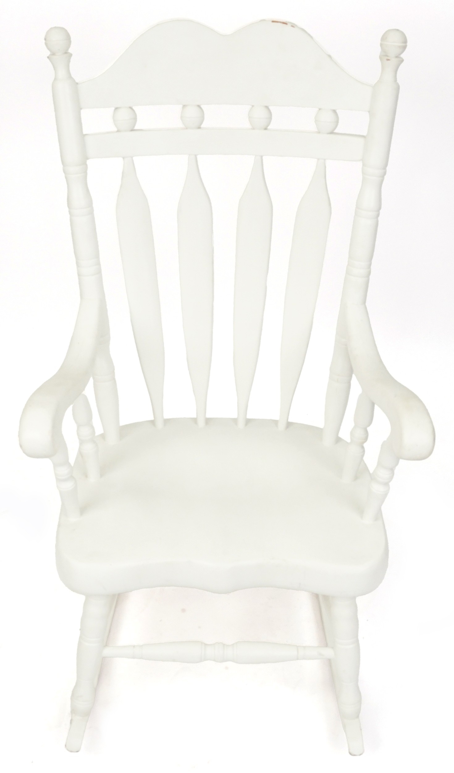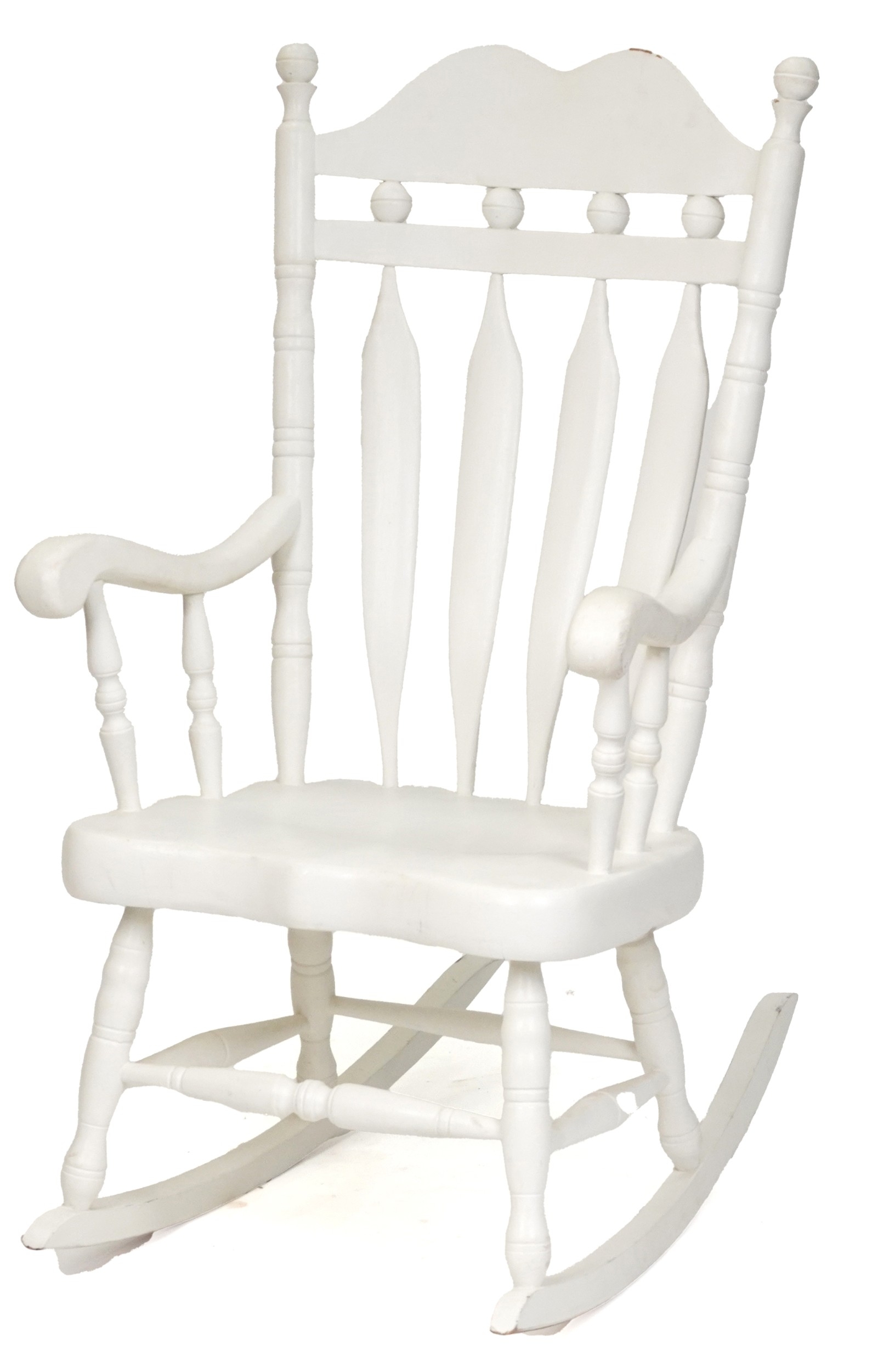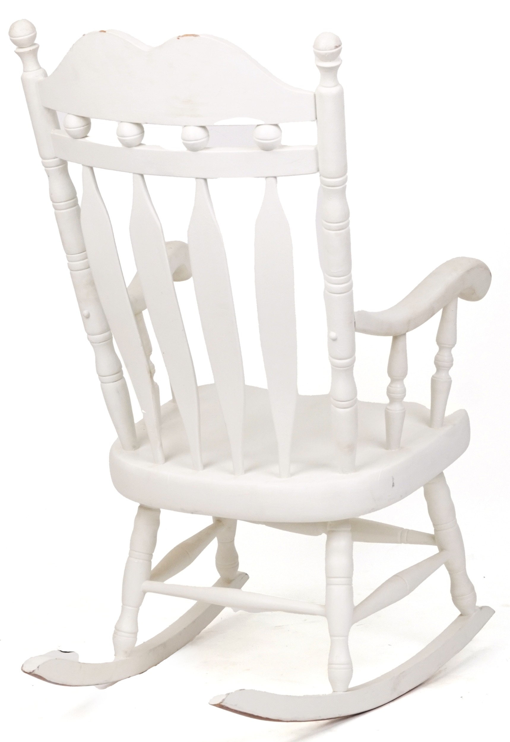 A 20th century white painted rocking chair on turned supports, 116cm H x 65cm W x 77cm D.