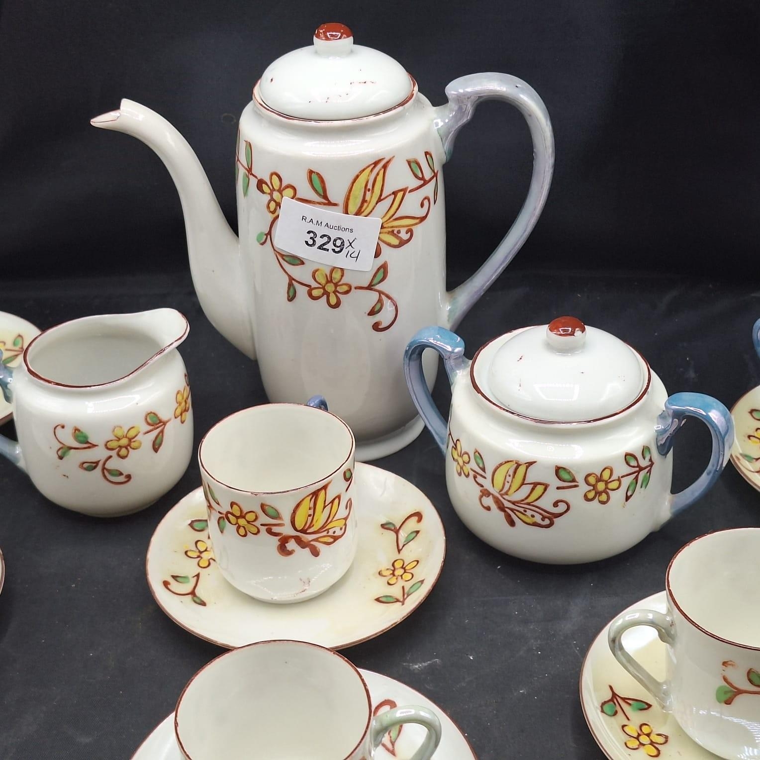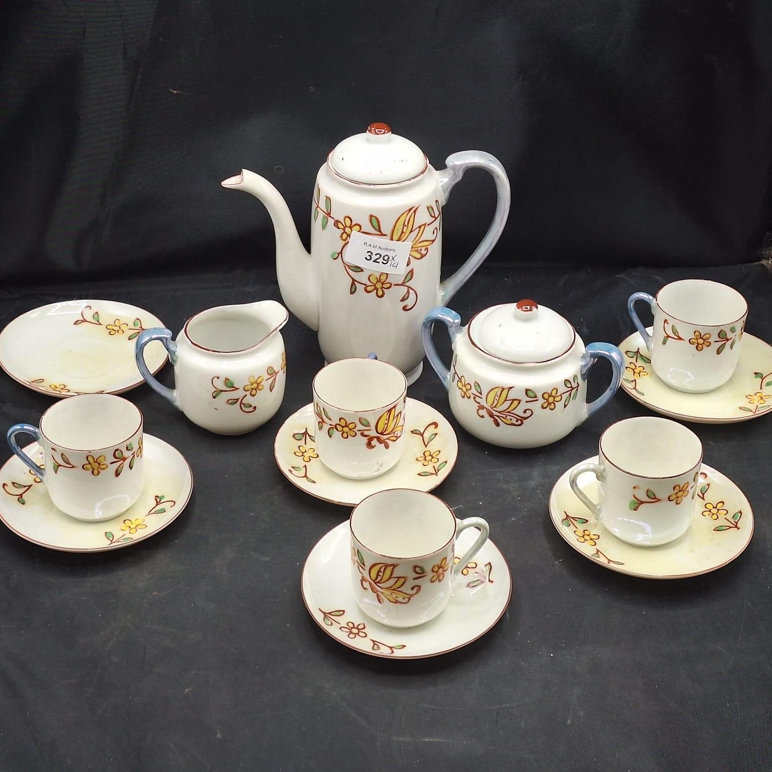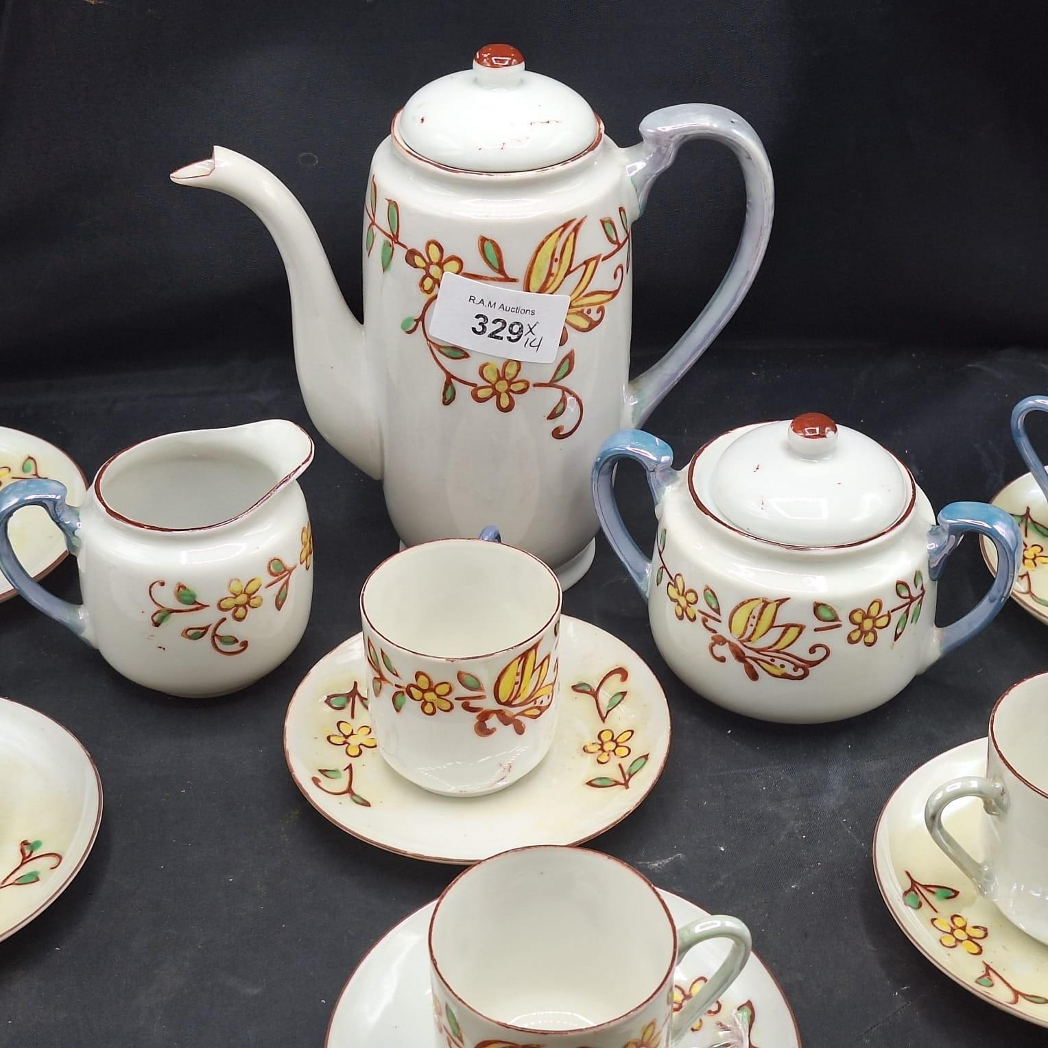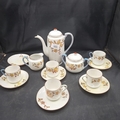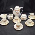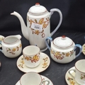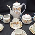 ORIENTAL TEAPOT, TEACUPS X5, SAUCERS X6, MILK JUG, SUGAR BOWL 14 PIECES