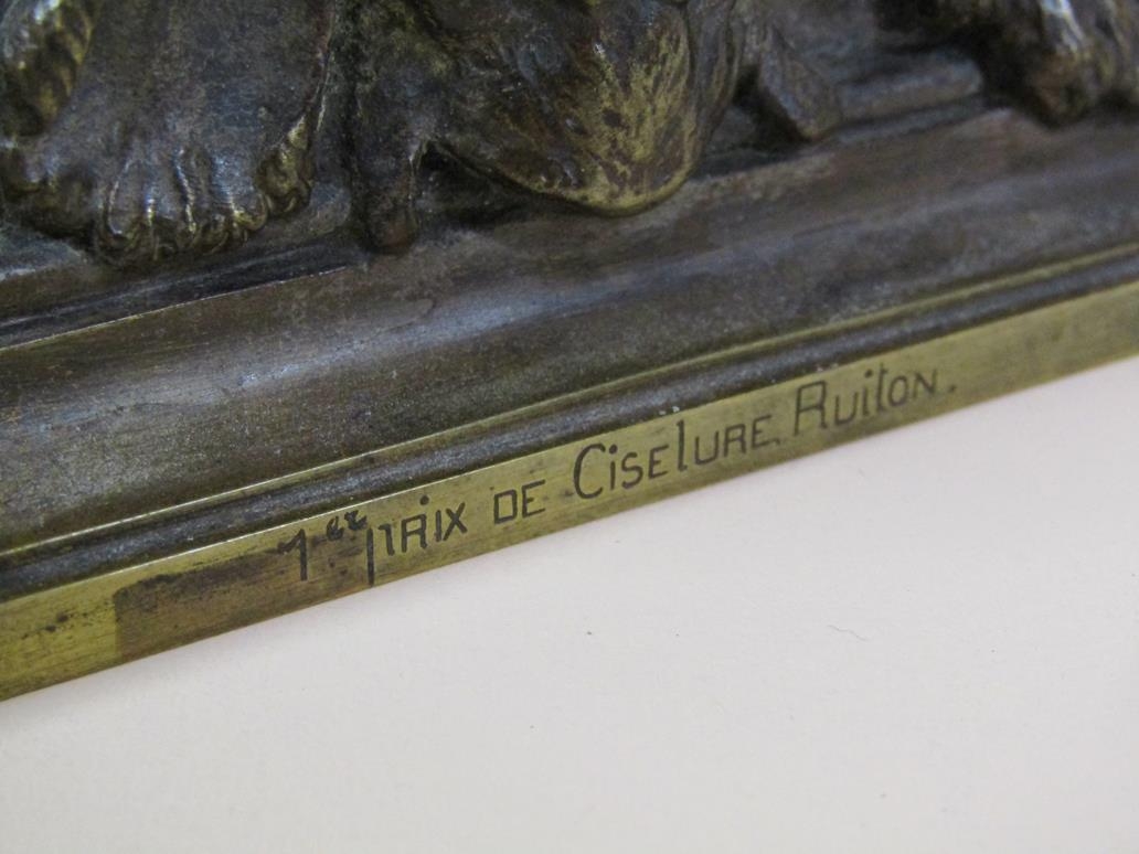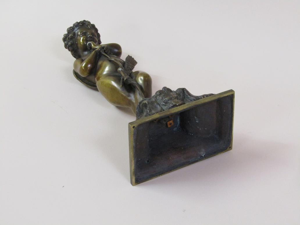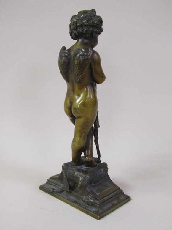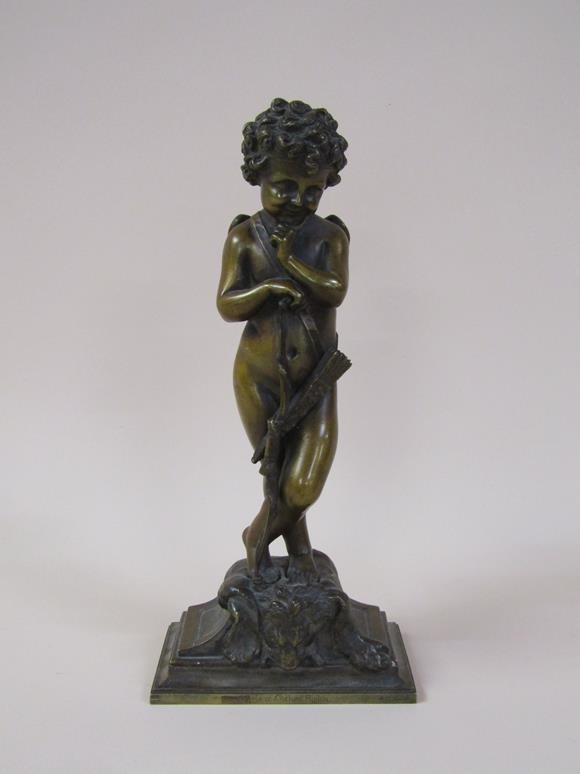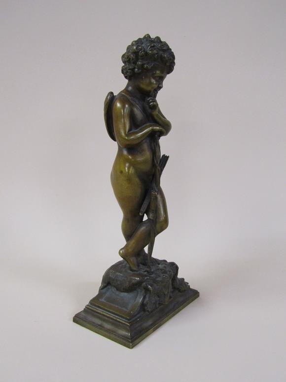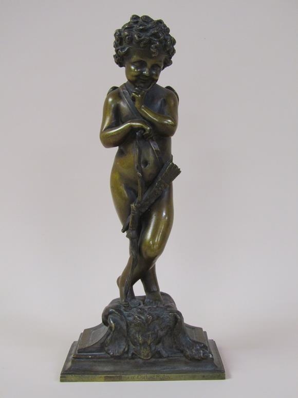 A 19c patinated bronze figure of cupid, the base inscribed 'Habert Prix de Ciselure Ruilon Beaux, 1861', 26cm h.