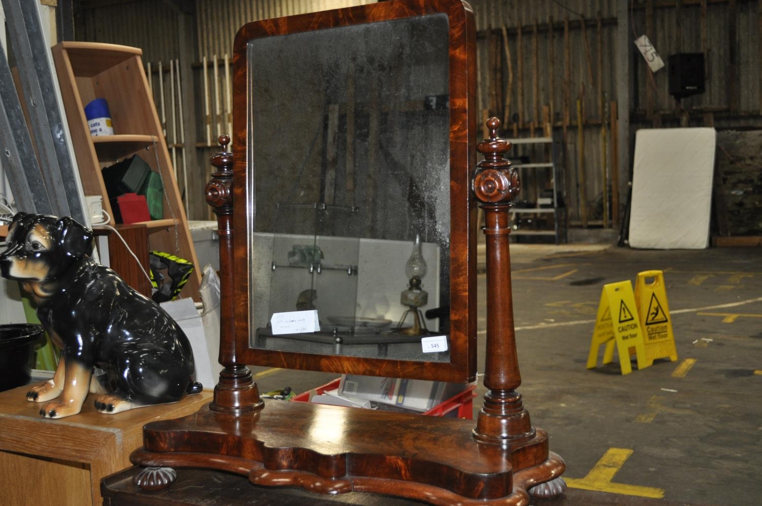 VICTORIAN FLAME MAHOGANY CARVED BUN FEET CHEST MIRROR