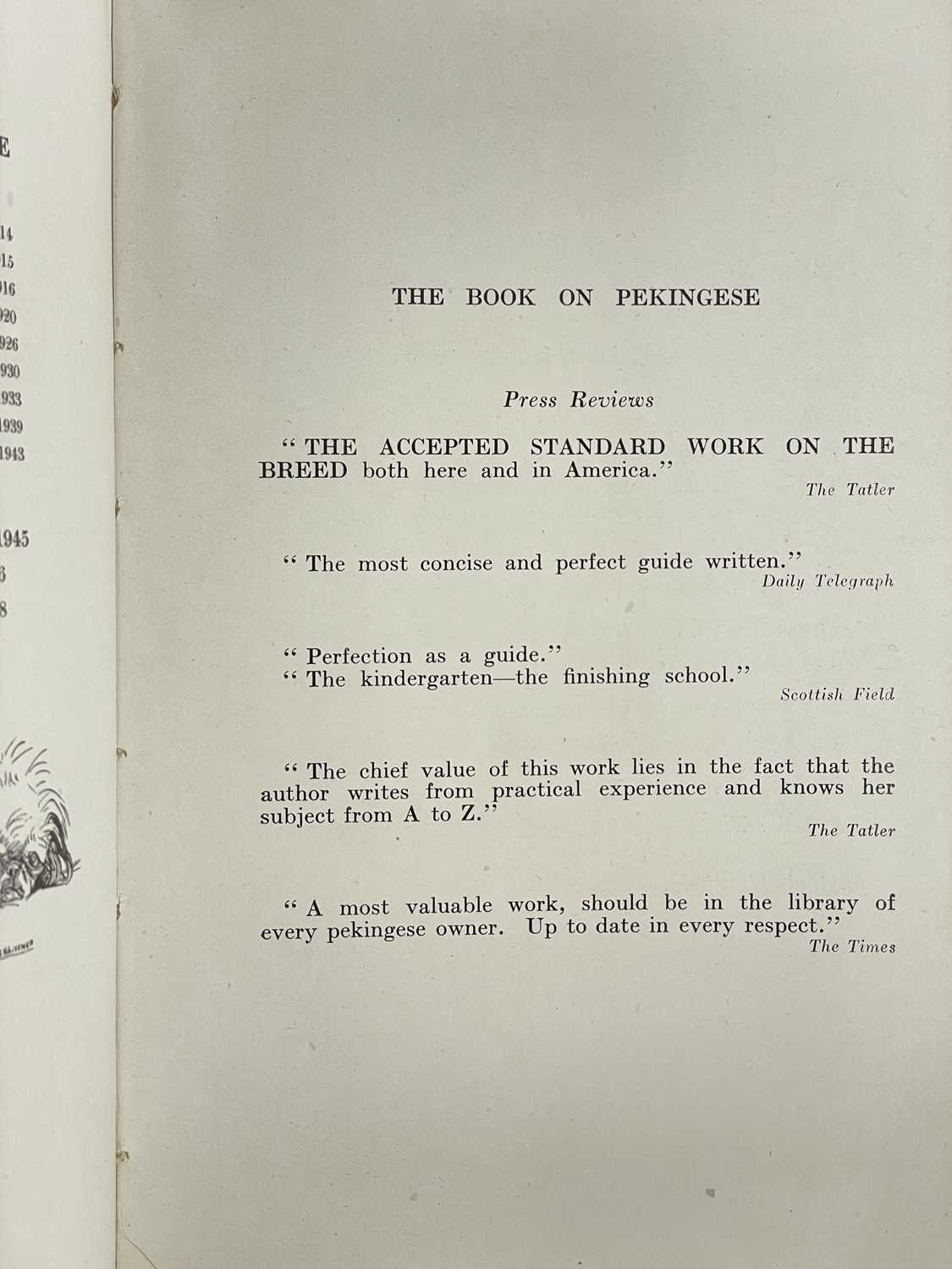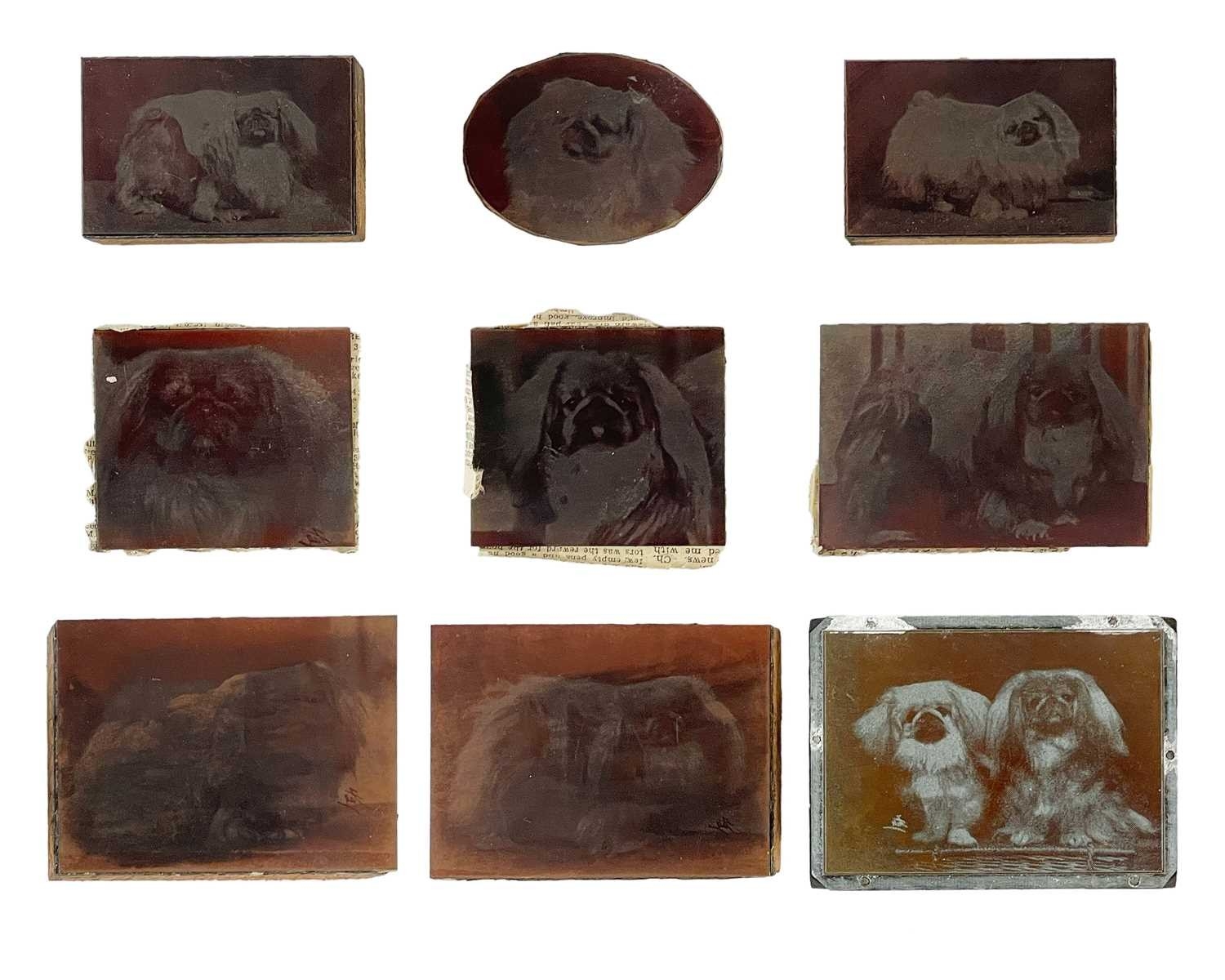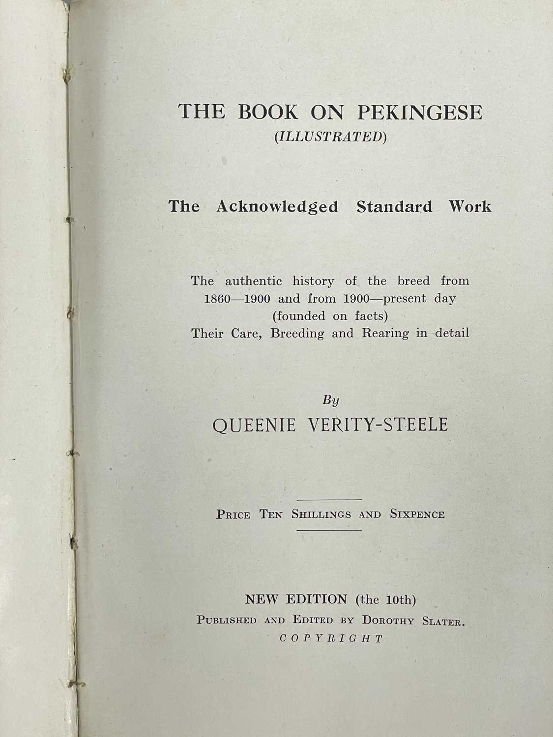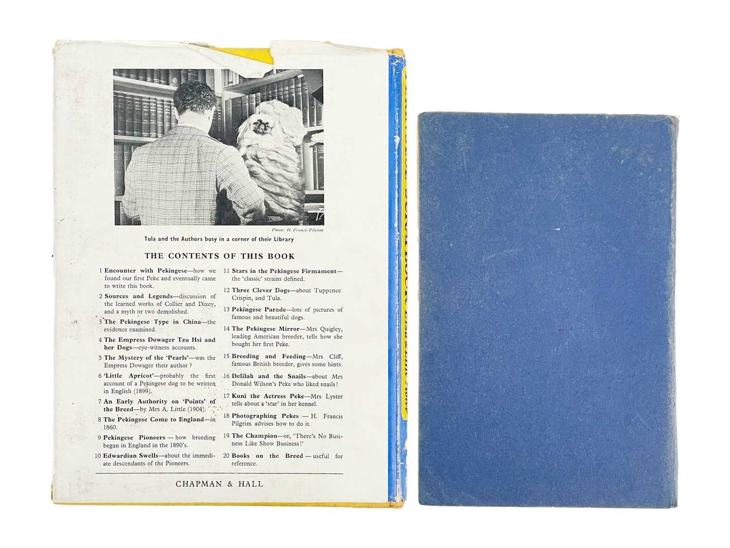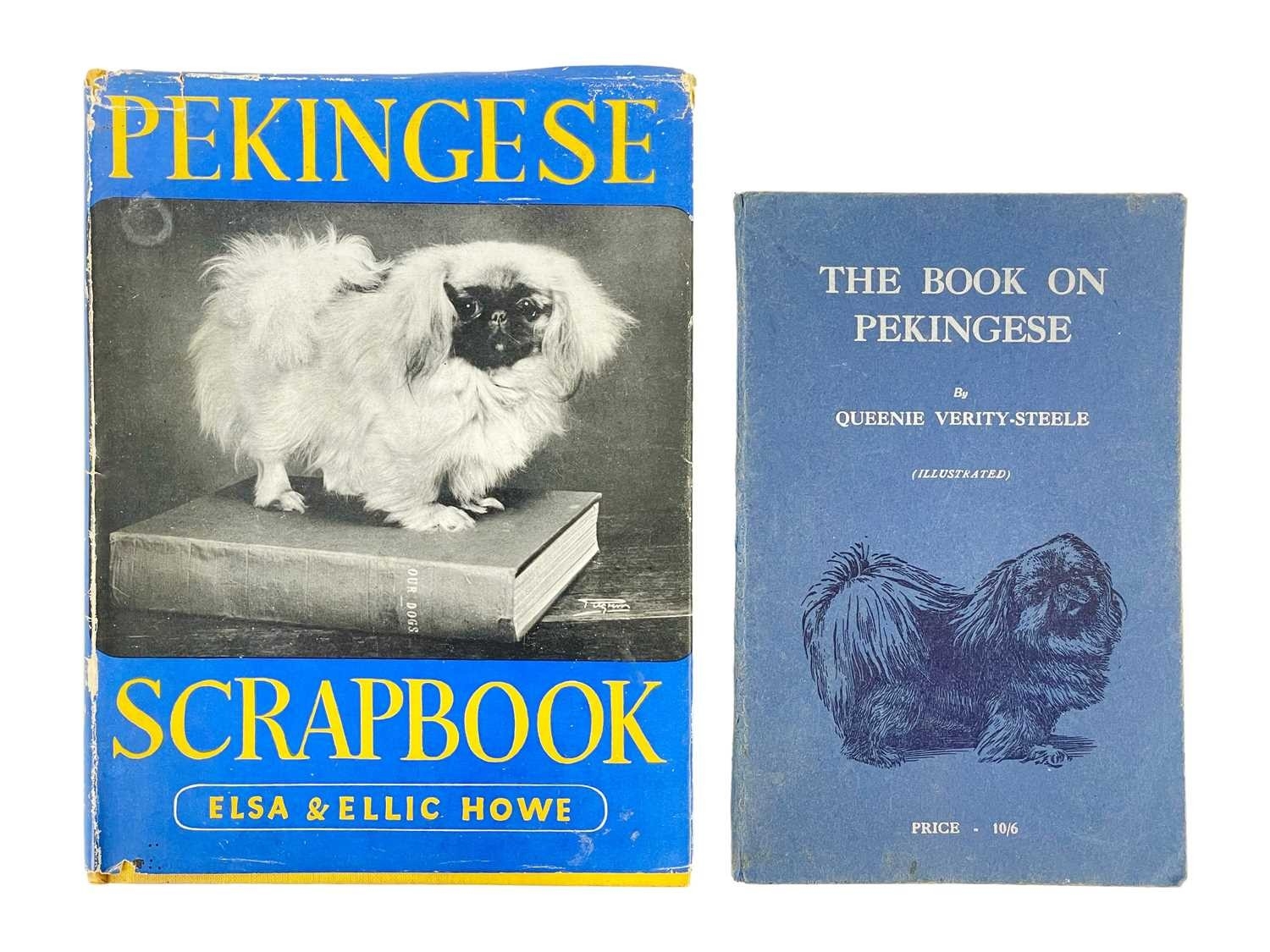 (Pekingese) Elsa & Ellic Howe Pekingese Scrapbook With original yellow cloth, unclipped dj, profuse with black and white illustrations, tears and wear to head and spine, minor foxing; Chapman & Hall, London 1954; together with nine original printer's plates. Also with Queenie Verity-Steele, 'The Book on Pekingese', tenth edition, illustrated, pictorial boards, Dorothy Slater, 1945. (3)