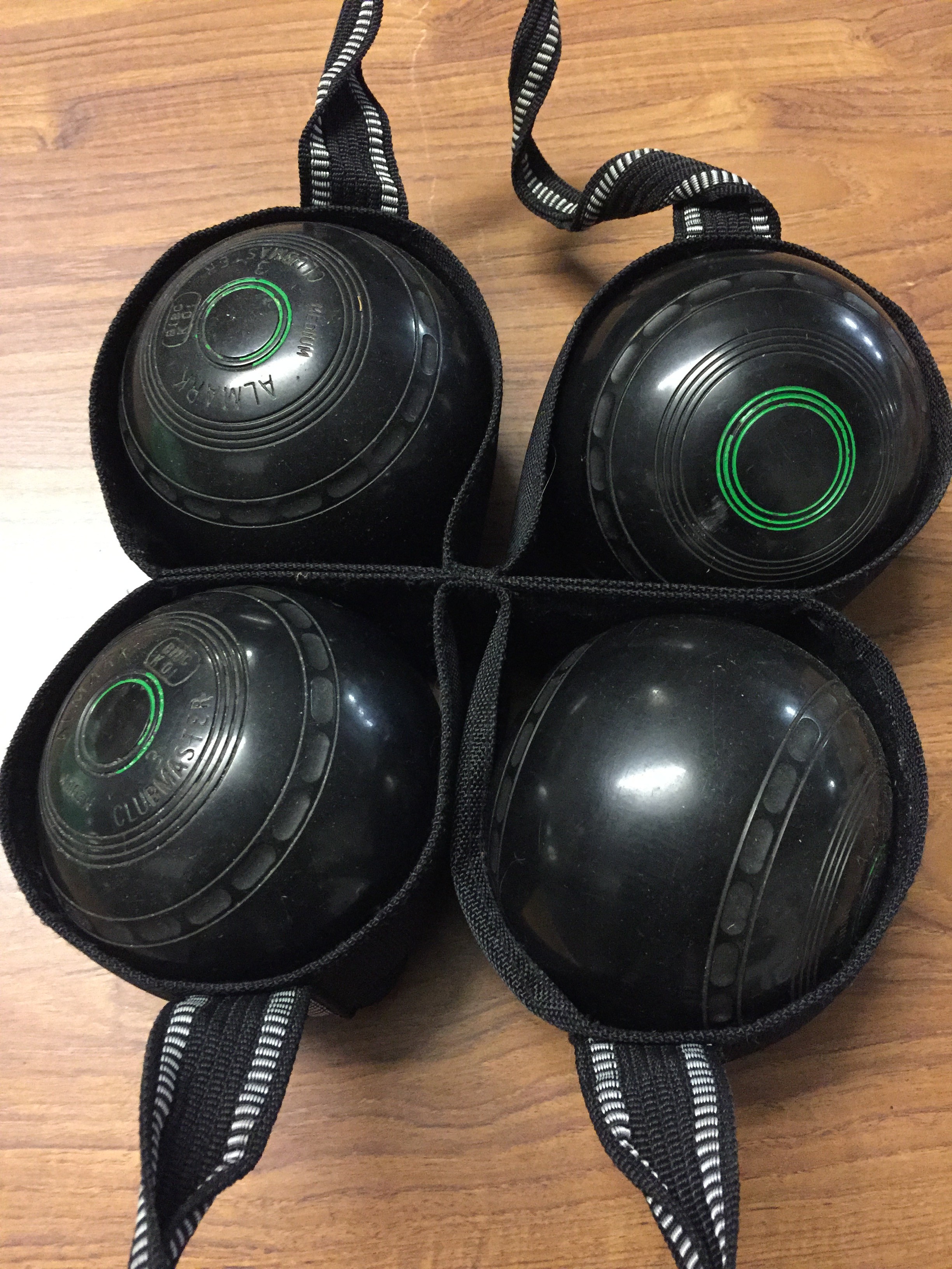 SET OF 4 ALMARK CLUBMASTER BOWLING WOODS, MEDIUM 5"