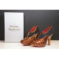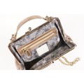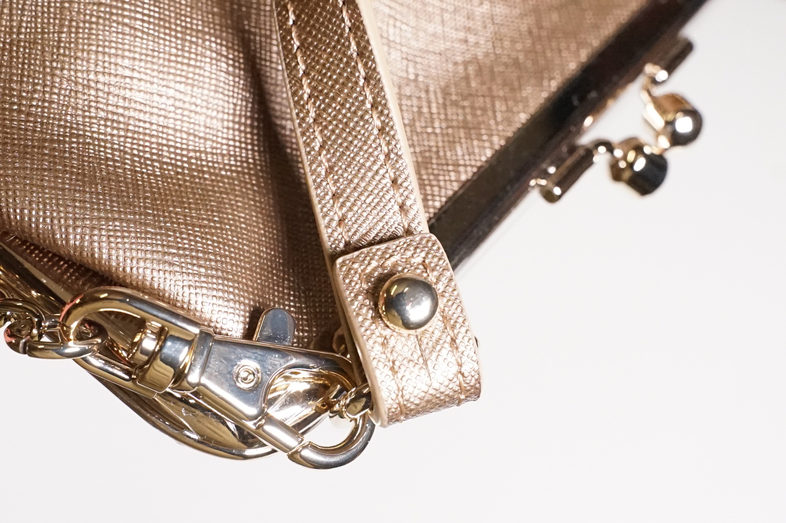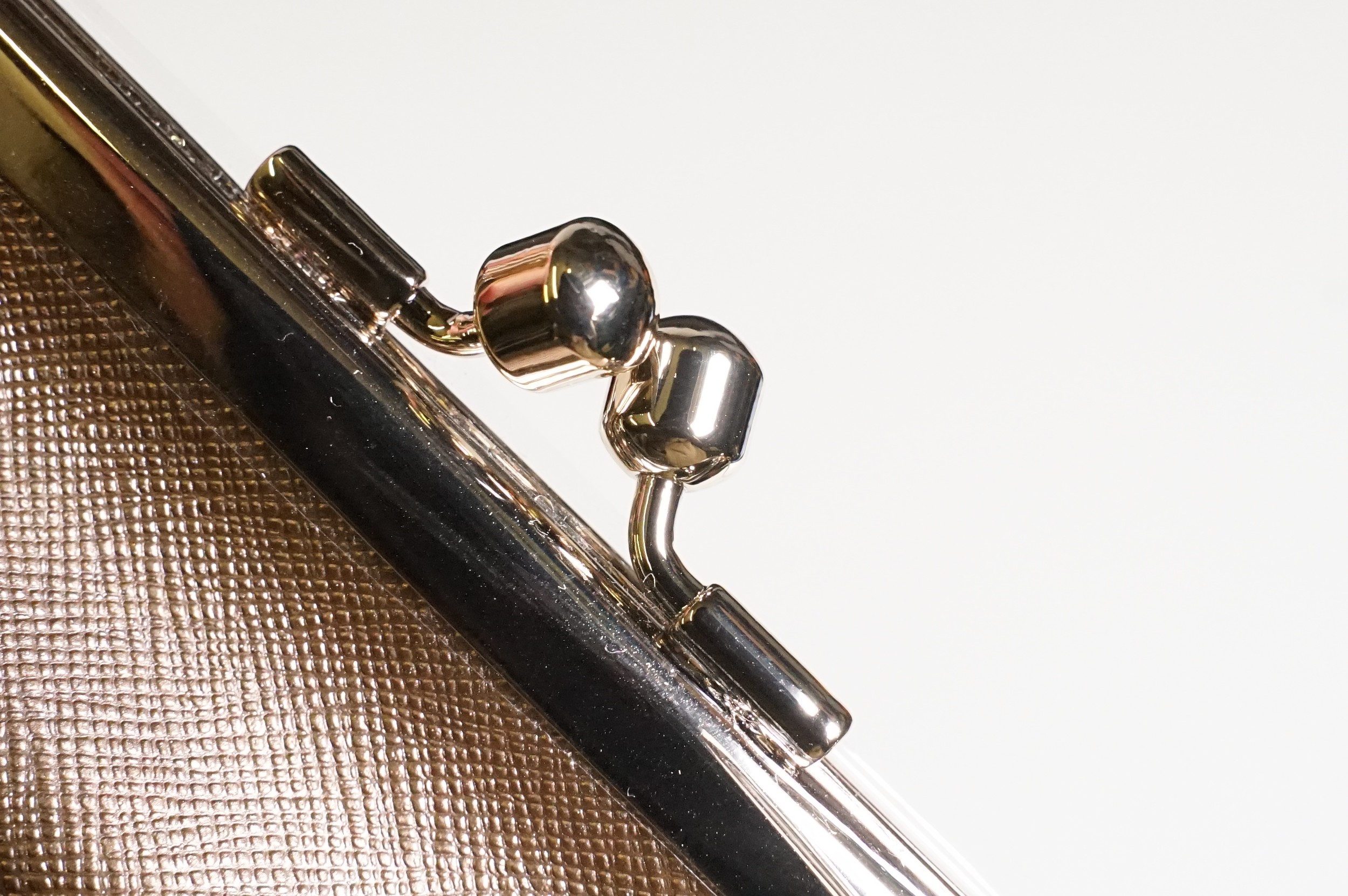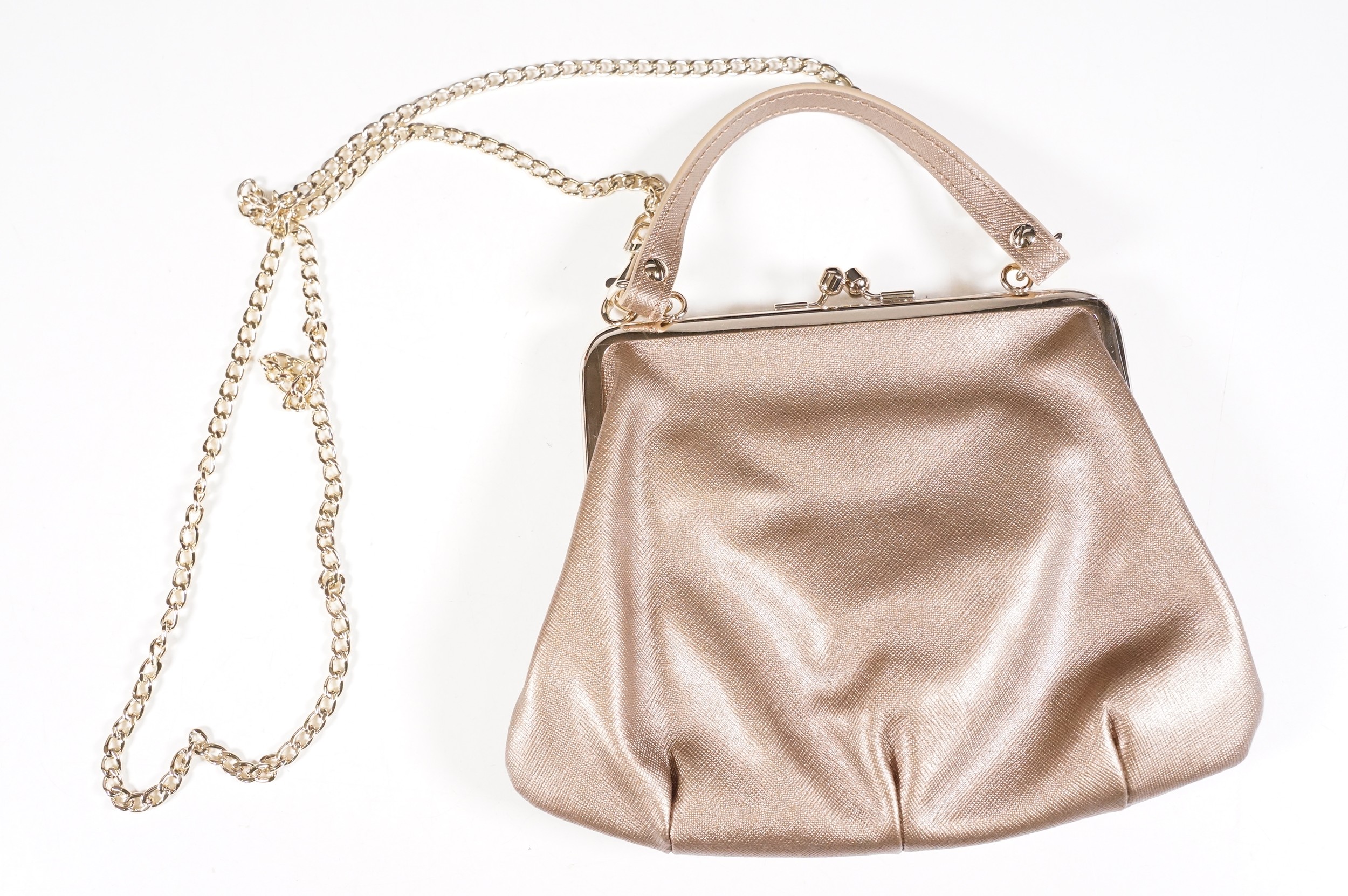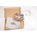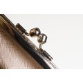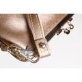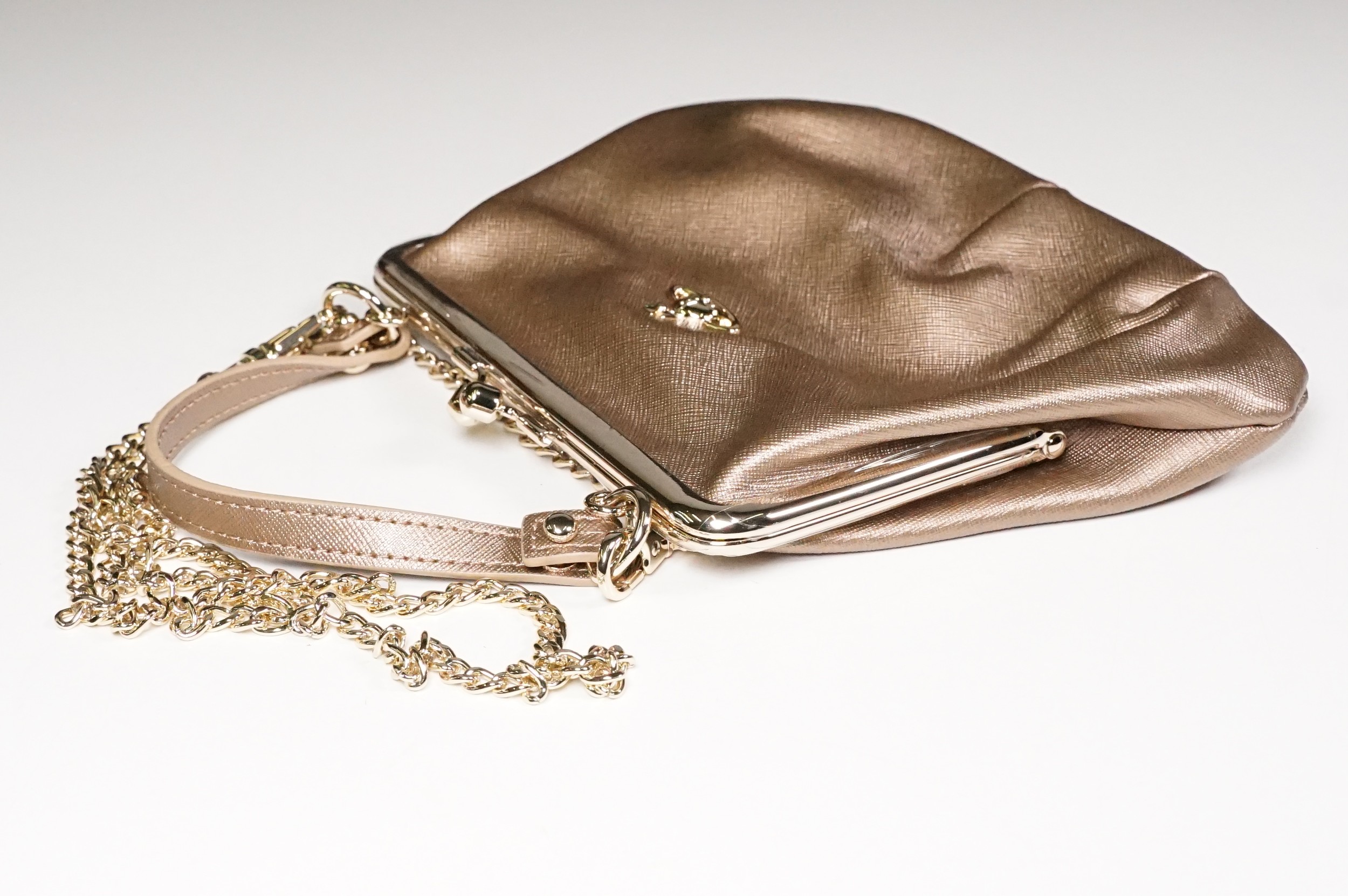Vivienne Westwood gold metallic 'Victoria' frame logo hand bag/purse with shoulder chain, measures approx - 22cm x 18cm with original dust bag (1)