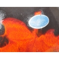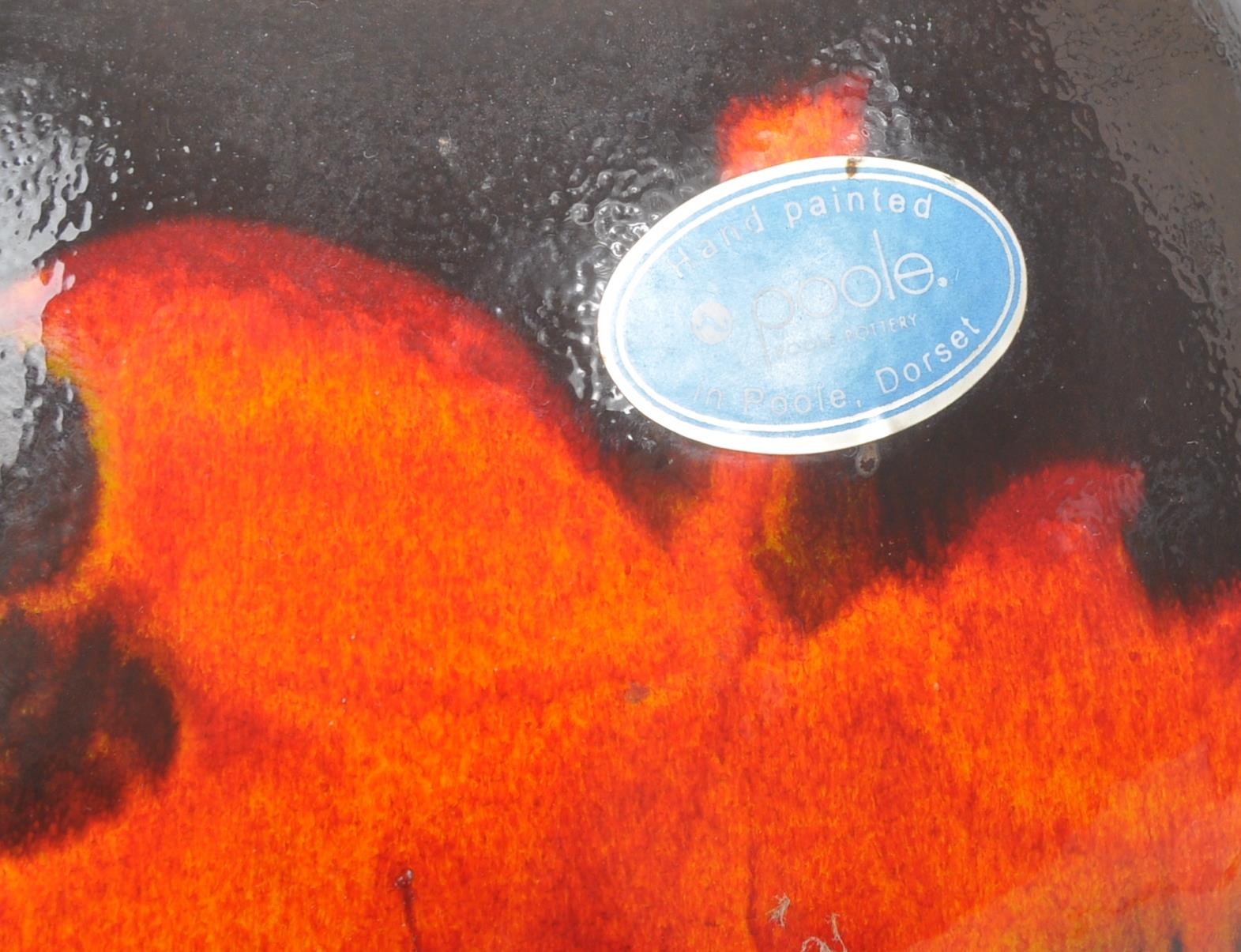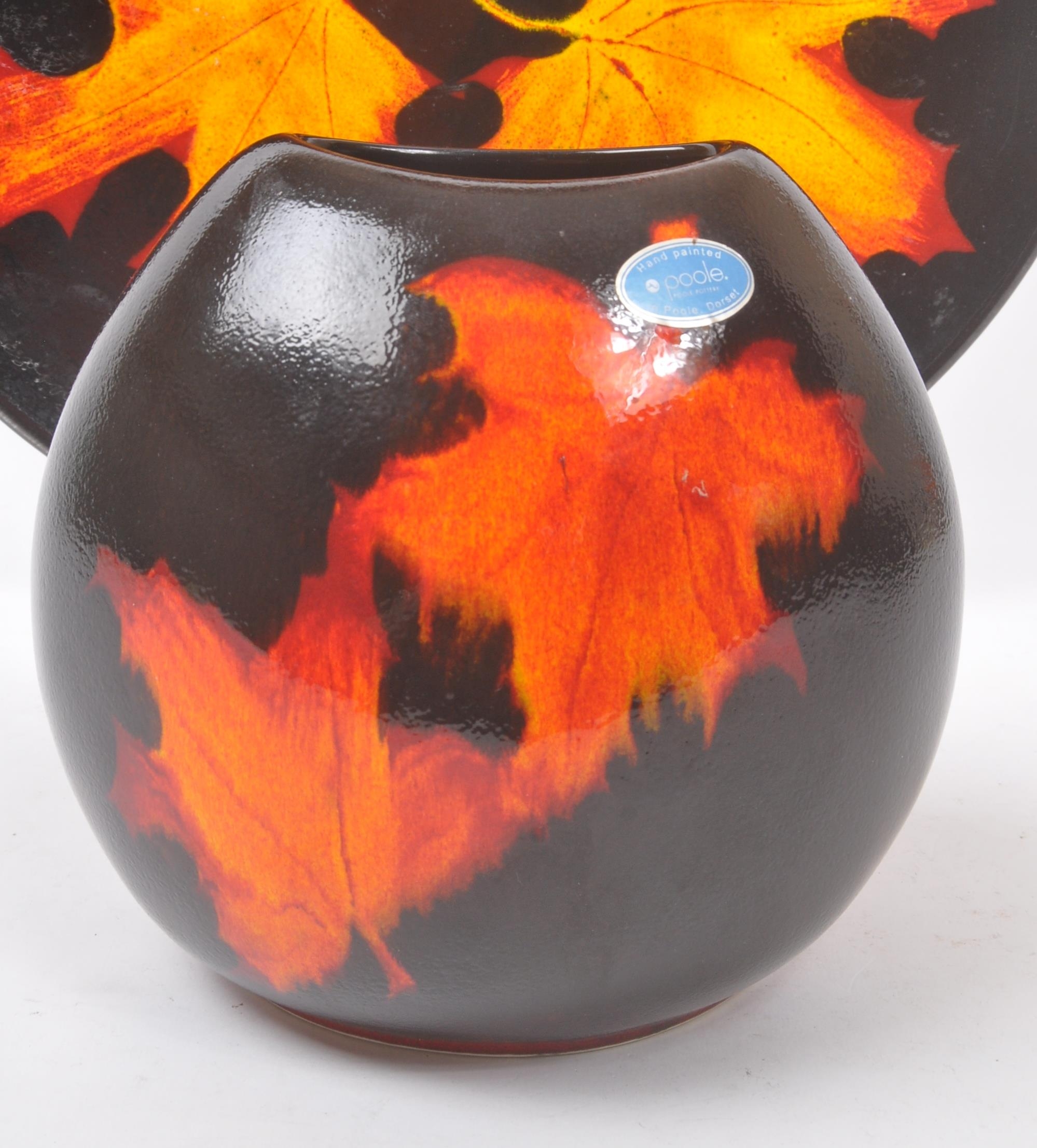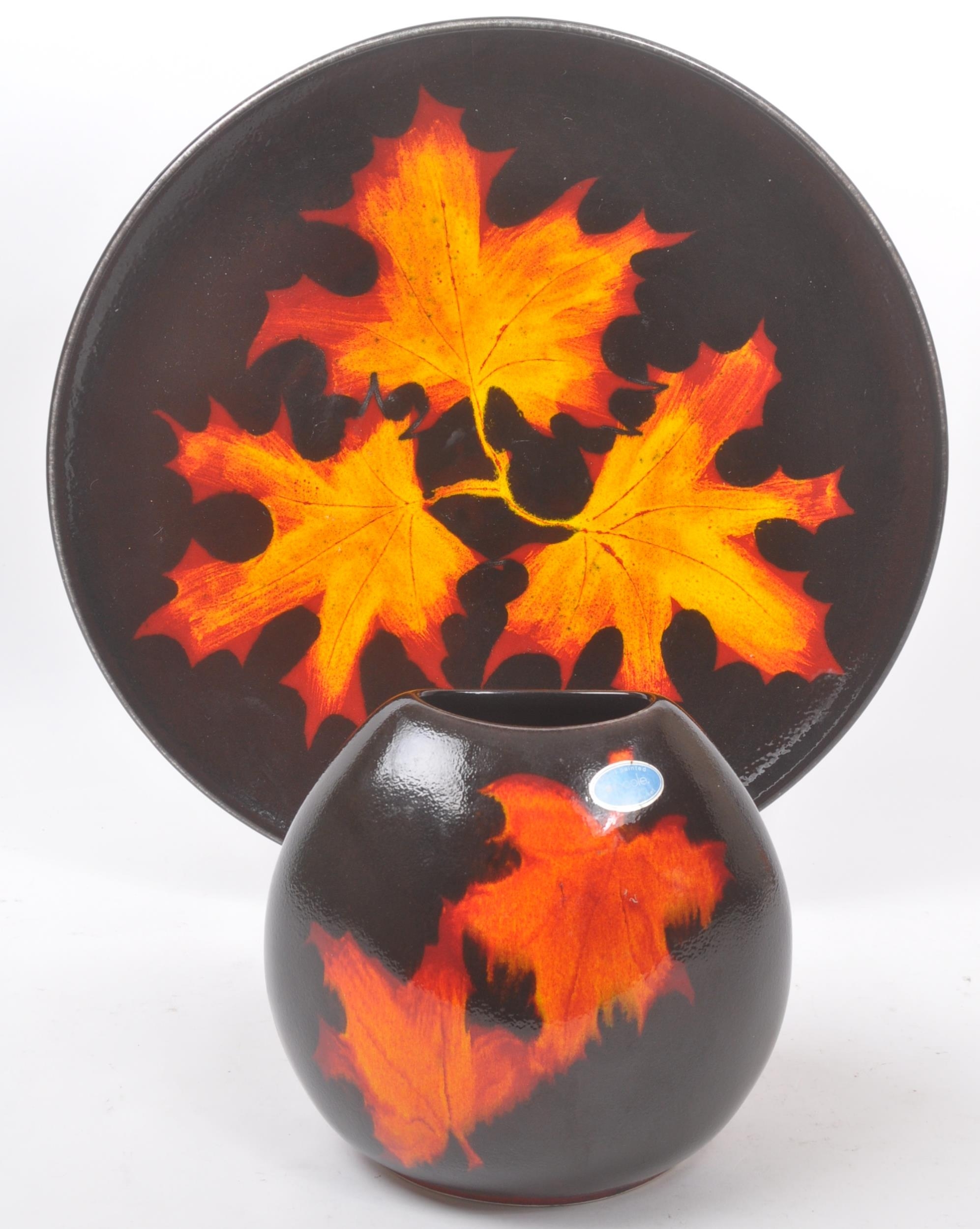 Poole Pottery - A forest flame purse table top vase, together with matching pattern large wall / display charger. Charger measures approx. 40cm diameter.