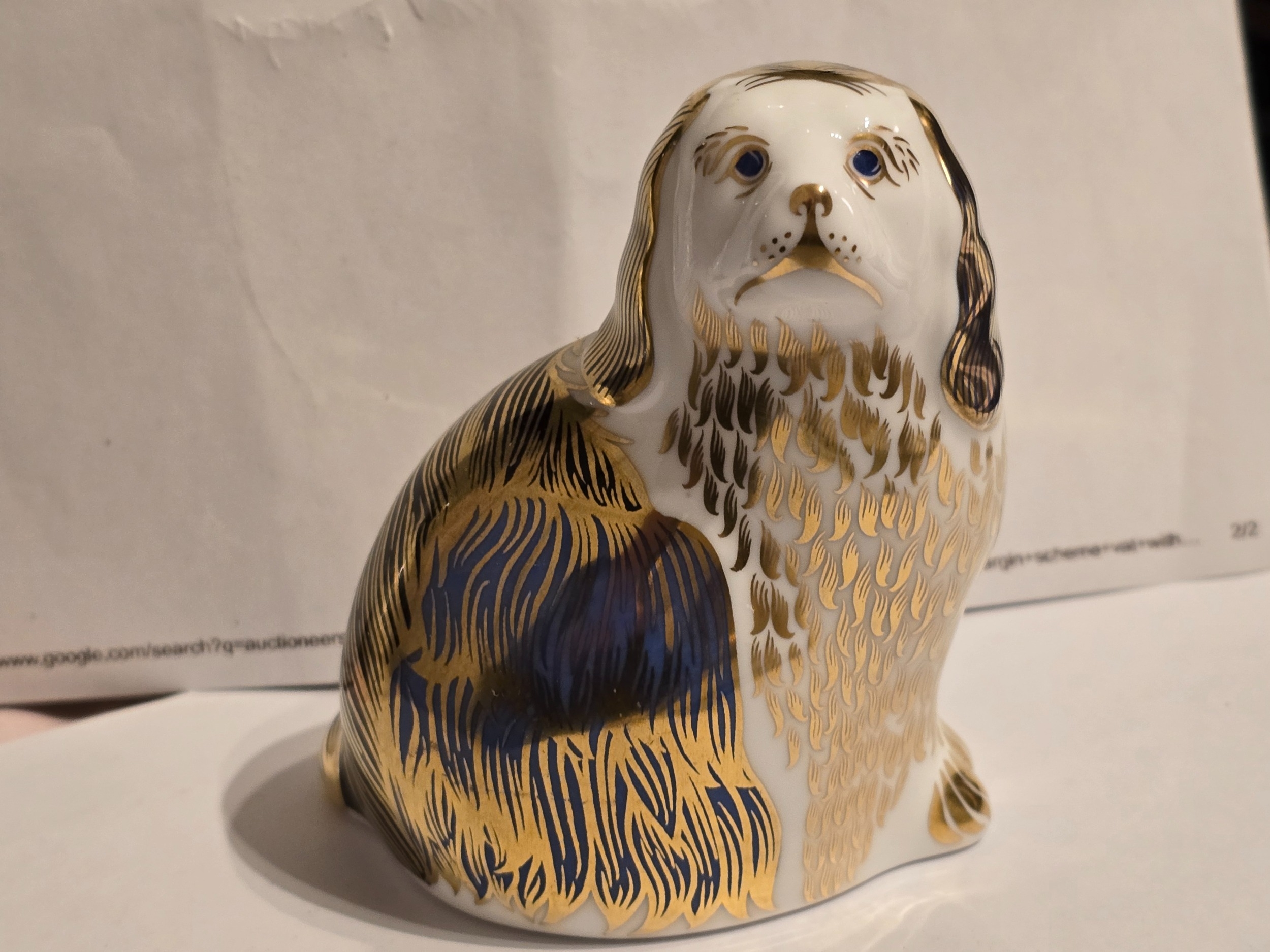 Royal Crown Derby paperweight - King Charles Spaniel. !st quality, Gold stopper. Excellent condition. Boxed.