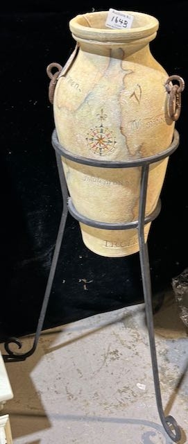 Hand Thrown Hand Painted Terracotta Vase in Stand