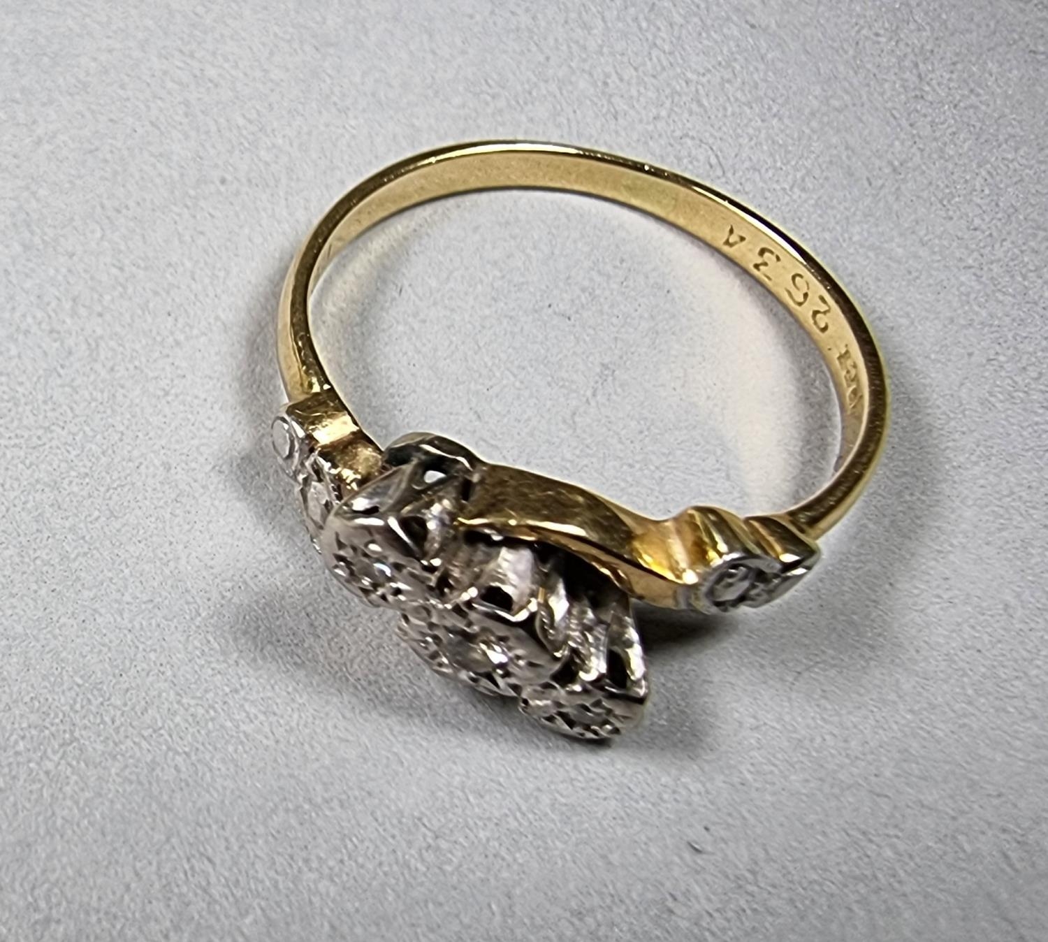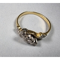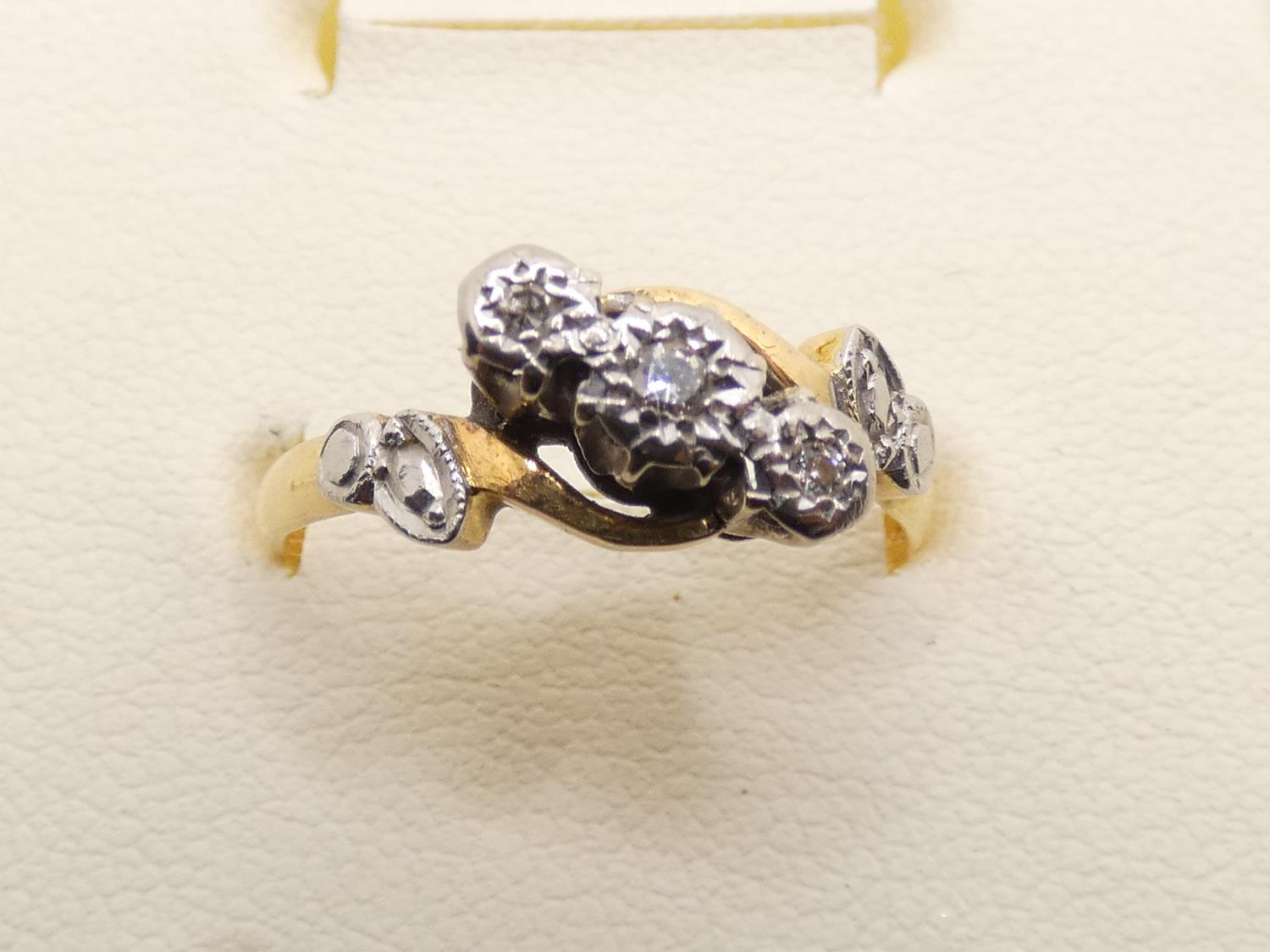 An 18ct gold three stone diamond ring, size O, 3.2 gms