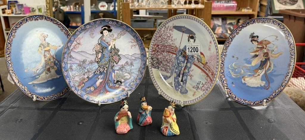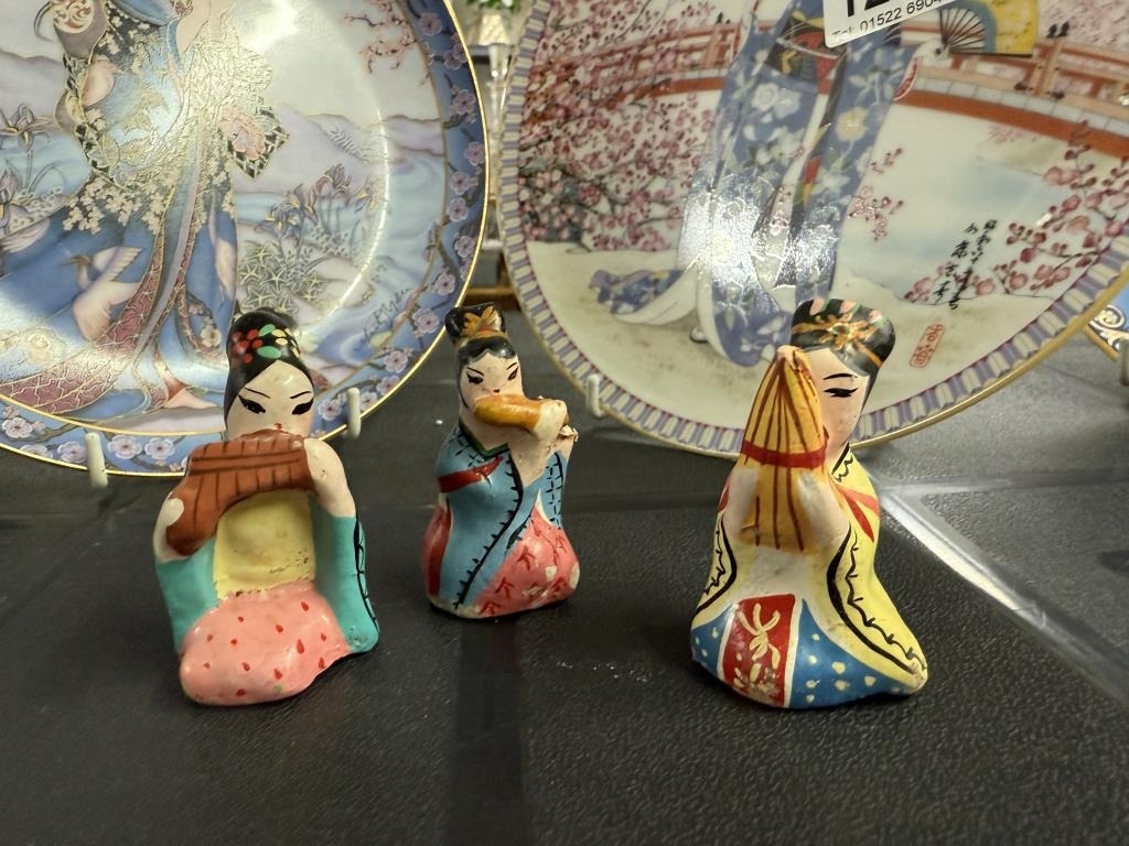 A quantity of Chinese collectors plates featuring Geisha's & a trio of Geisha's playing instruments