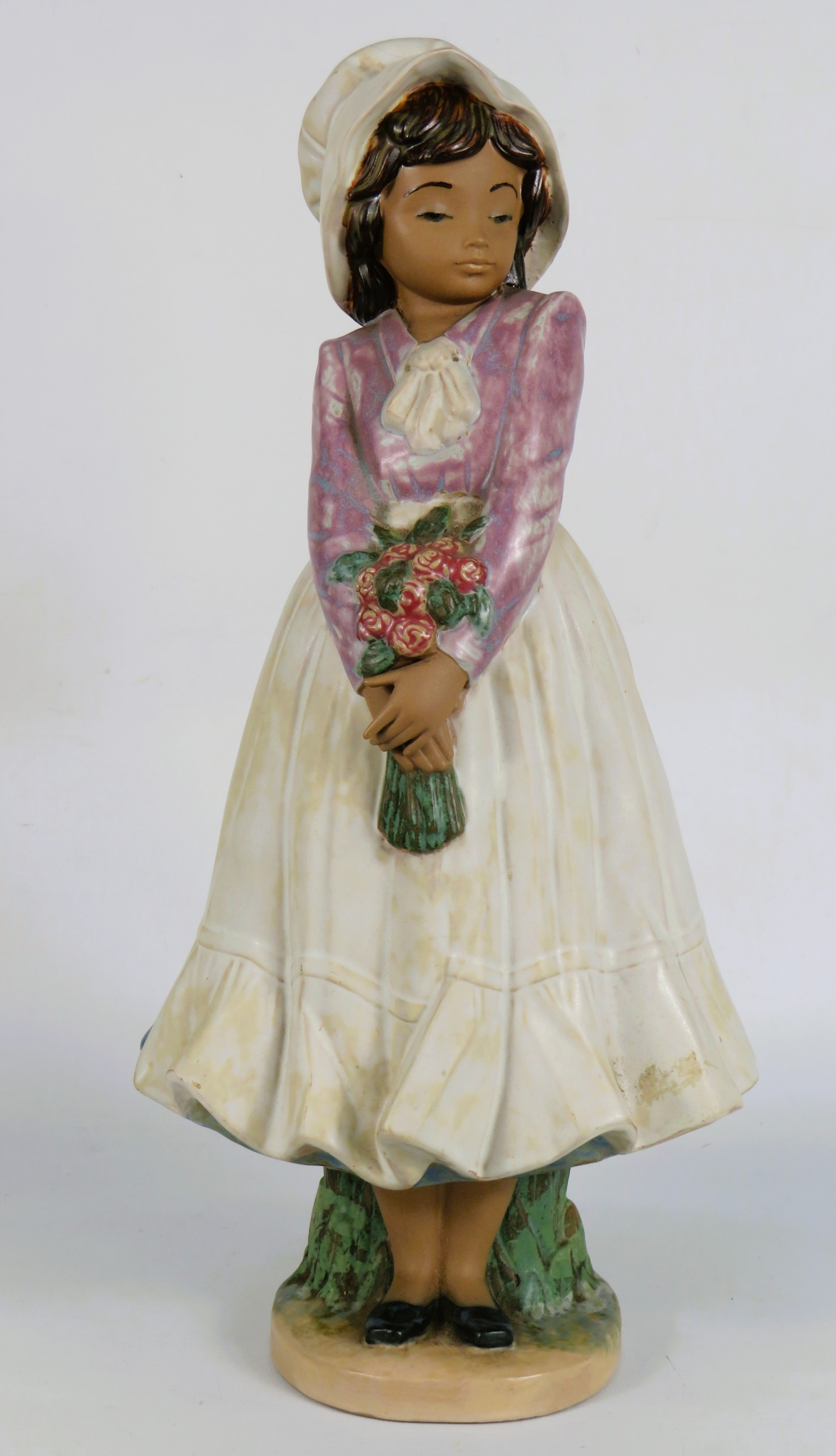 Lladro Gres First Blush of Spring Figurine - Girl with Bouquet - Height 38cm