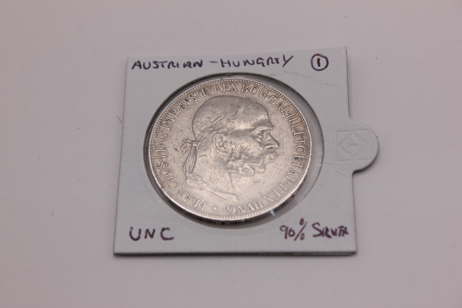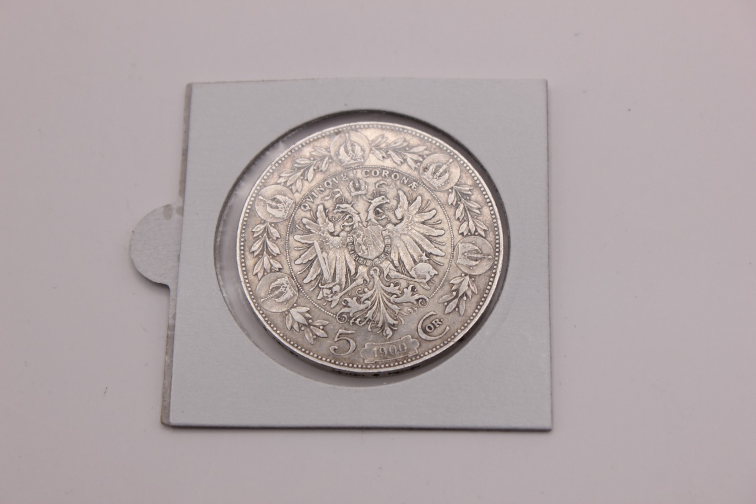 A rare Austrian silver five-crown coin from 1900.
