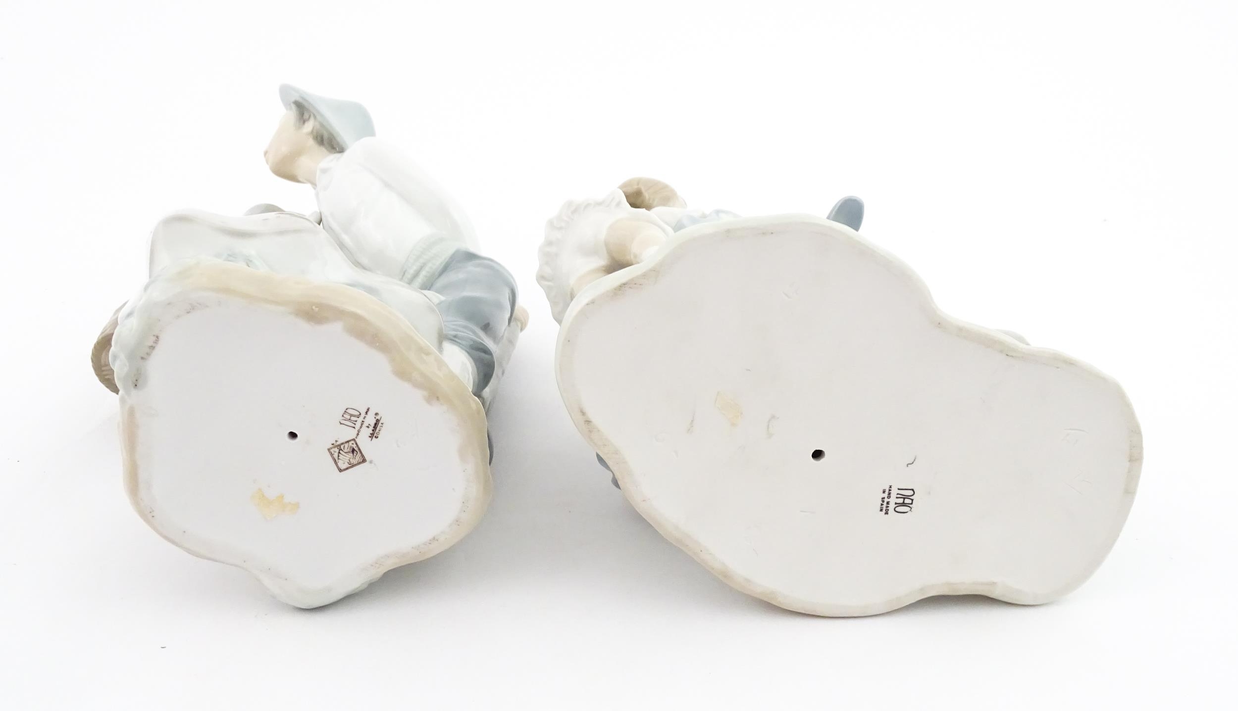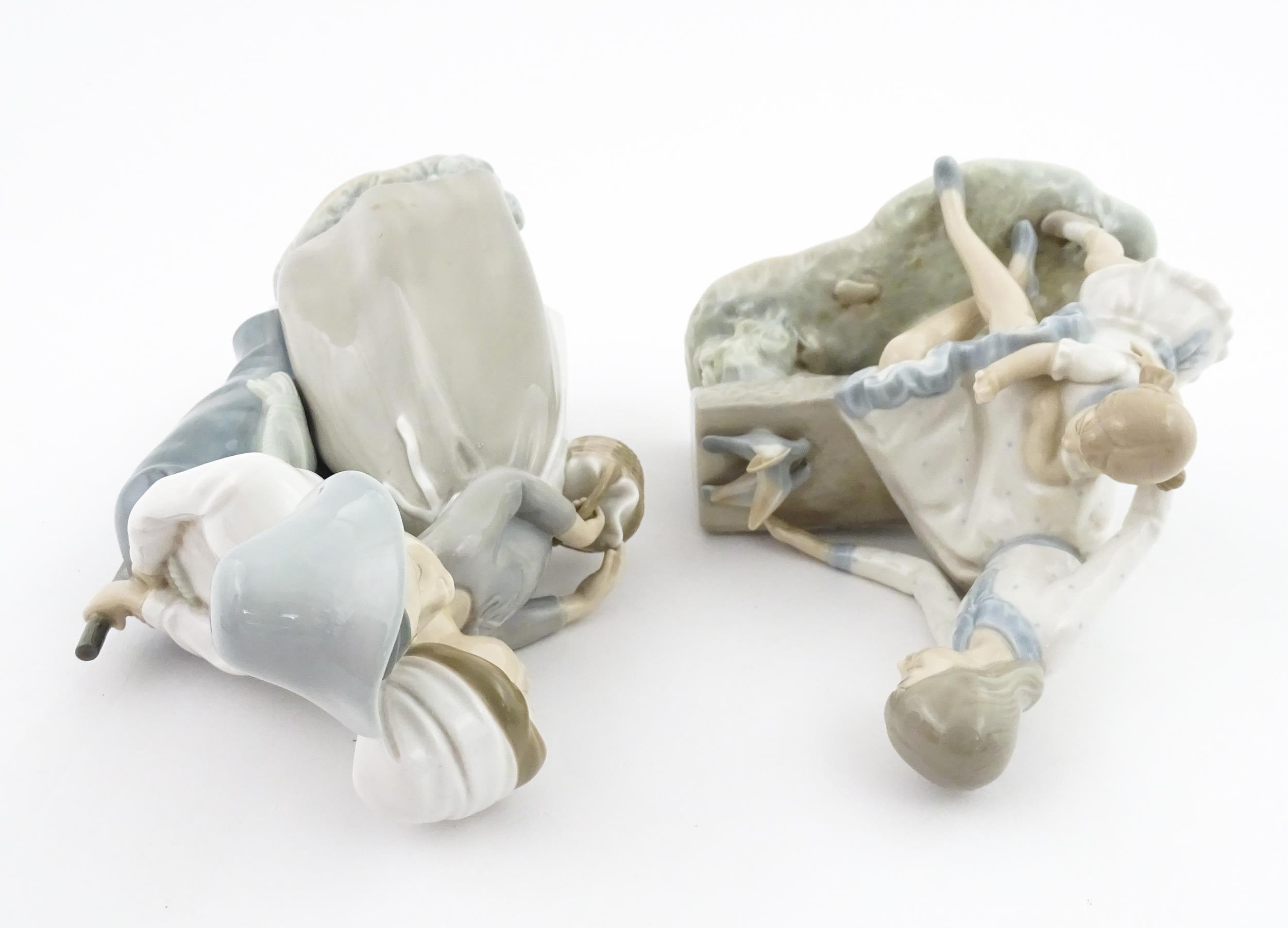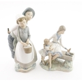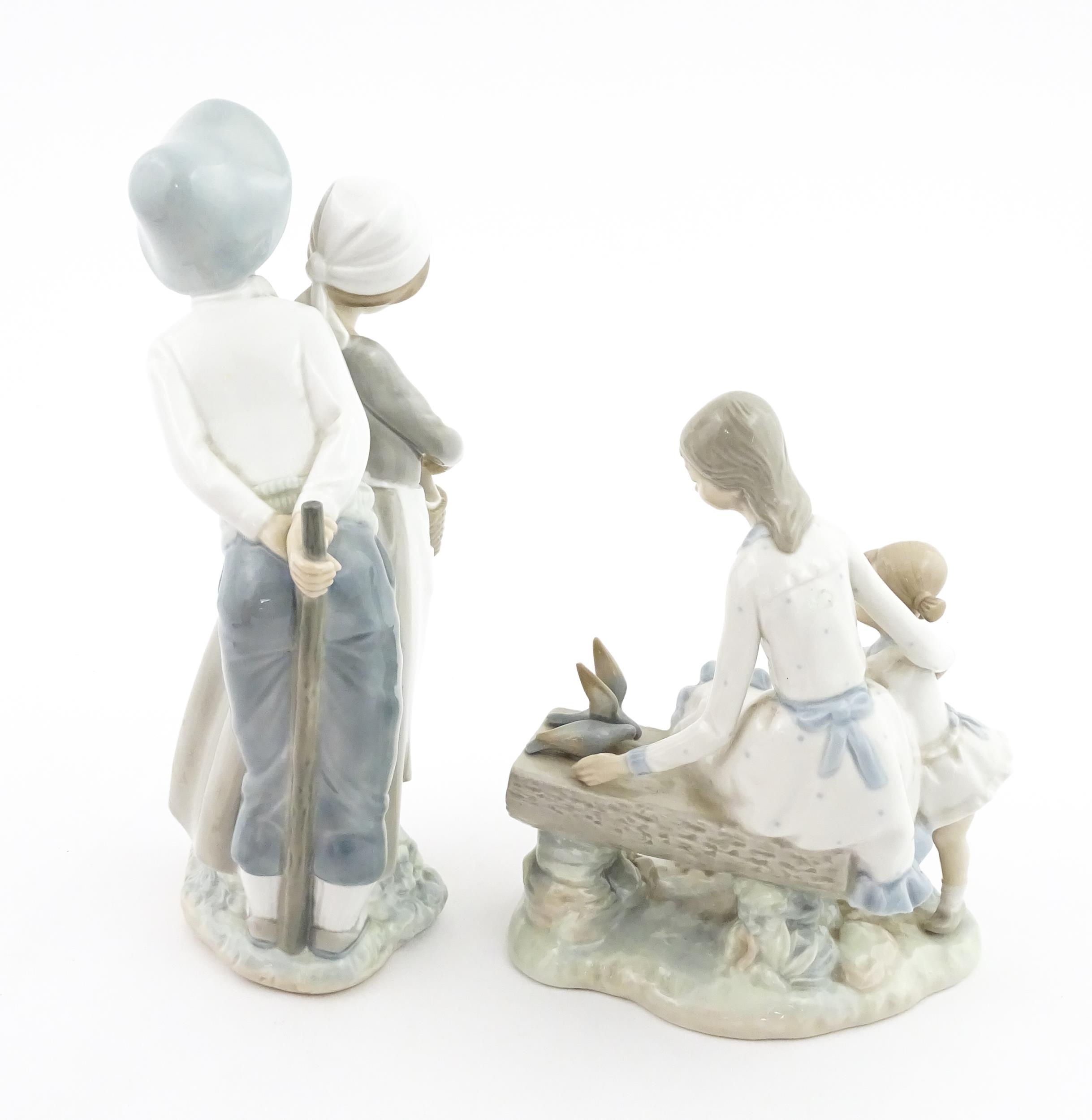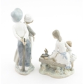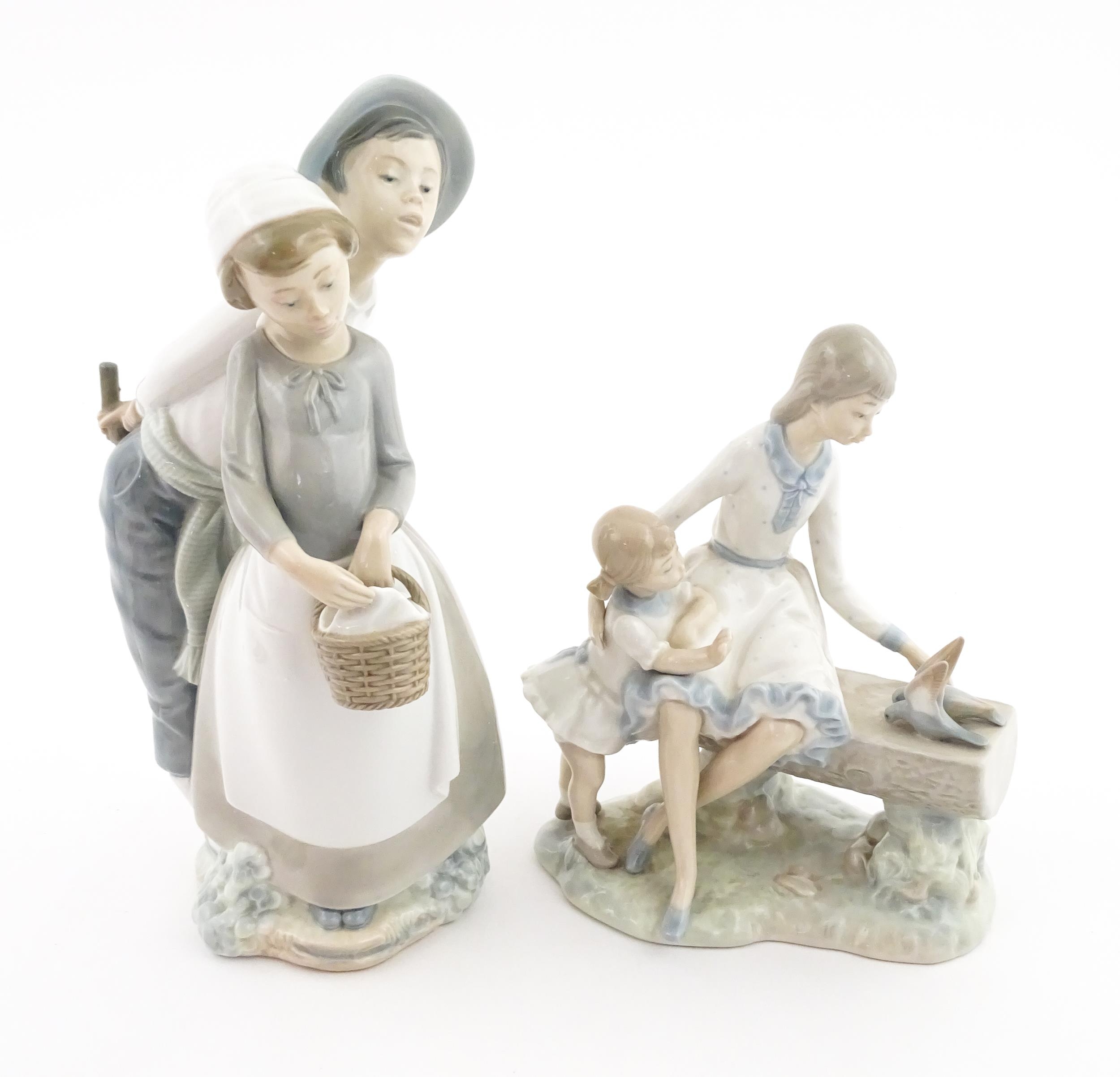 Two Nao figure groups comprising Courting Couple, and two young girls with a bird on a bench. Largest approx. 11 3/4" high (2)
