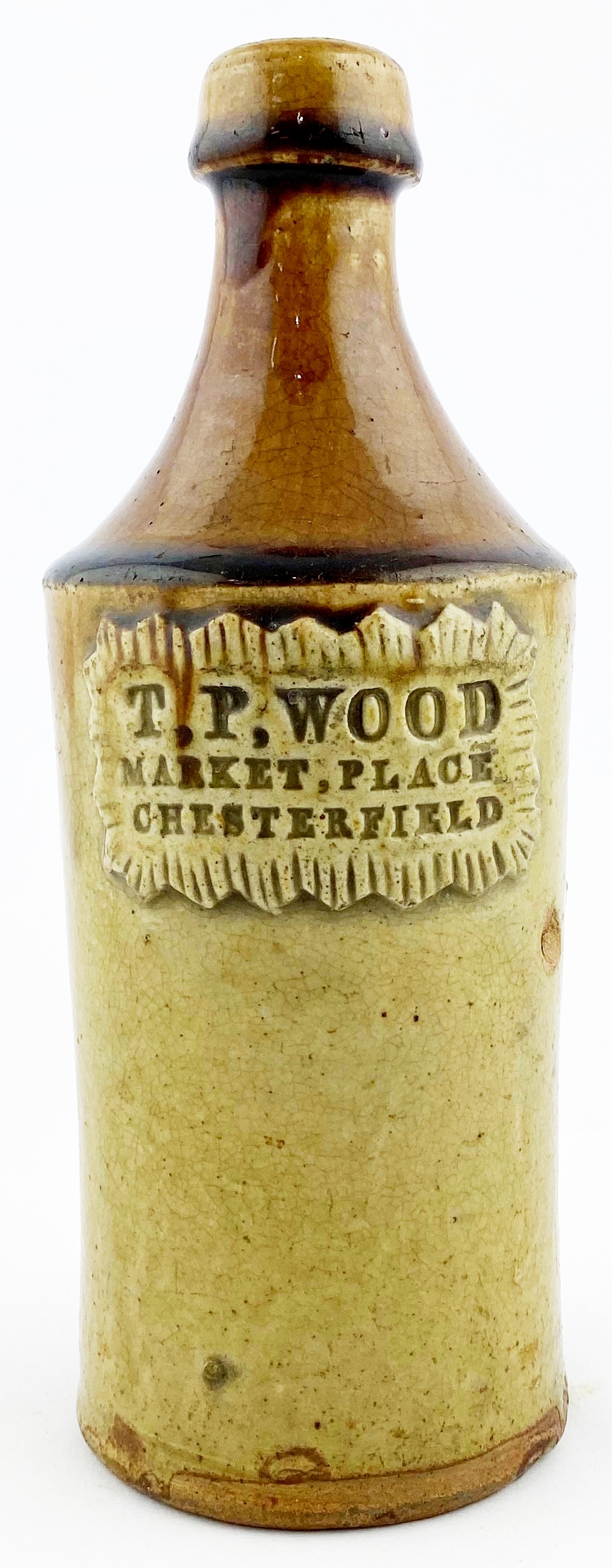 CHESTERFIELD PIE CRUST SEAL PORTER. 8ins tall. Impressed T. P. WOOD. Damages.