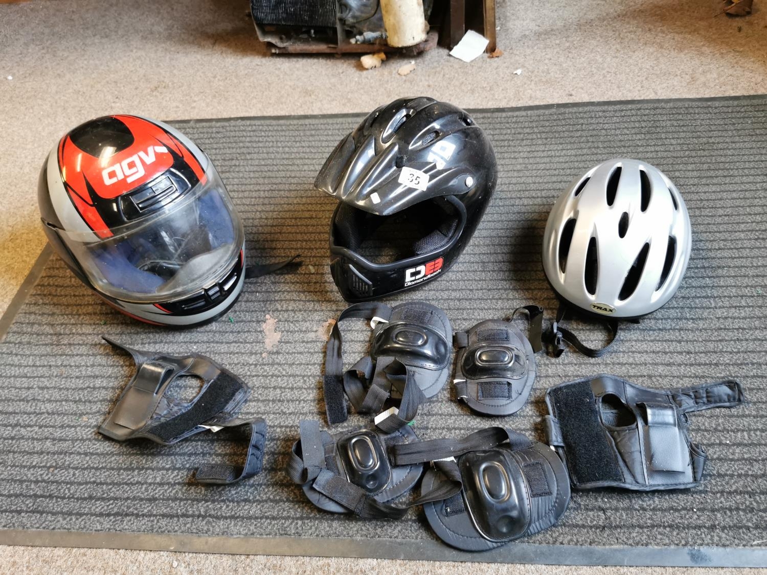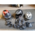 Two Motorcycle Helmets, Bicyle Helmet Etc