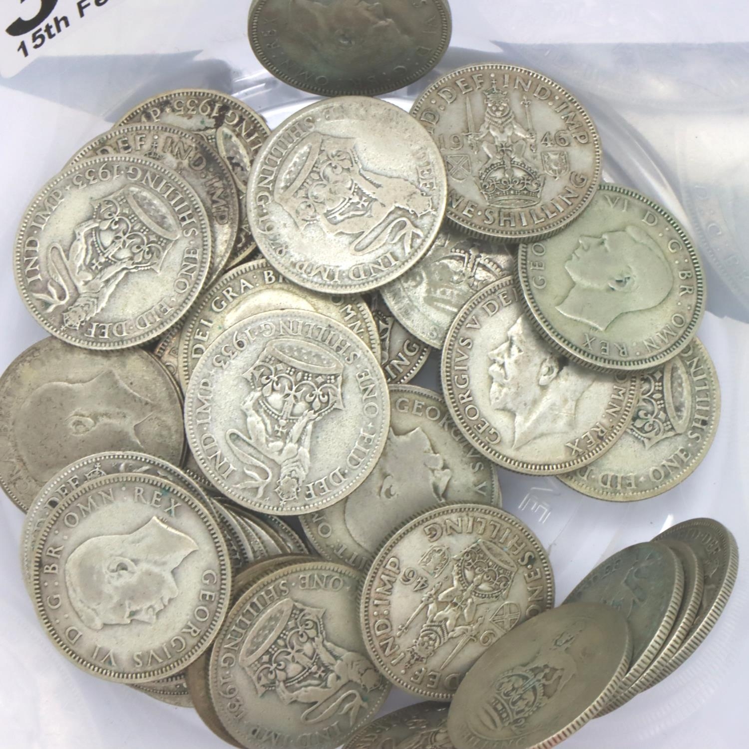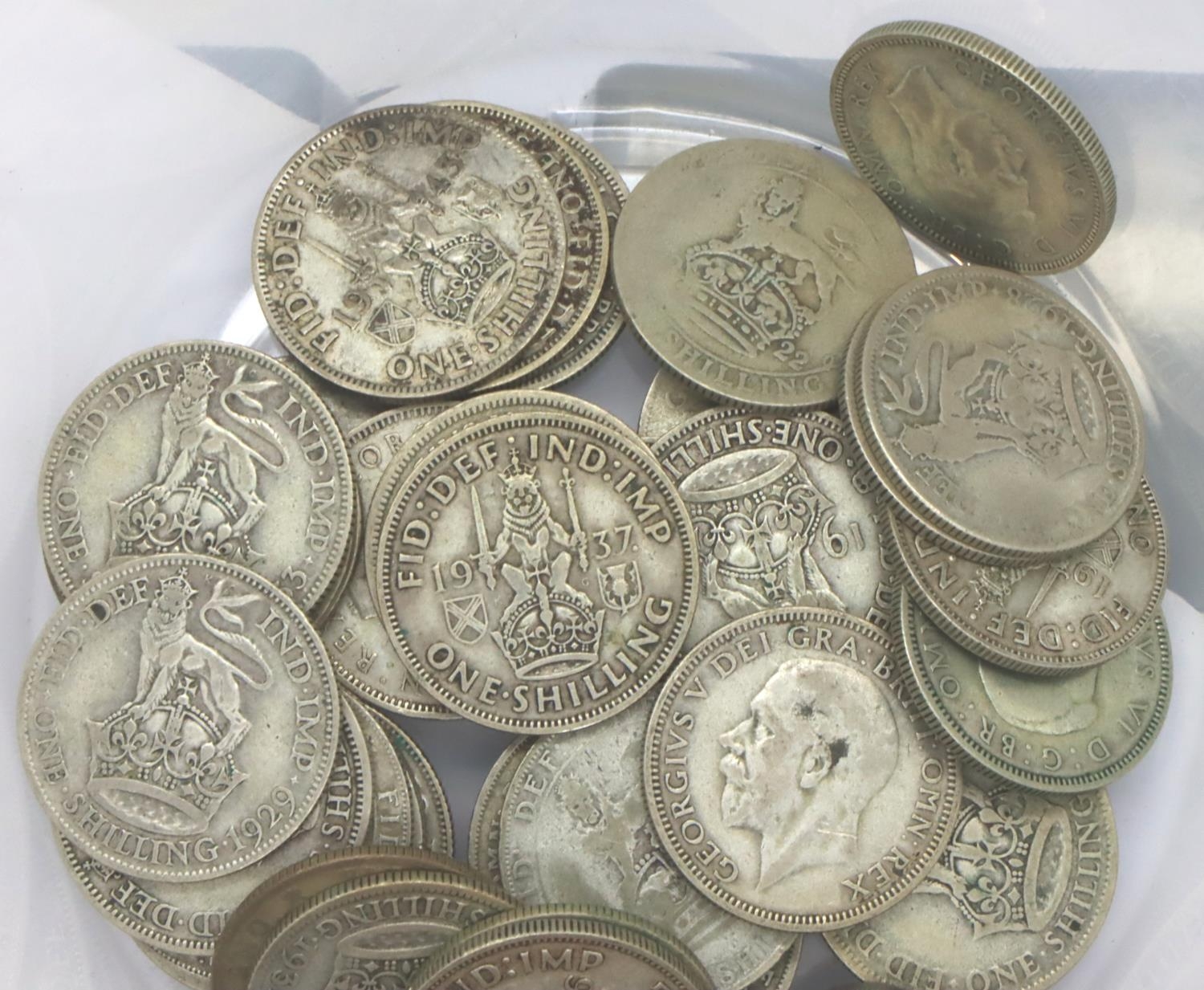 Forty mixed pre 1947 shillings. P&P Group 1 (£14+VAT for the first lot and £1+VAT for subsequent lots)