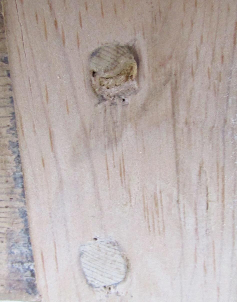 Made in a traditional style. But isn't old. Pegged joints. Structurally sound. some splits to legs.