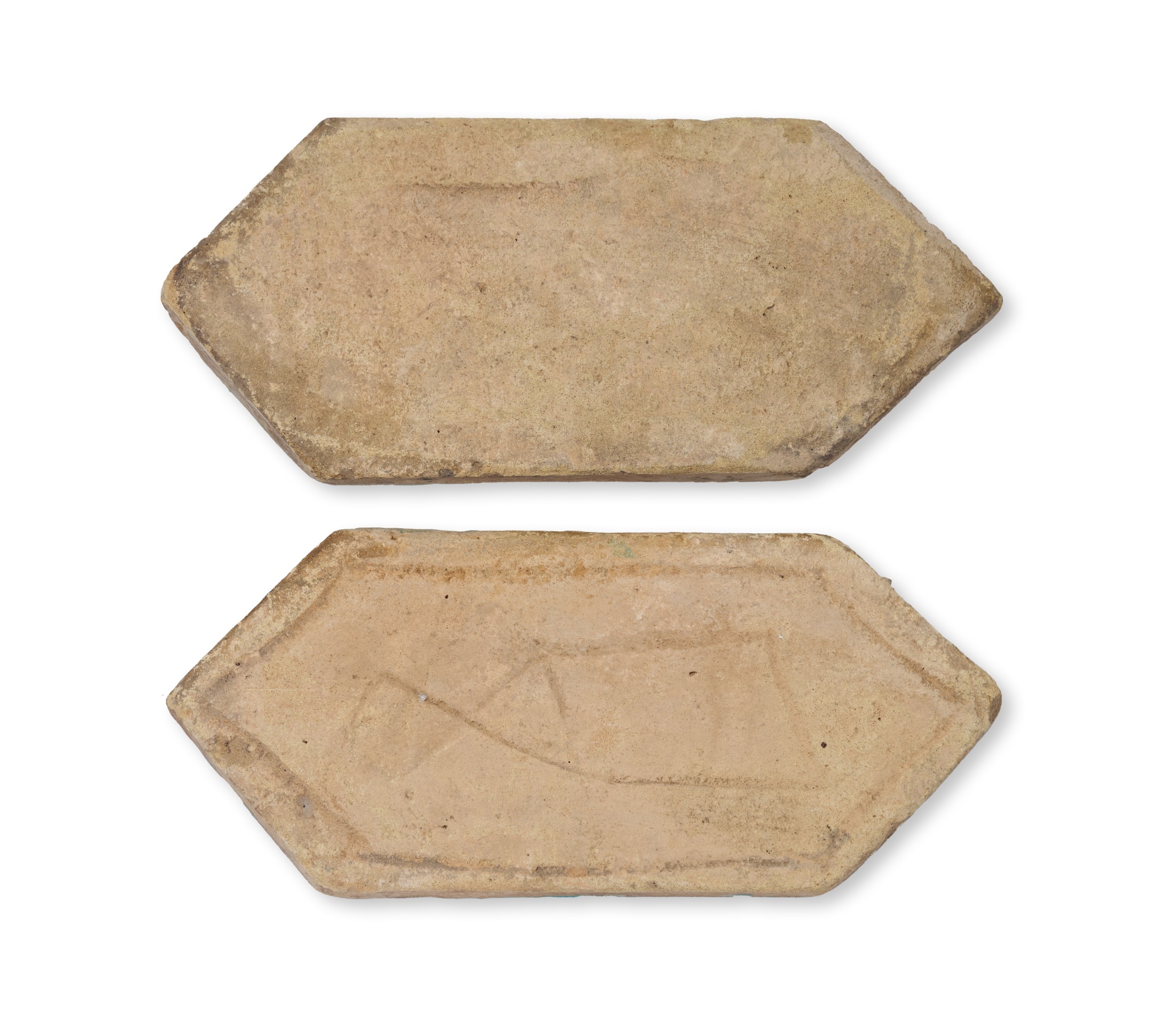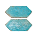 A PAIR OF KASAHN TURQUOISE GLAZED ELONGATED HEXAGONAL TILES, PERSIA, 12TH - 13TH CENTURY