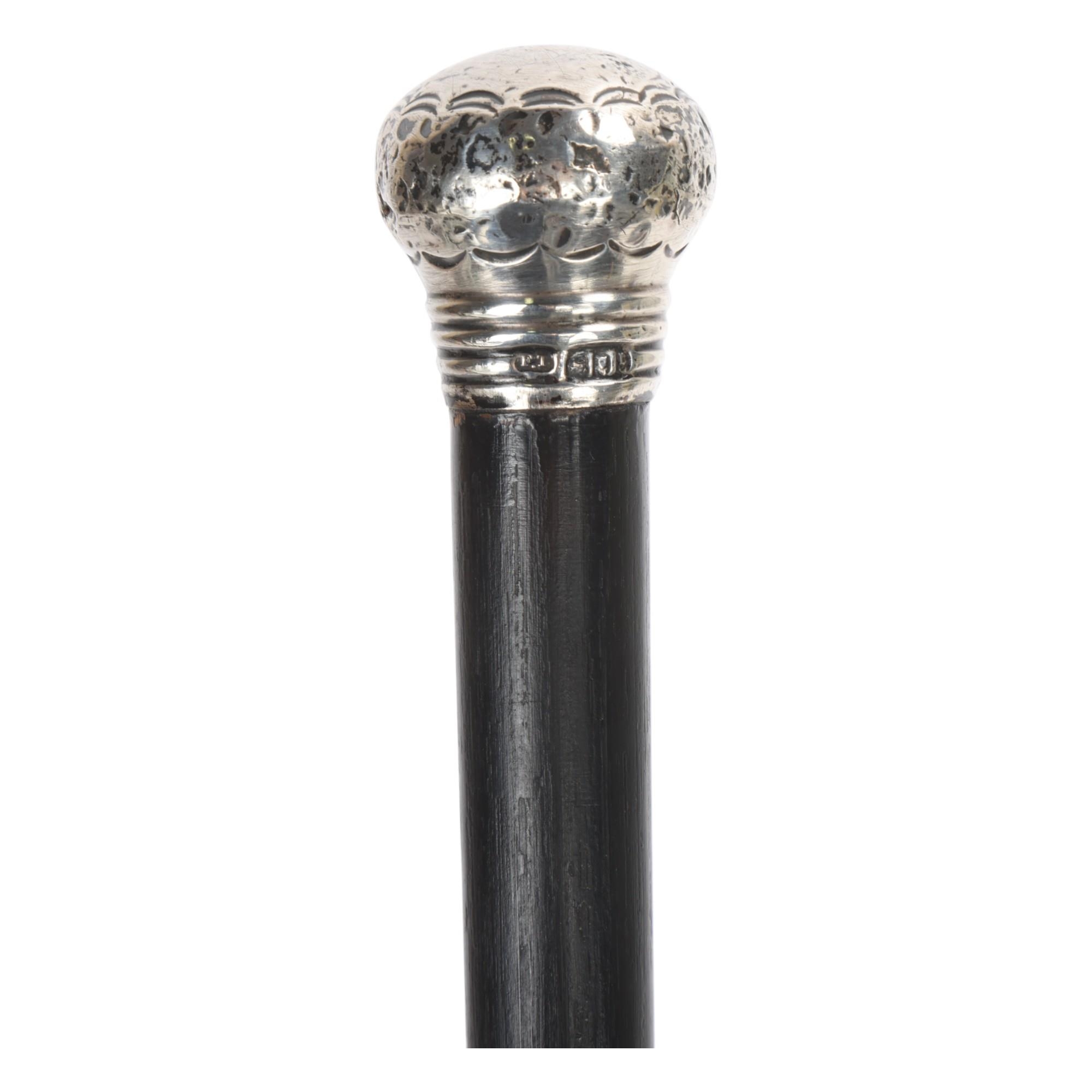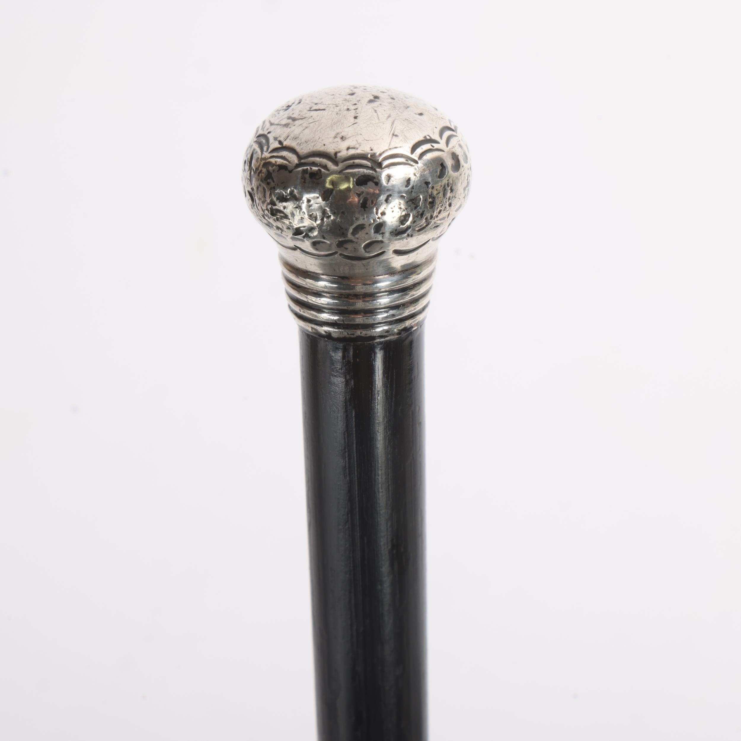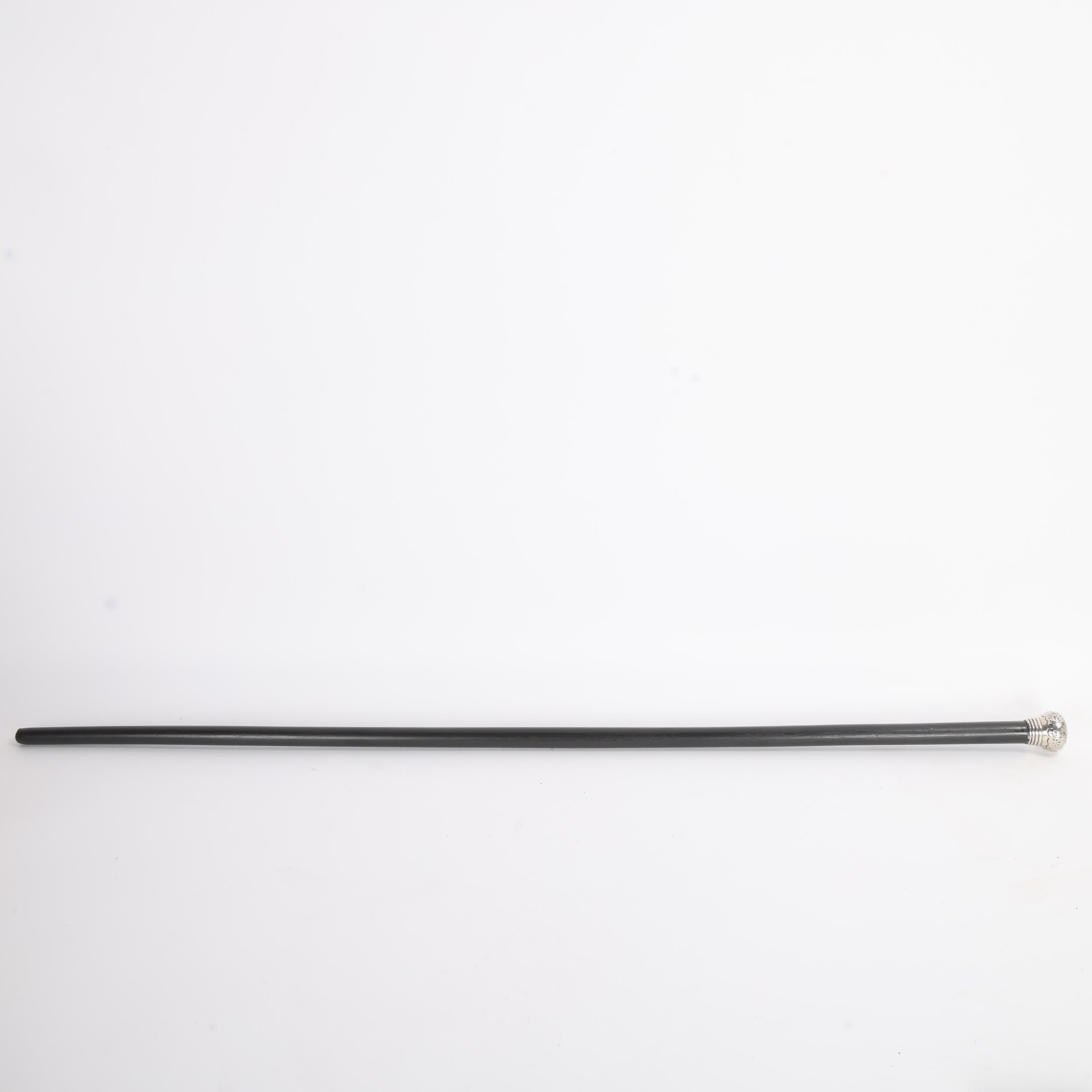 An engraved silver mounted stick on ebonised shaft, hallmarked 1926 F.T., length 89cm