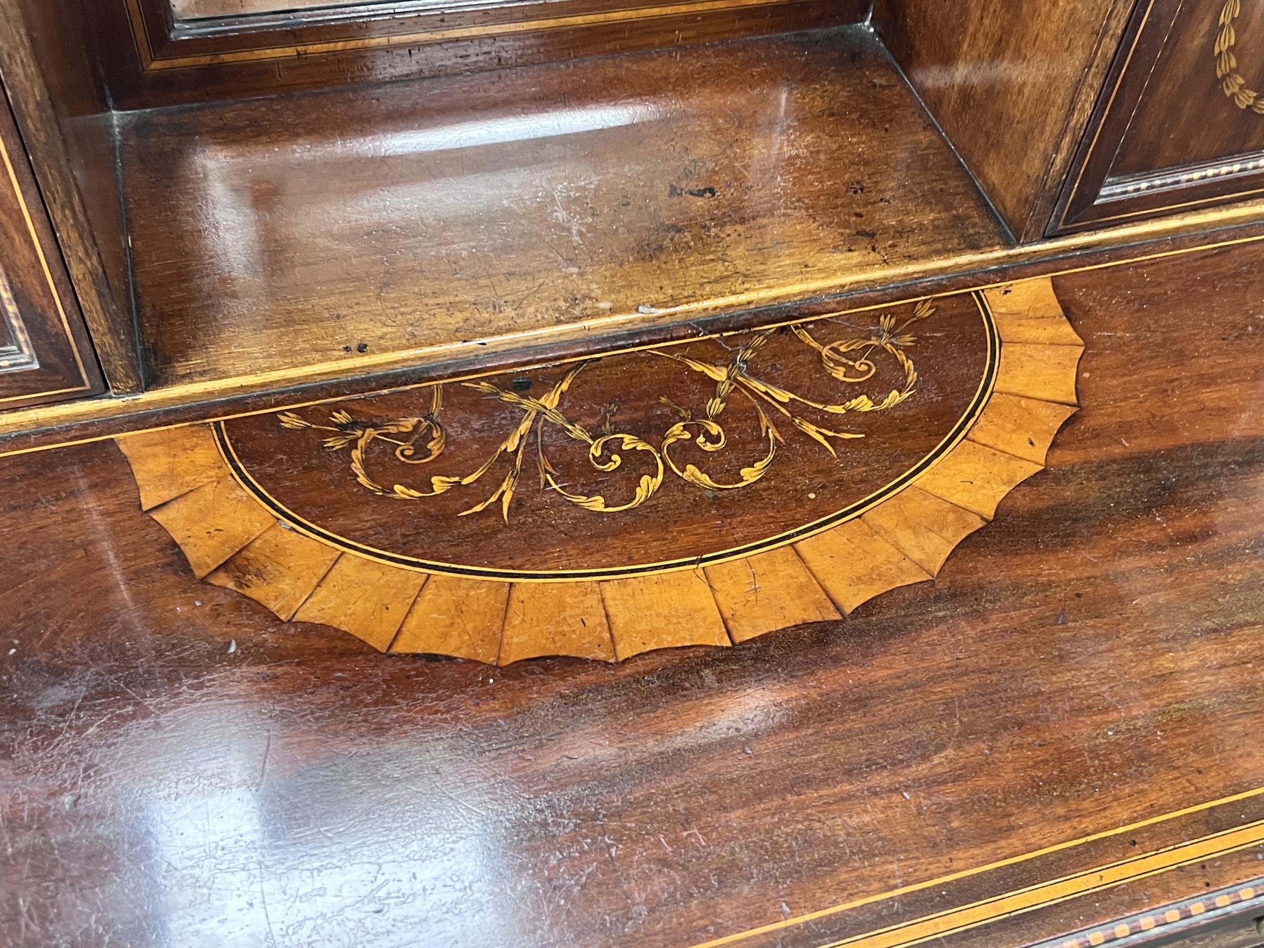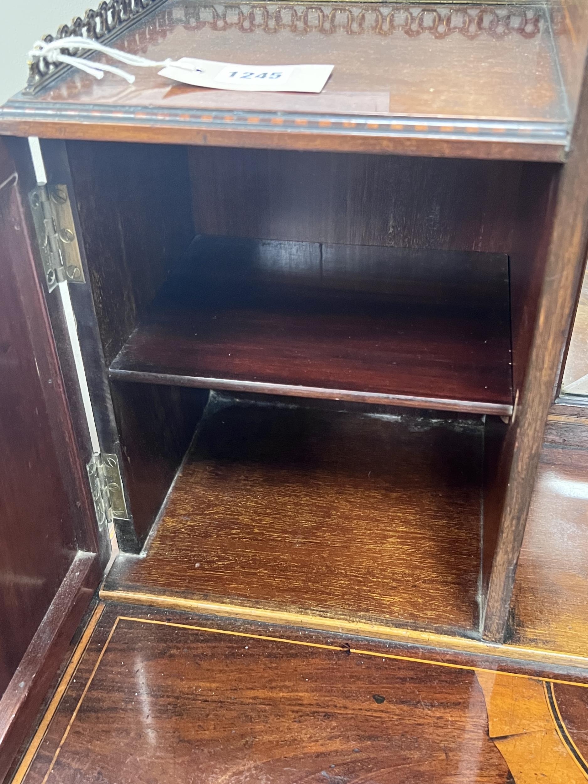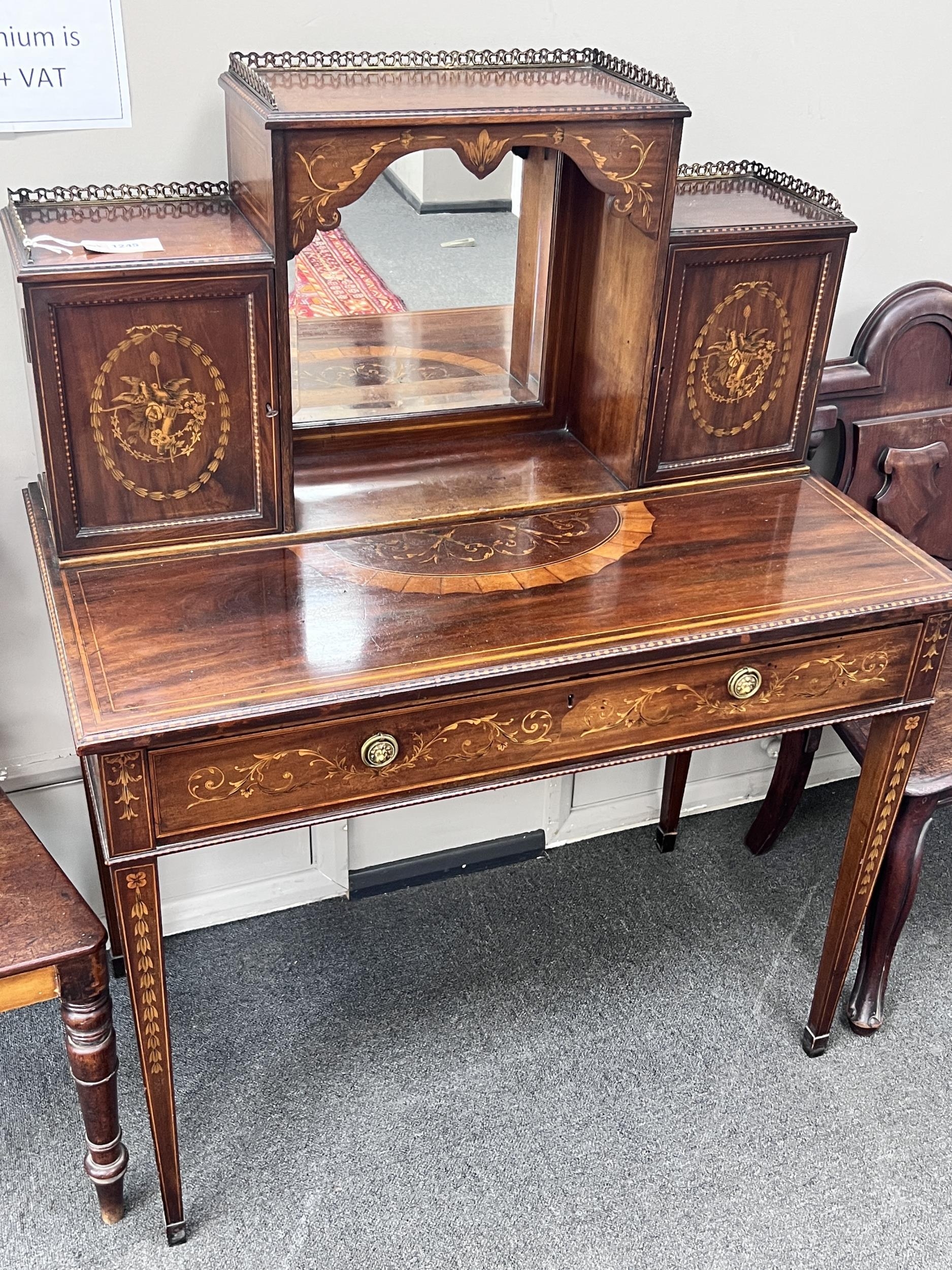 An Edwardian marquetry inlaid mahogany bonheur du jour, in the manner of Edwards & Roberts, width 92cm, depth 52cm, height 118cm