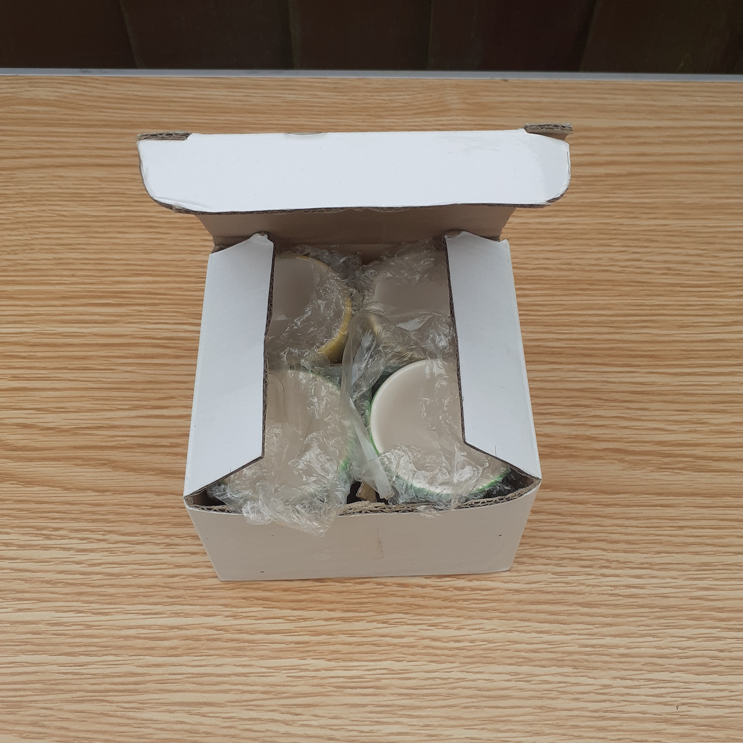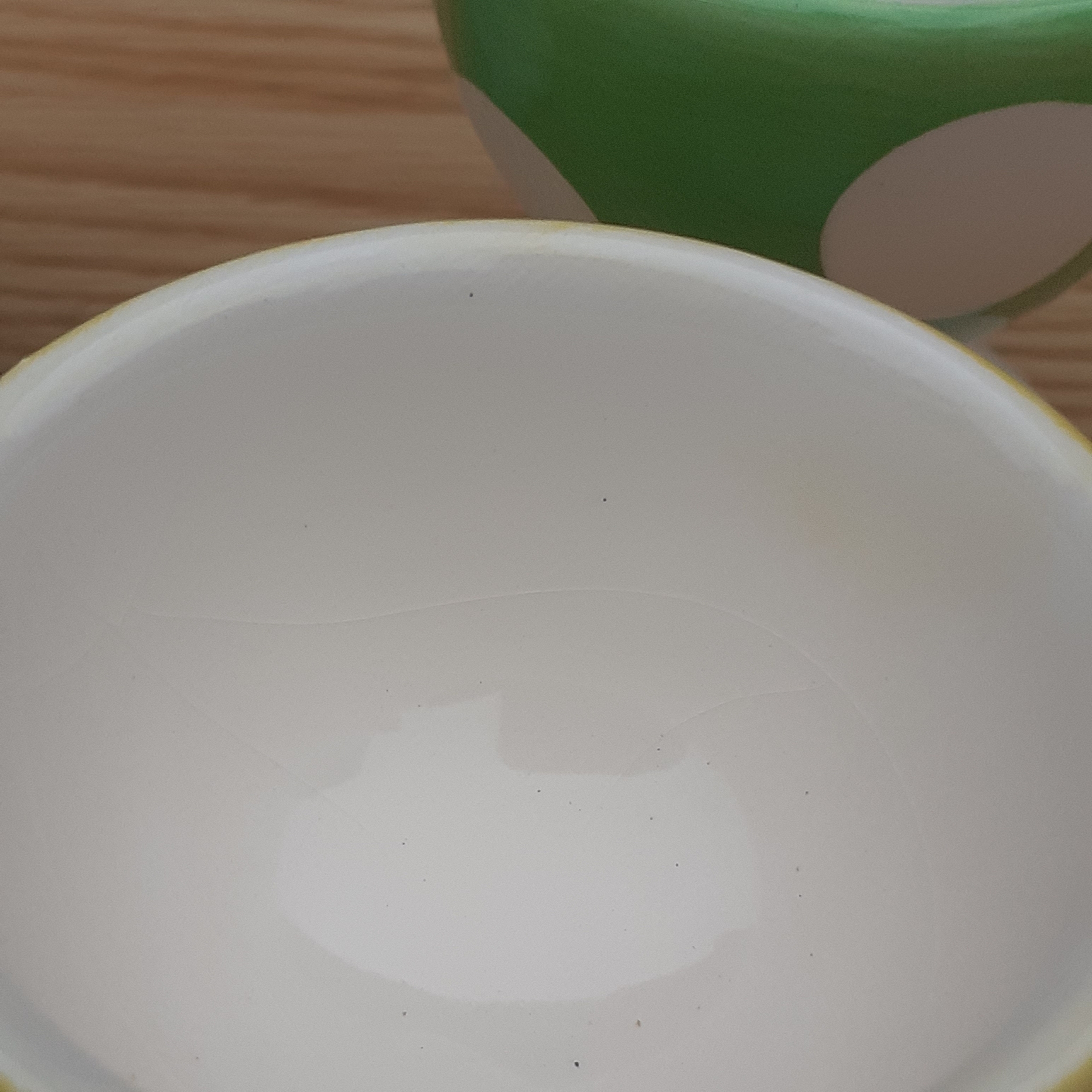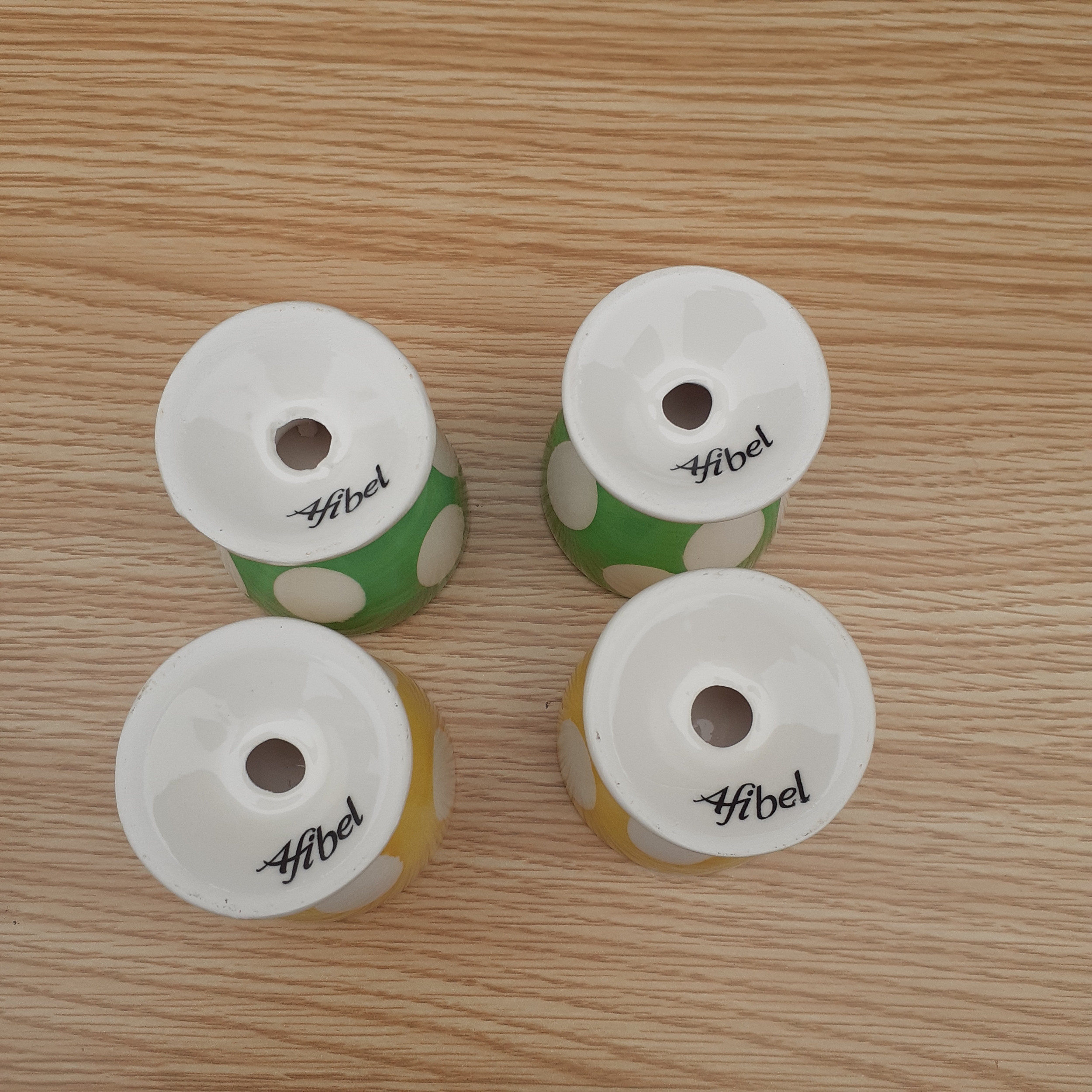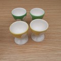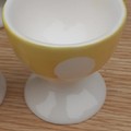 4 vintage egg cups, Afibel. French branded. Pretty little things in yellow and green polka dot pattern with some slight age related crazing. Never used