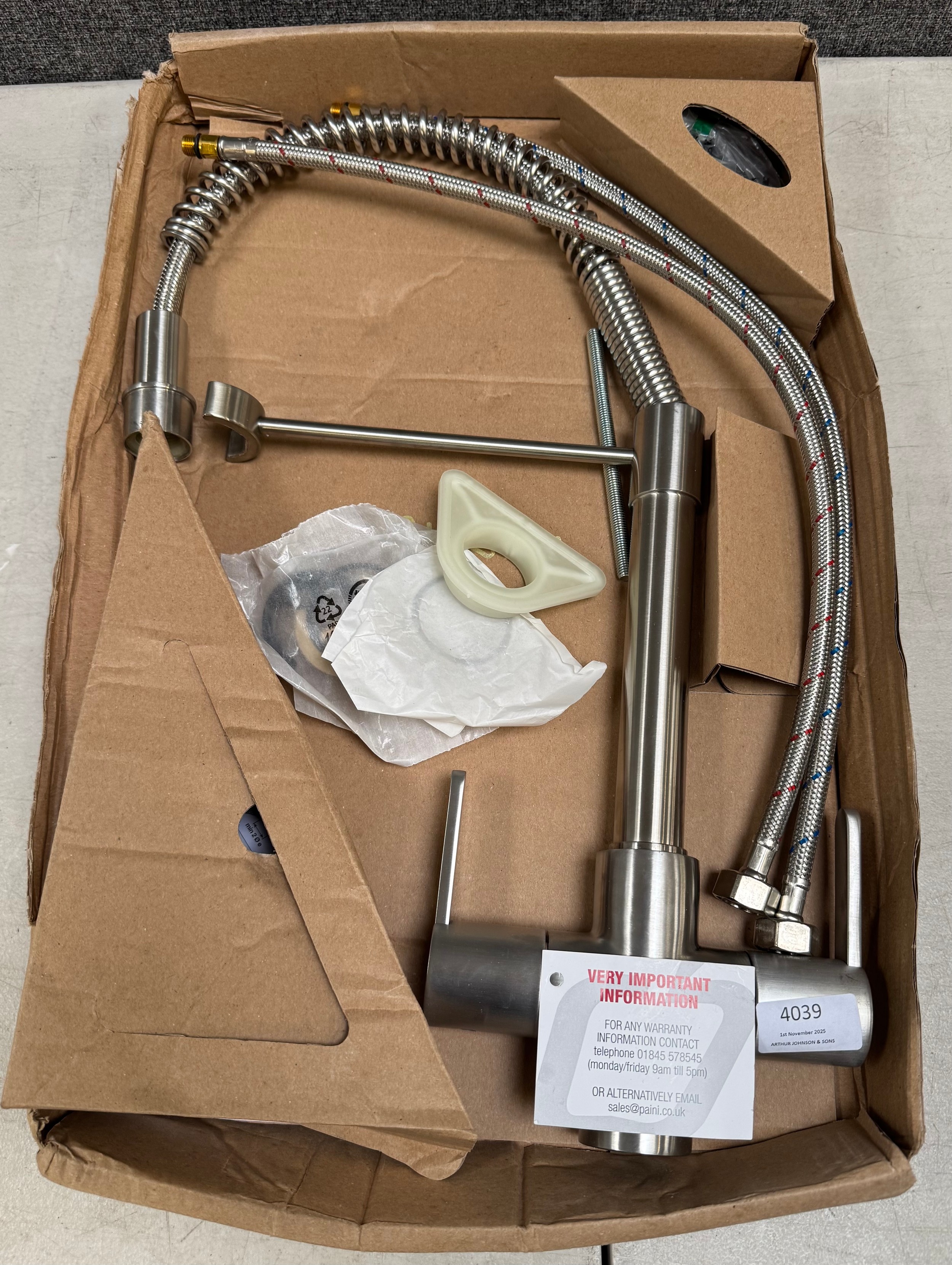 Brushed nickel pull down mixer tap (556-174) *This lot is subject to VAT