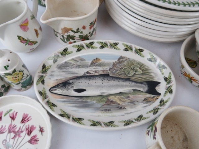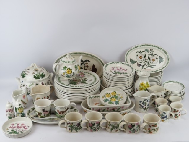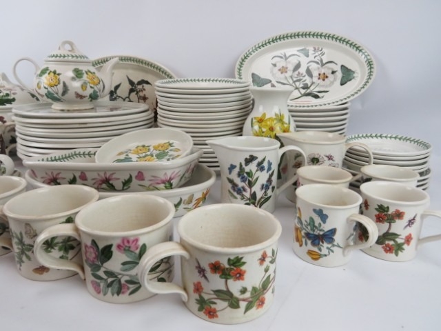 A group of Portmeirion part tea and dinner service wares. Mostly Botanic Garden wares with floral decoration. (77 items) Teapot: 21 cm height.