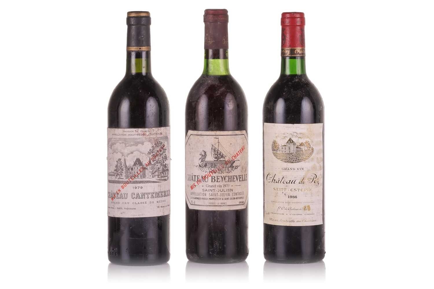 A bottle of 1979 Chateau Beychevelle Saint Julien, together with a 1979 Chateau Cantemerle and a 1986 Chateau de Pez Saint-Estephe. Qty: (3)
