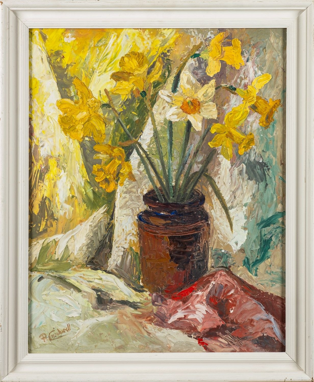 British School, 20th Century - Still life of daffodils - Oil on board - 49 x 39cm - Signed 'P. Crockwell' lower left