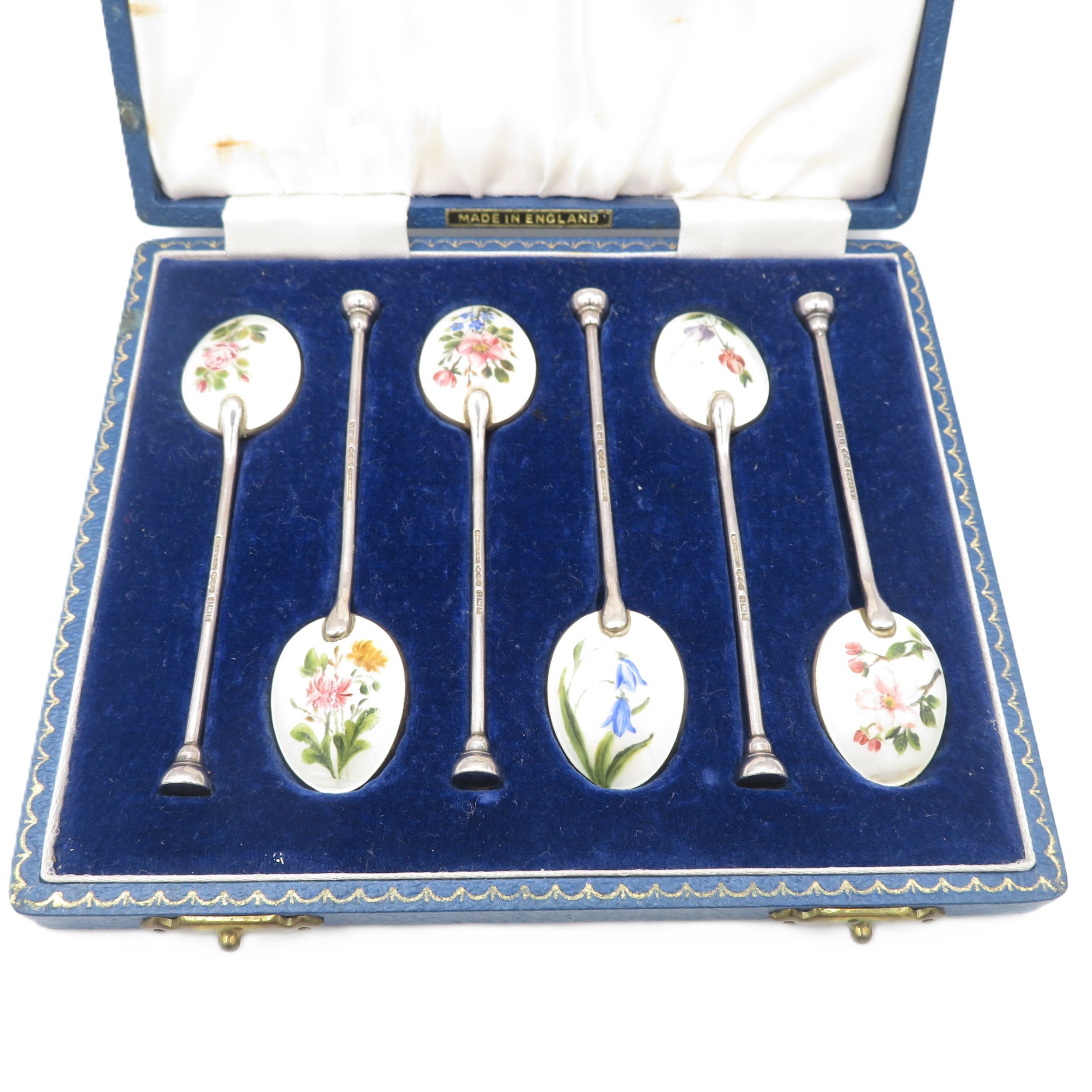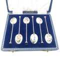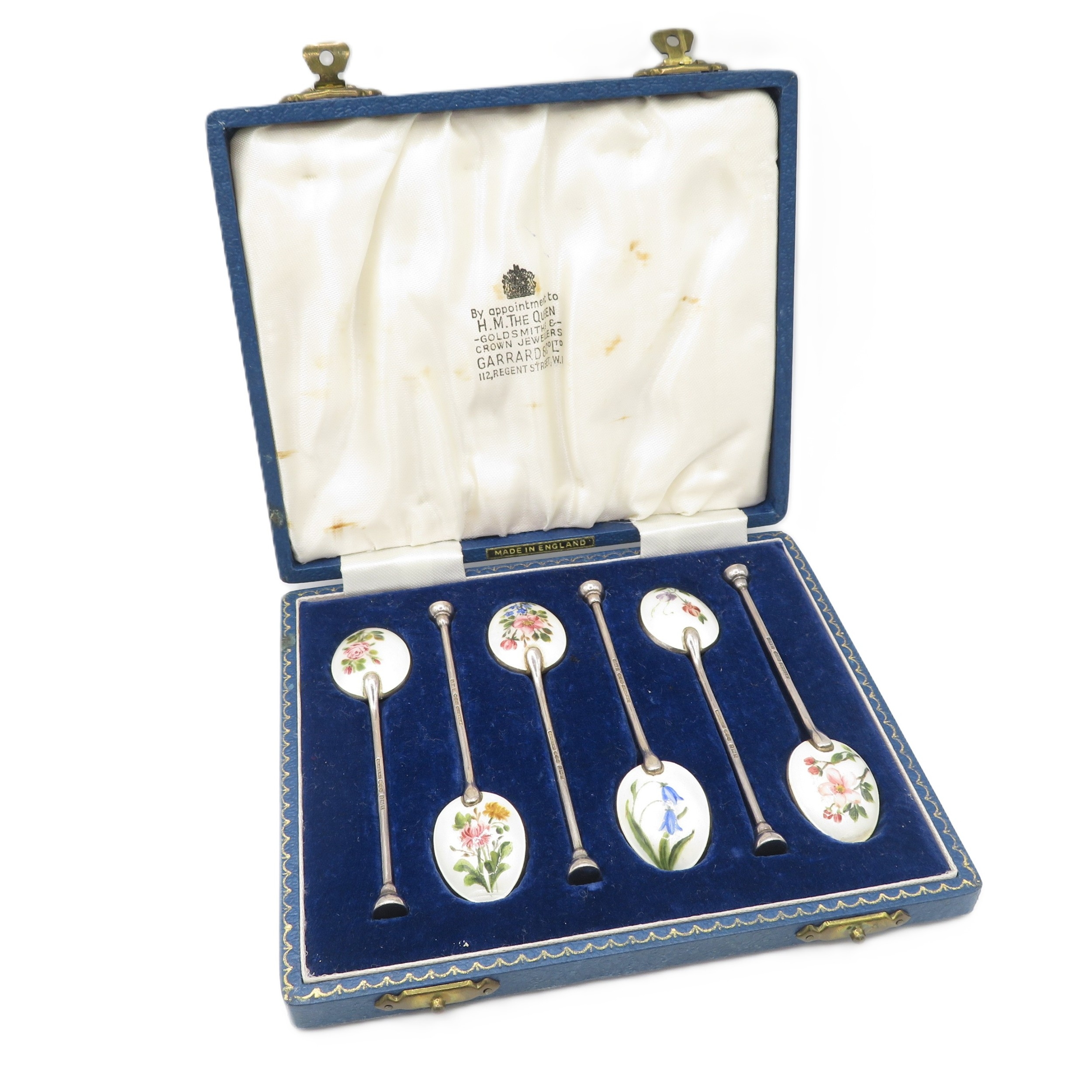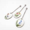 Boxed Sterling Silver 925 Henry Clifford Davis Floral Guilloche Enamel Spoons from Garrard & Co 59g