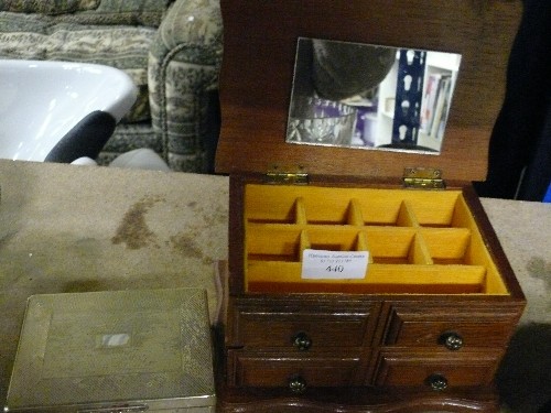 VINTAGE ARISTOCRAT JEWELLERY BOX WITH A POLISHED WALNUT FINISH CHEST OF DRAWERS JEWELLERY BOX WTH LID
