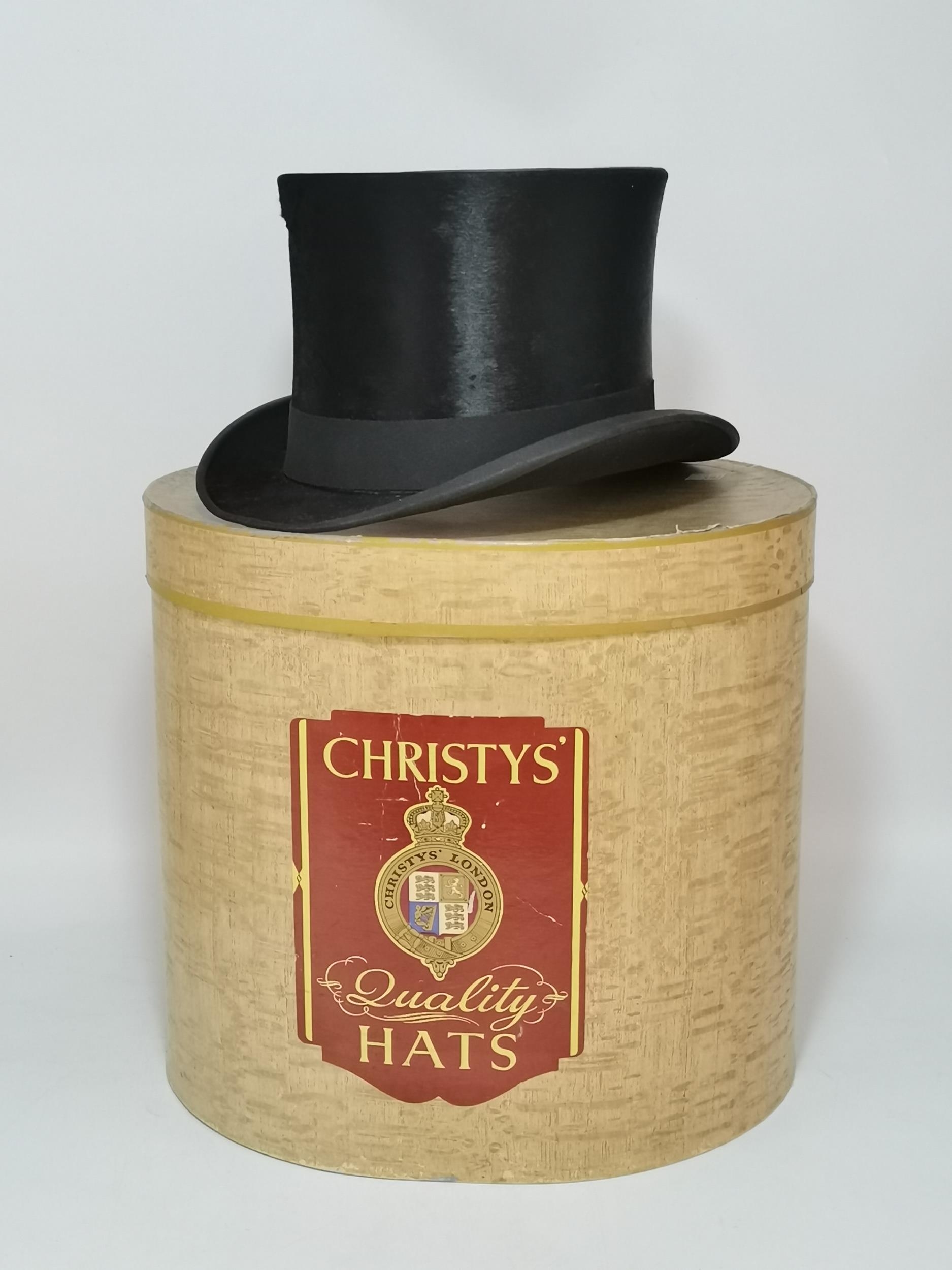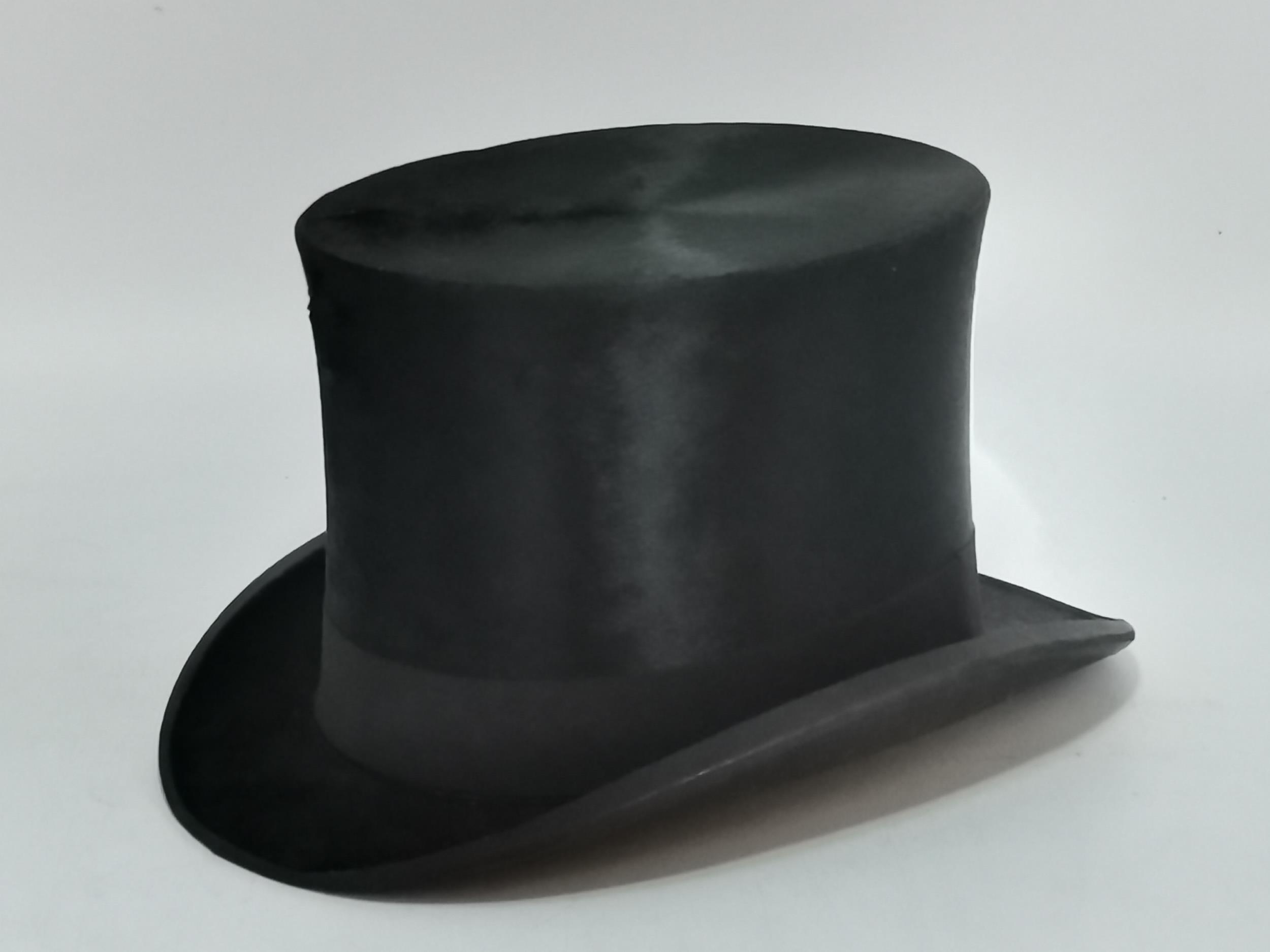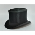 A black silk top hat by Tress & Co, London for W. Robinson & Son, York, in a Christys hat box. Internal circumference 57cm