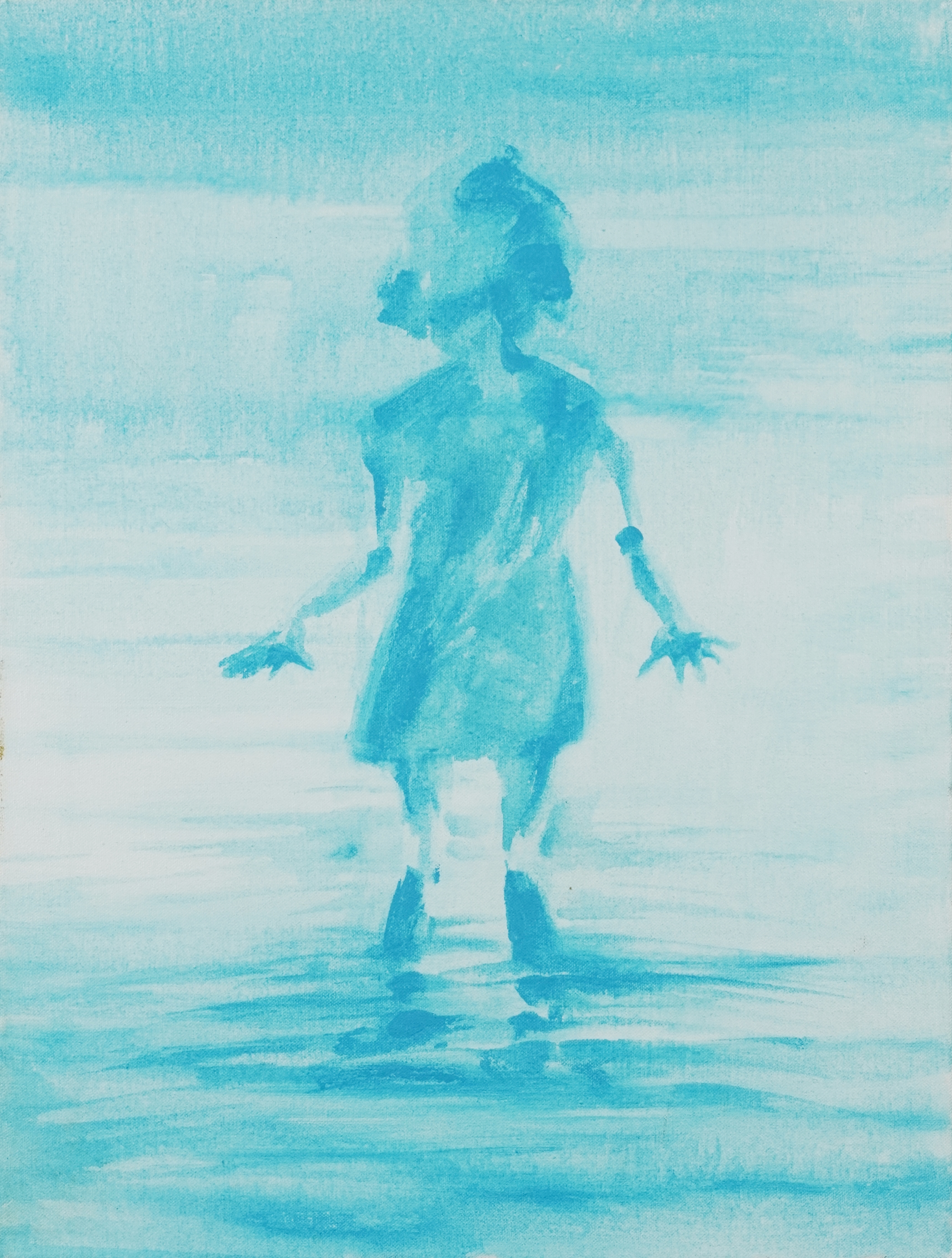Brian Taylor - Child entering the Sea, modern British School, mixed media on canvas, unframed, 61cm x 48cm.