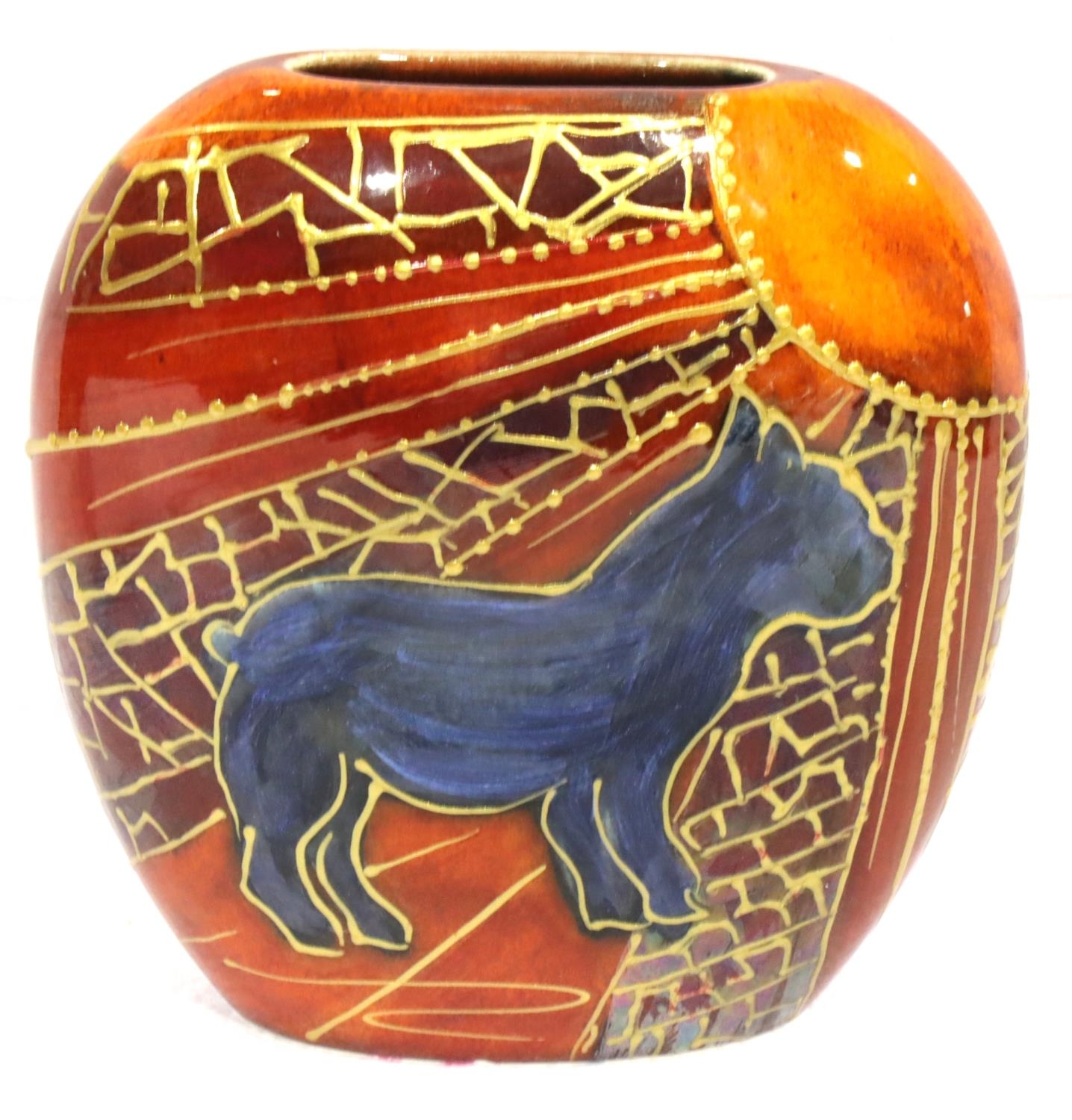 Anita Harris dog design vase, H: 14 cm. No cracks, chips or visible restoration. P&P Group 1 (£14+VAT for the first lot and £1+VAT for subsequent lots)