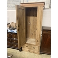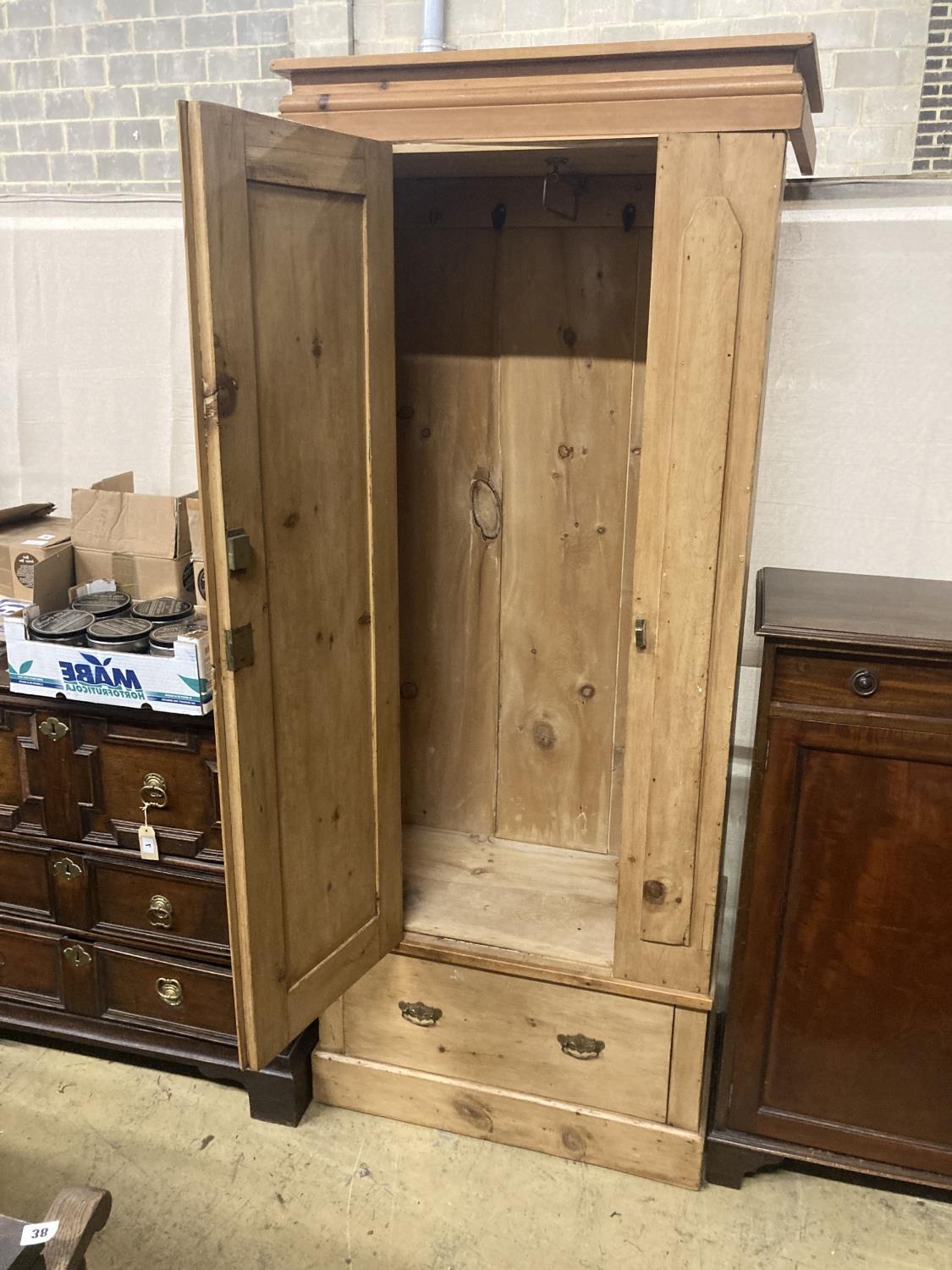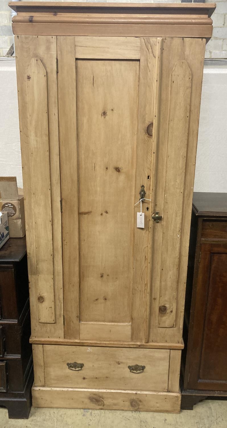 A Victorian pine single door wardrobe, width 79cm, depth 42cm, height 193cm