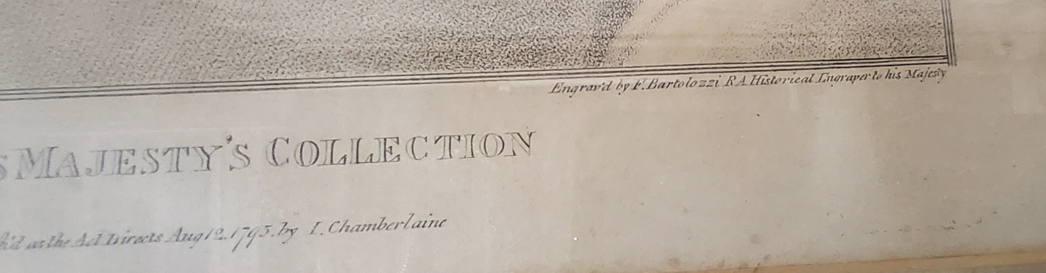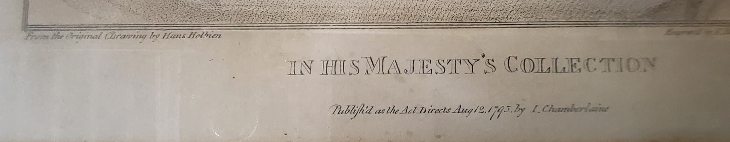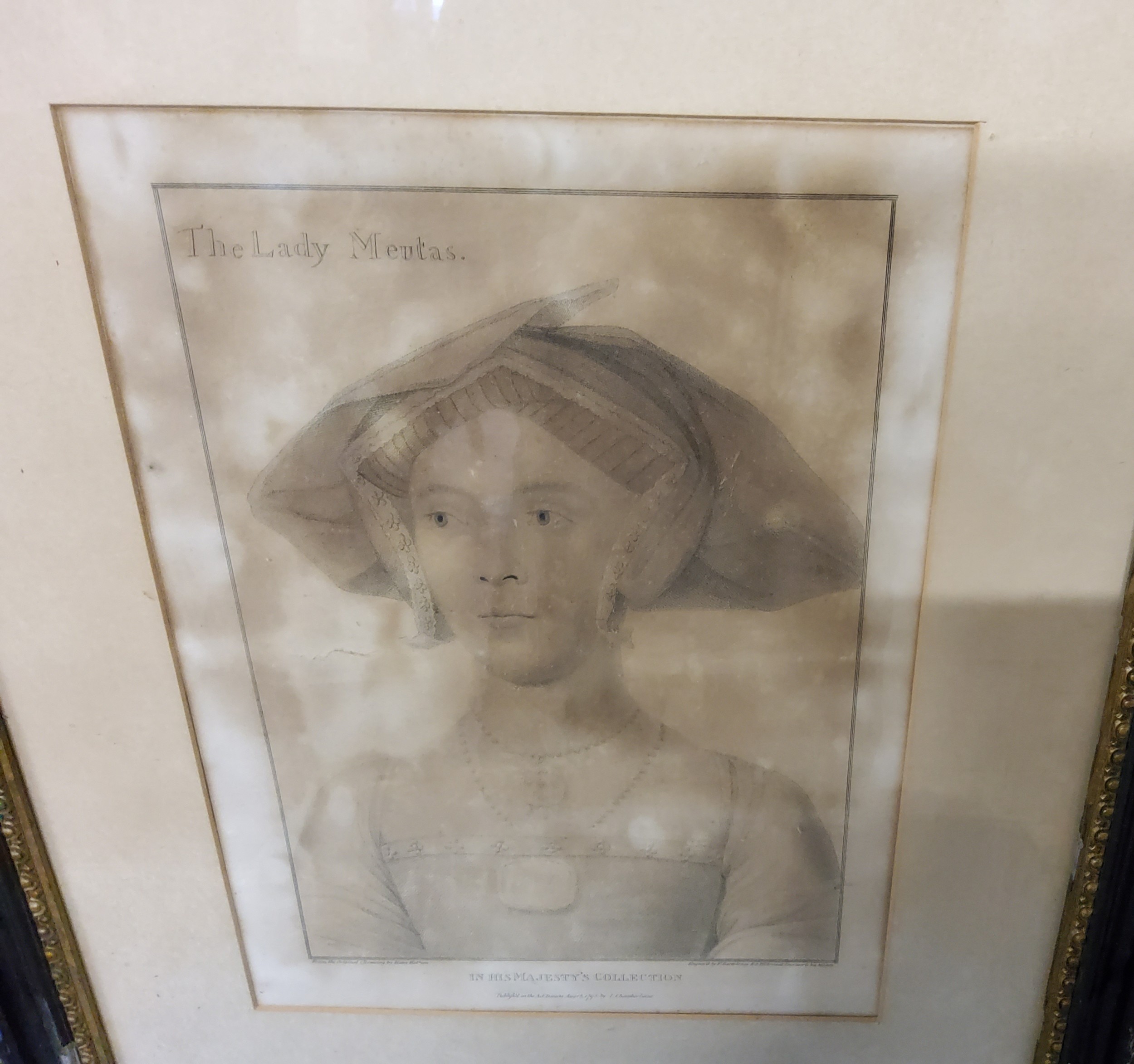 The Lady Meutas framed print, "in his Majesty's collection", "published as Act directs August 12 1795 by I Chamberlain" an engraving by F. Bartolozzi, from the original drawing by Hans Holbien.
