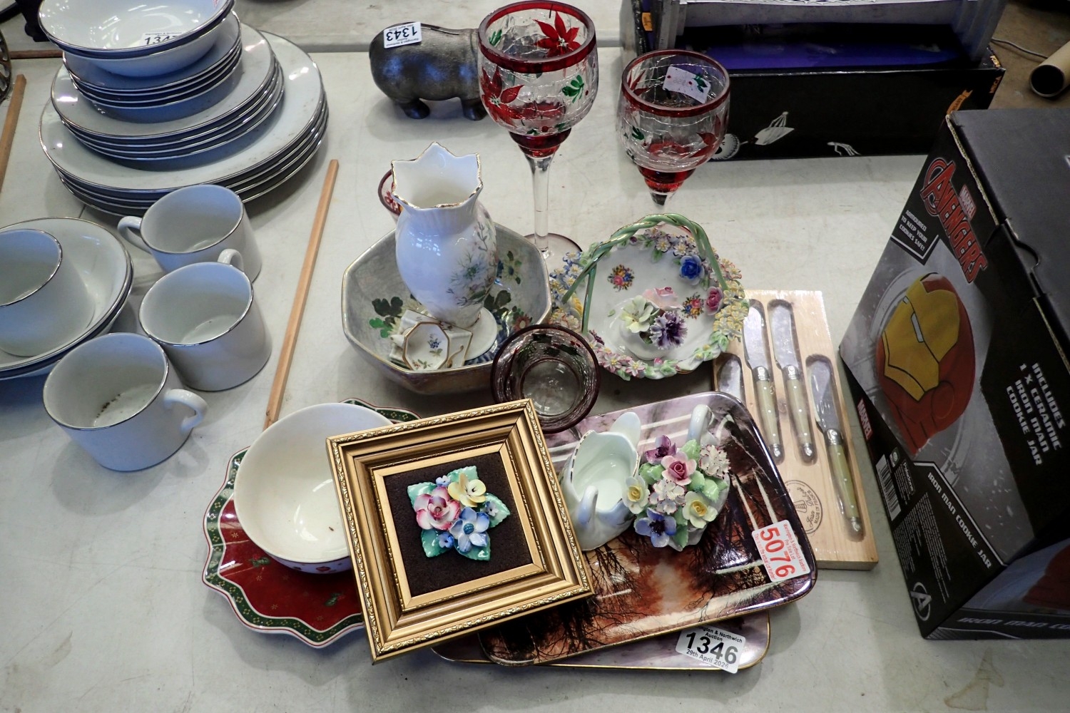 Mixed ceramics and glass to include Royal Doulton and Ansley. Not available for in-house P&P