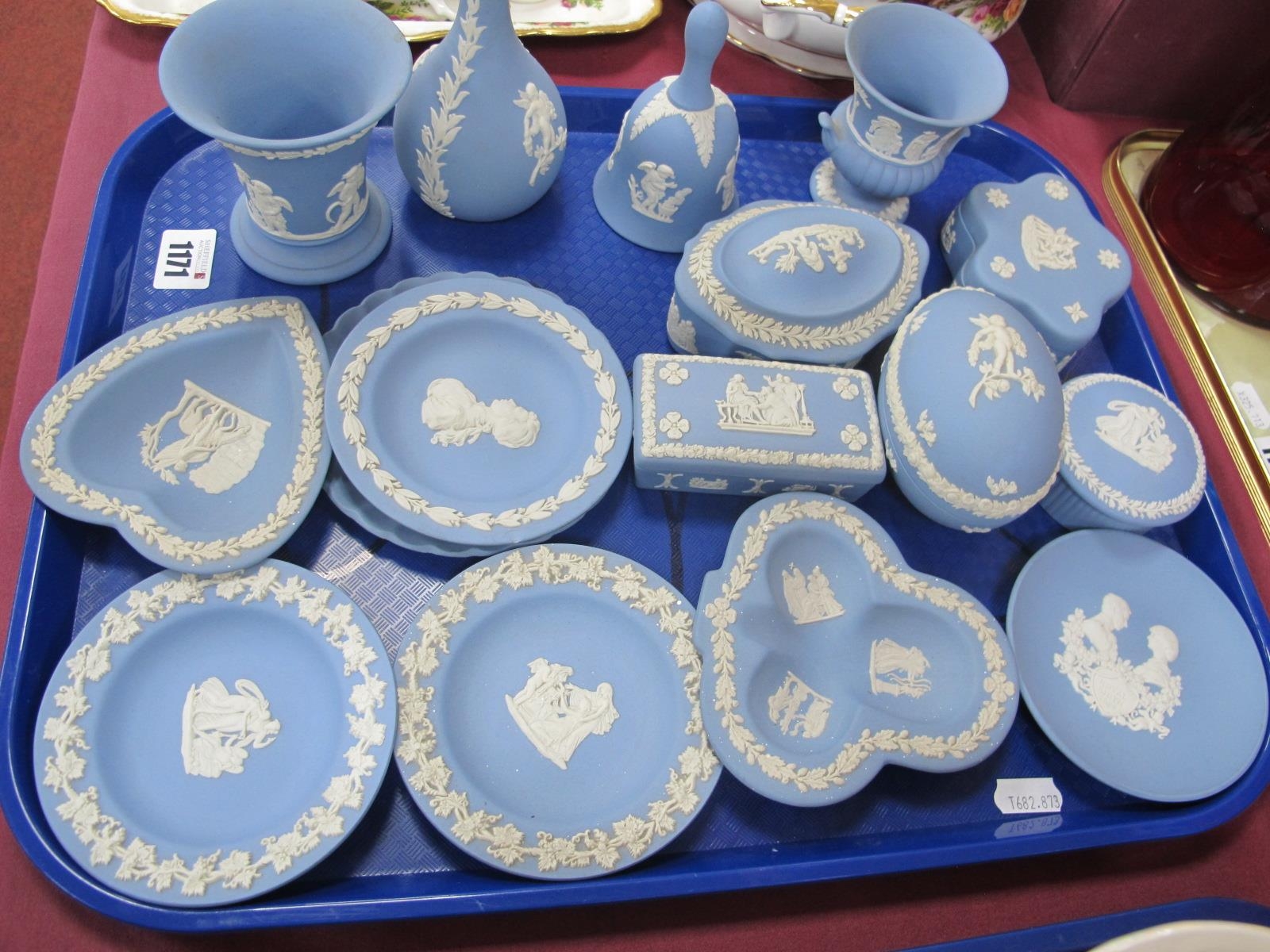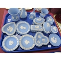 Wedgwood Powder Blue Jasperware Trinkets (16):- One Tray.