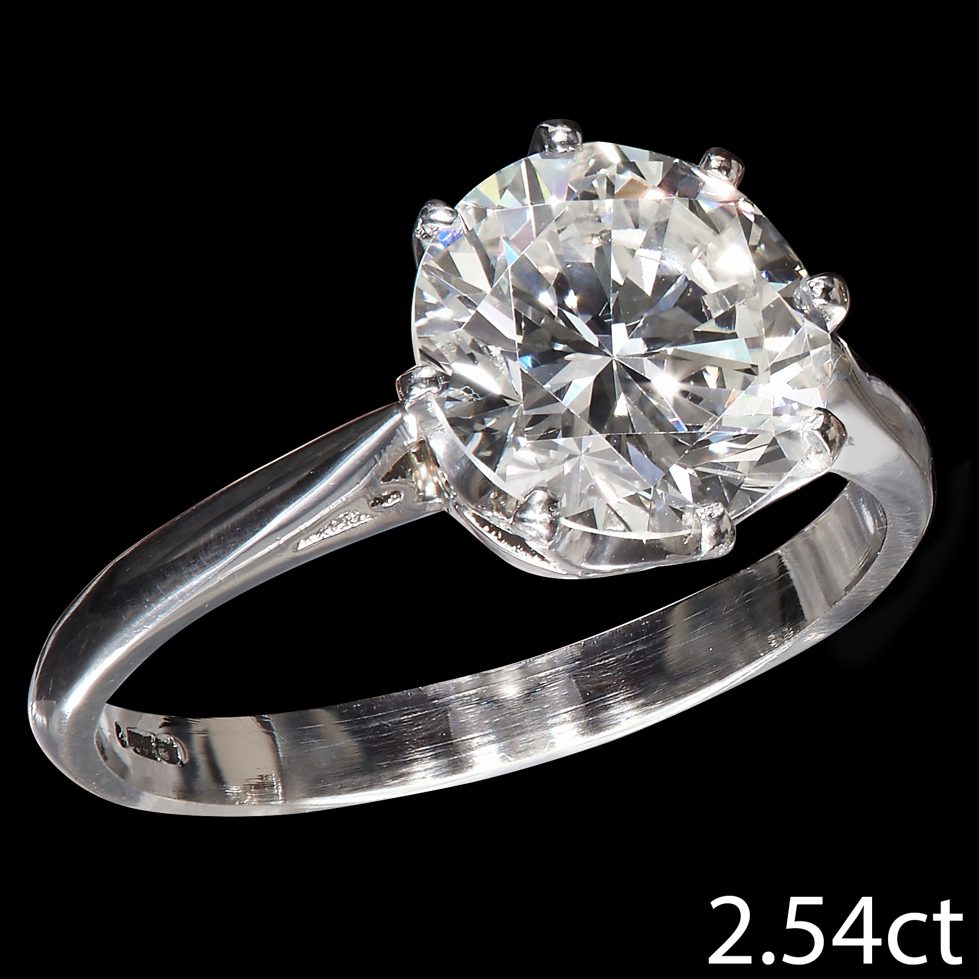 FINE AND ELEGANT 2.54 CT. DIAMOND SOLITAIRE RING, in platinum. Diamond of approx. 2.54 ct. Size N. 4.6 grams.