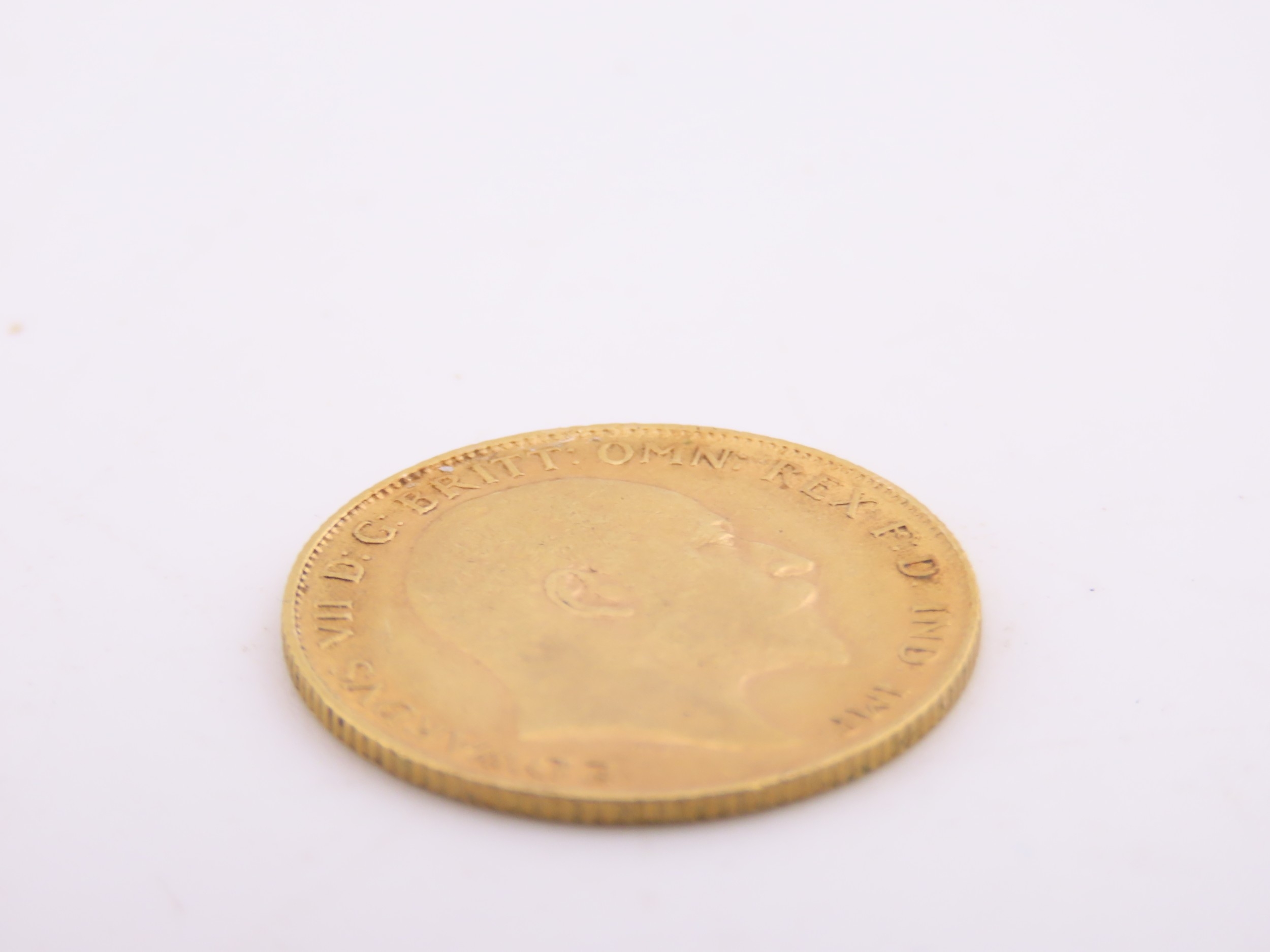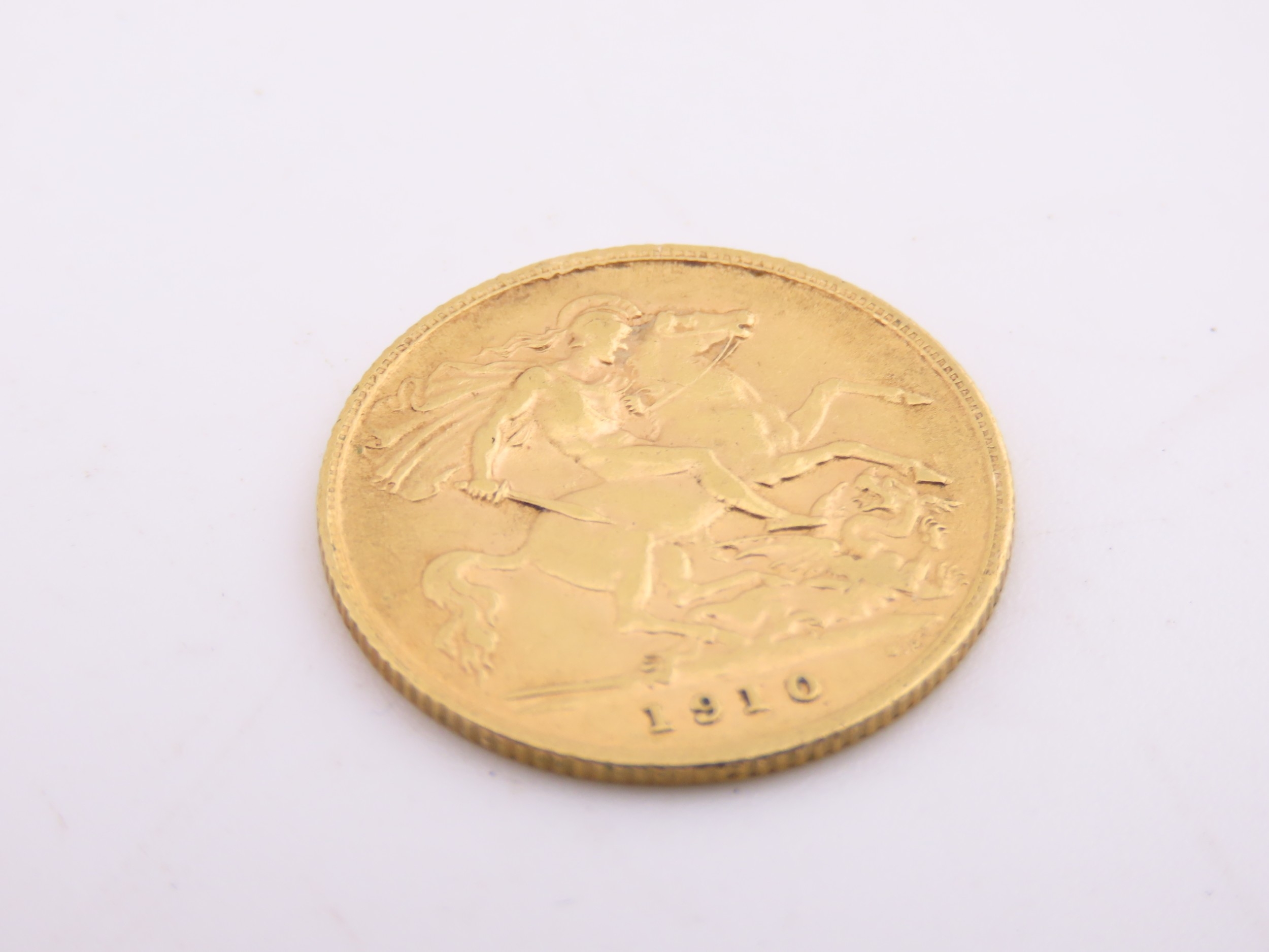 A gold half sovereign dated 1910, struck in 22 carat gold and featuring the St George and the Dragon reverse, offered loose.