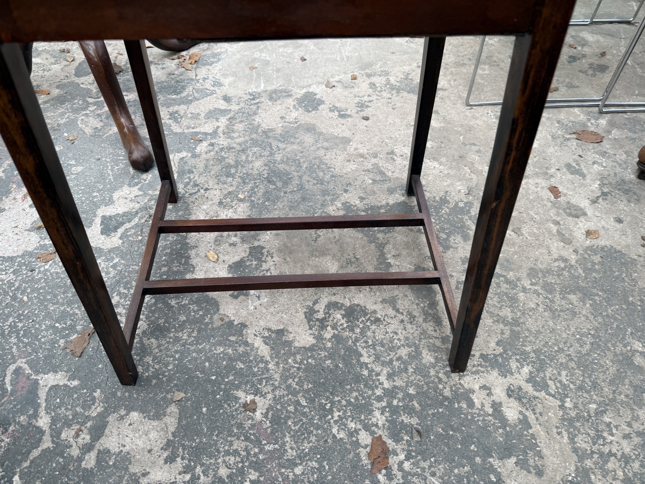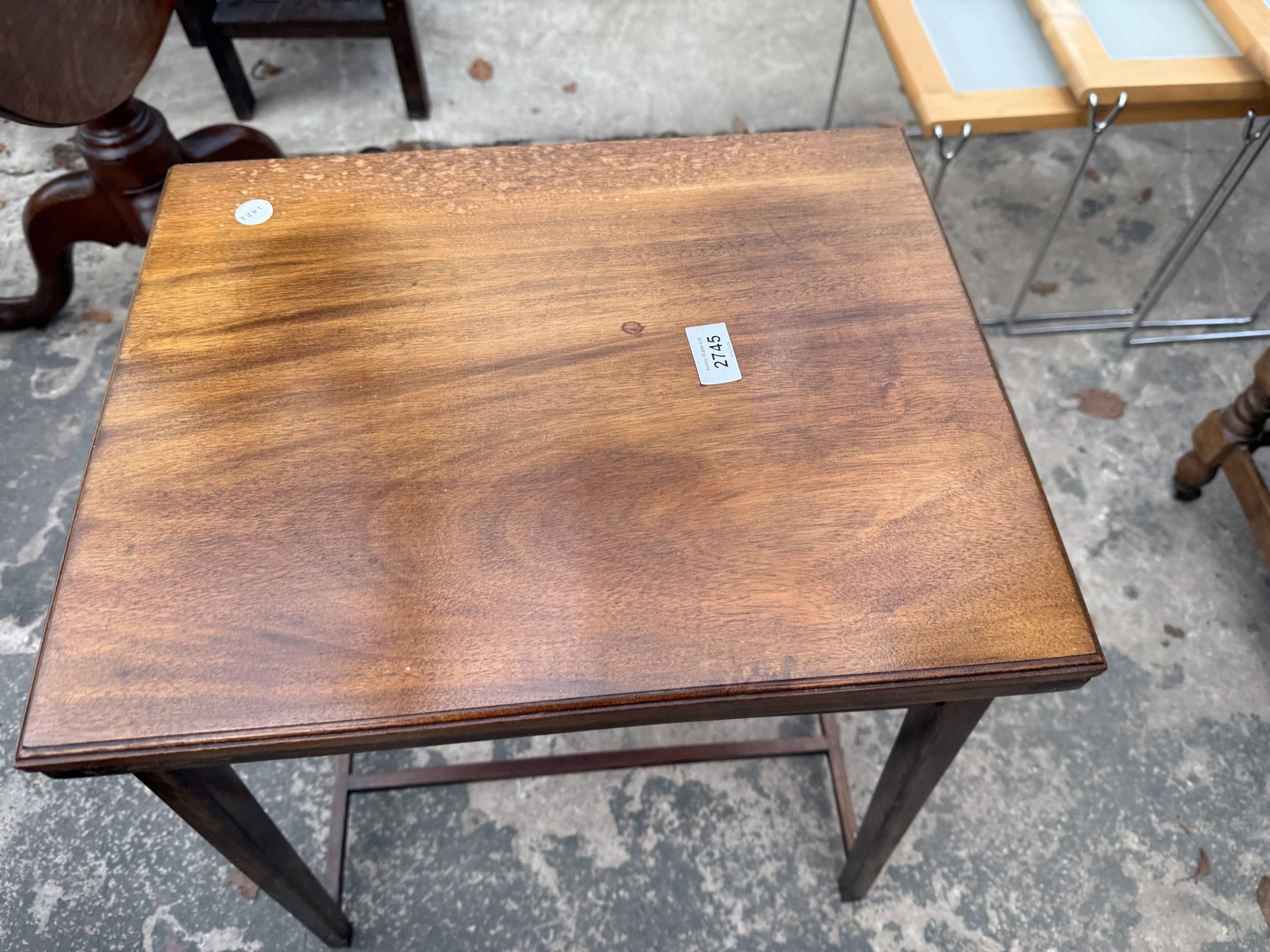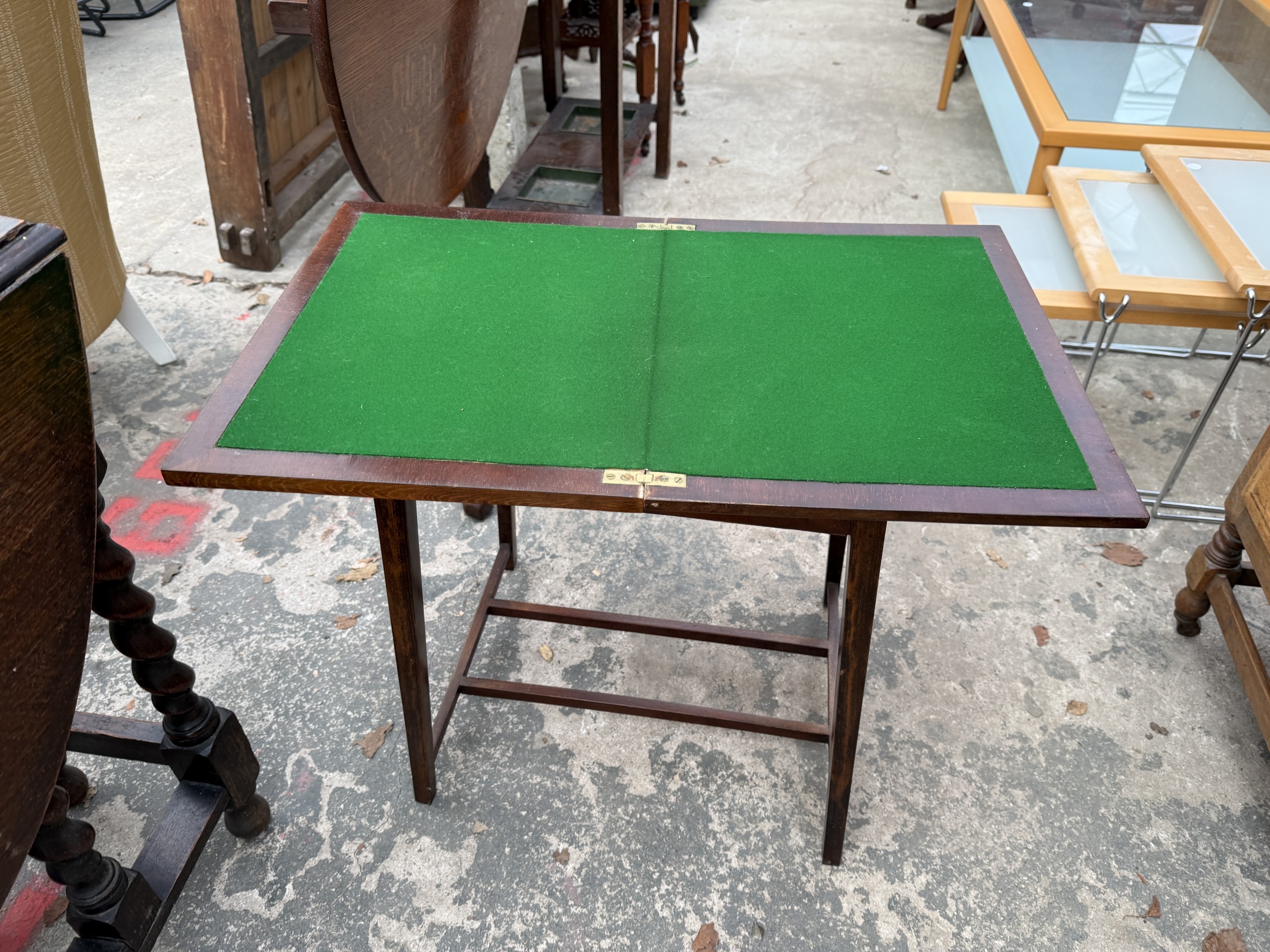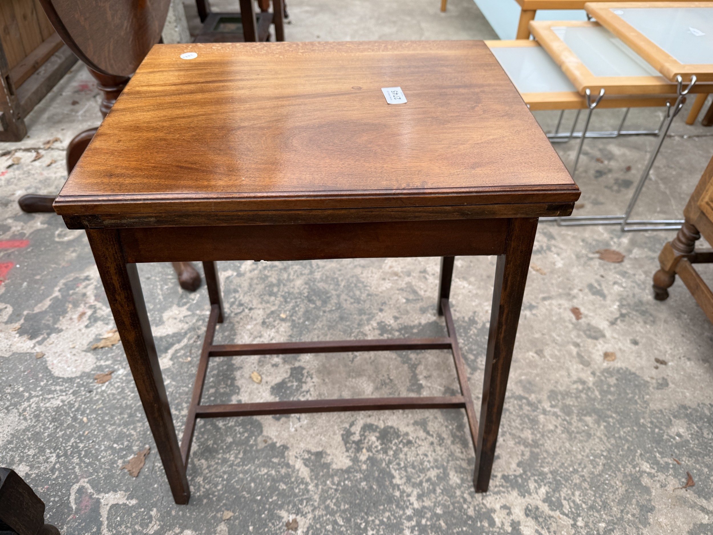 AN EDWARDIAN MAHOGANY FOLD OVER GAMES TABLE