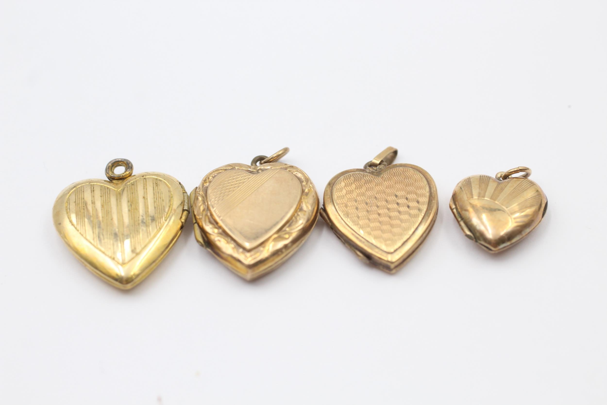 4 X 9ct Back & Front Gold Vintage Etched Heart Lockets (10.2g)