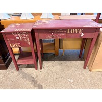 A pair of burgundy bedside chests