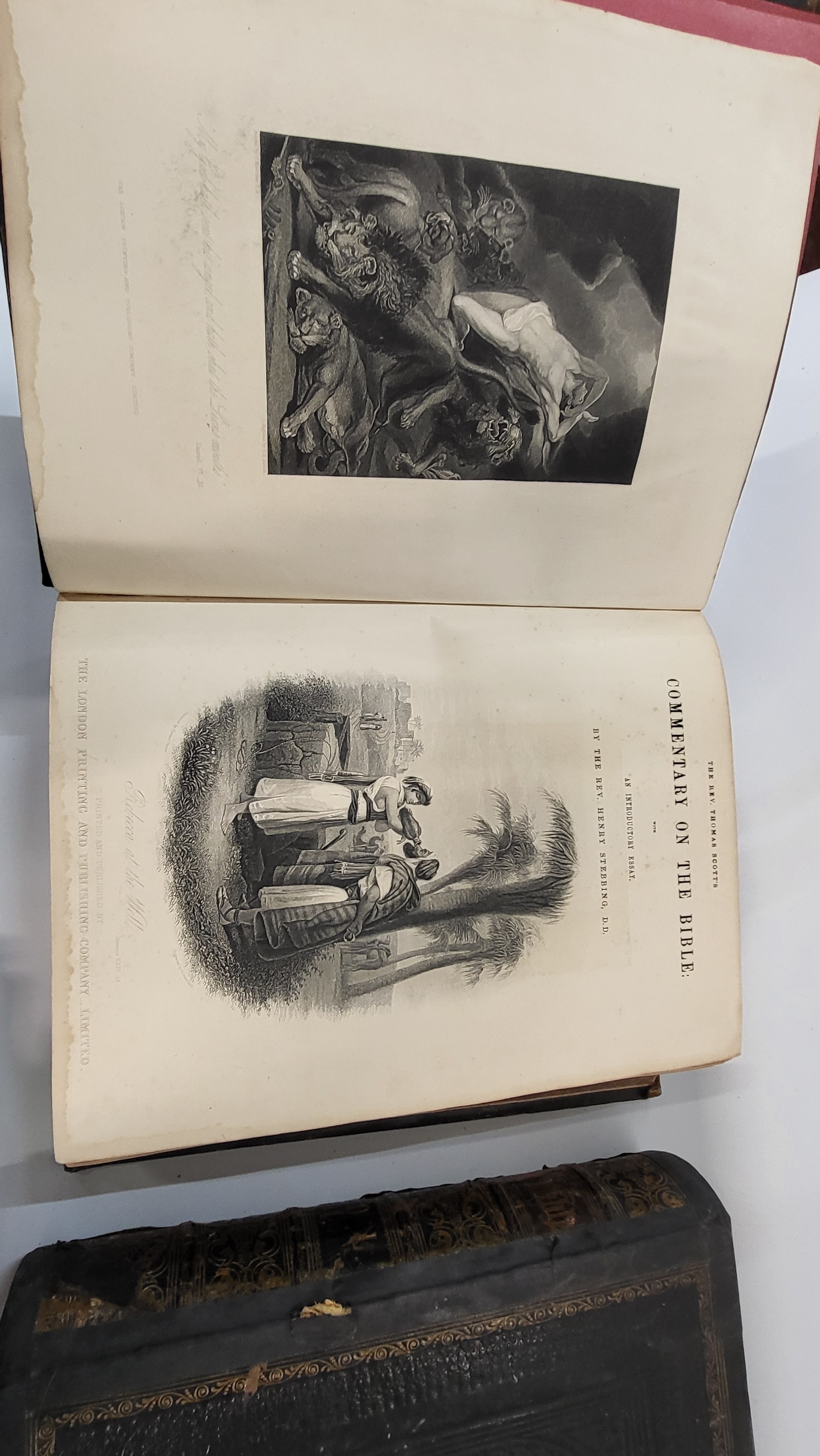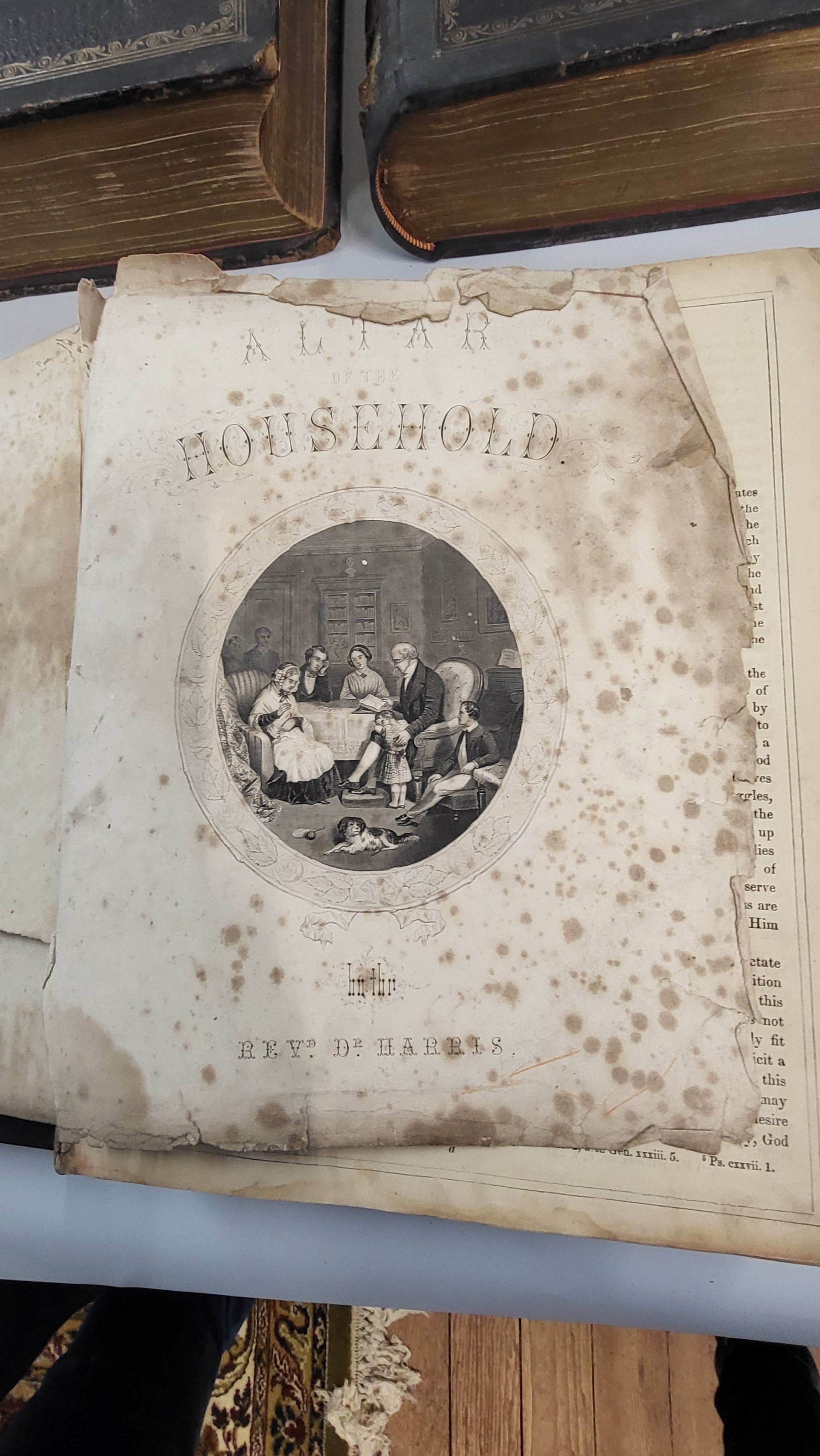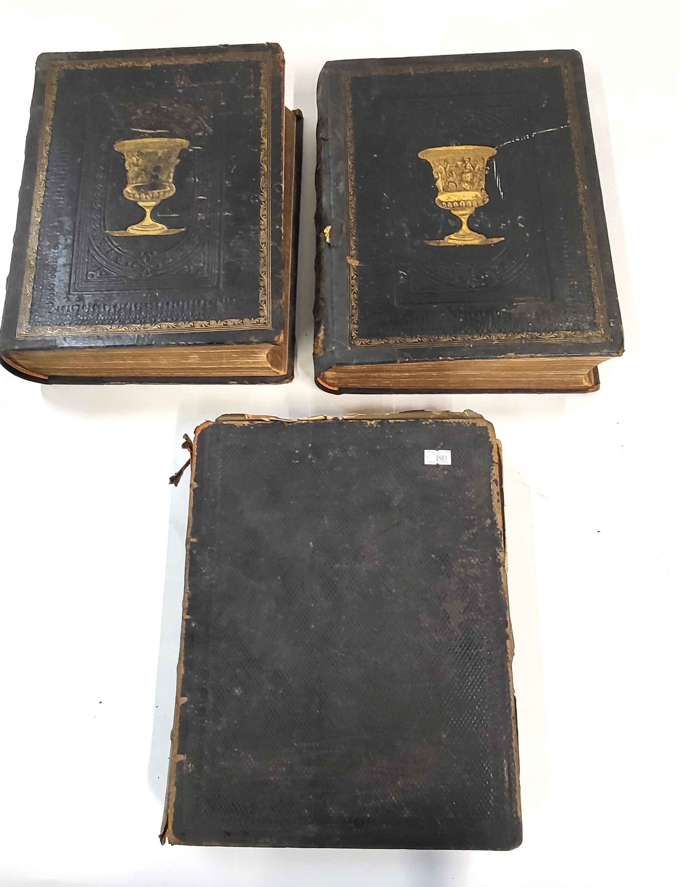 Two Victorian Bibles, 32 x 26cm, and Altar of The Household. (3)