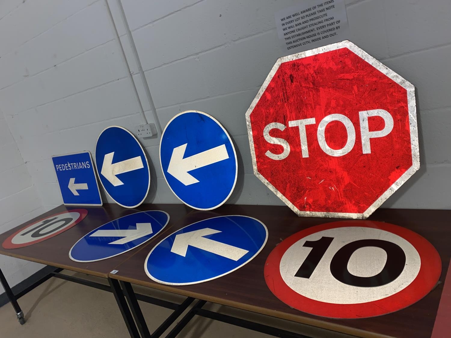 8 large metal road signs