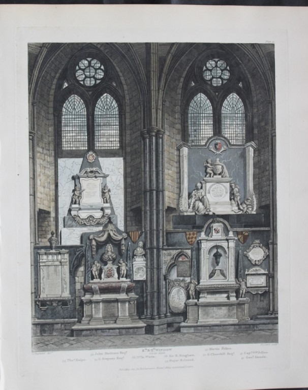 G Shepherd - 8th and 9th Windows in Westminster Abbey engraved by FC Lewis 1812. This aquatint print is from The History of the Abbey Church of St. Peter's Westminster, Its Antiquities and Monuments by Rudolph Ackermann and William Combe, published in London 1812.
