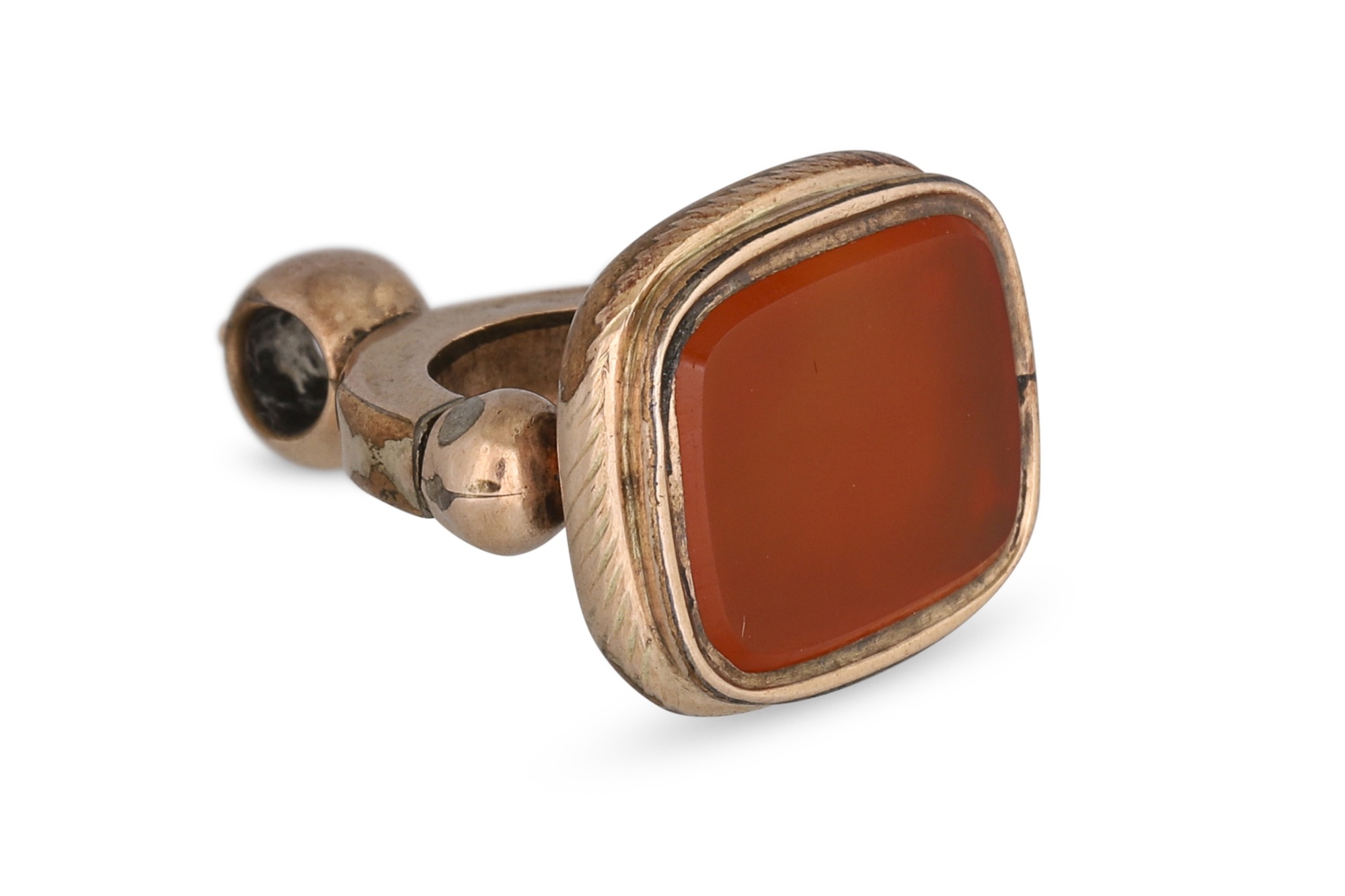 AN ANTIQUE GOLD SWIVEL SEAL, carnelian set, 7 g.